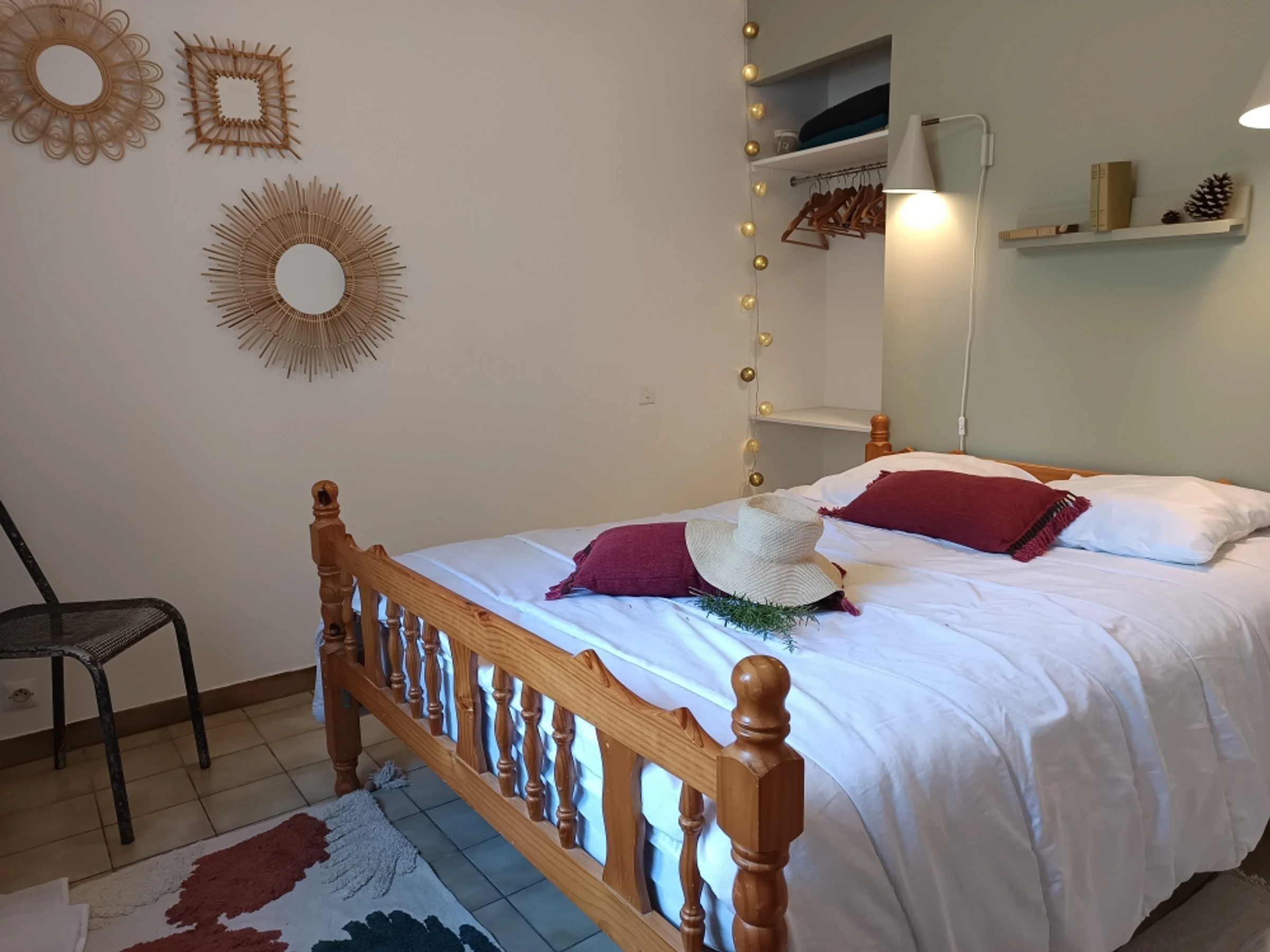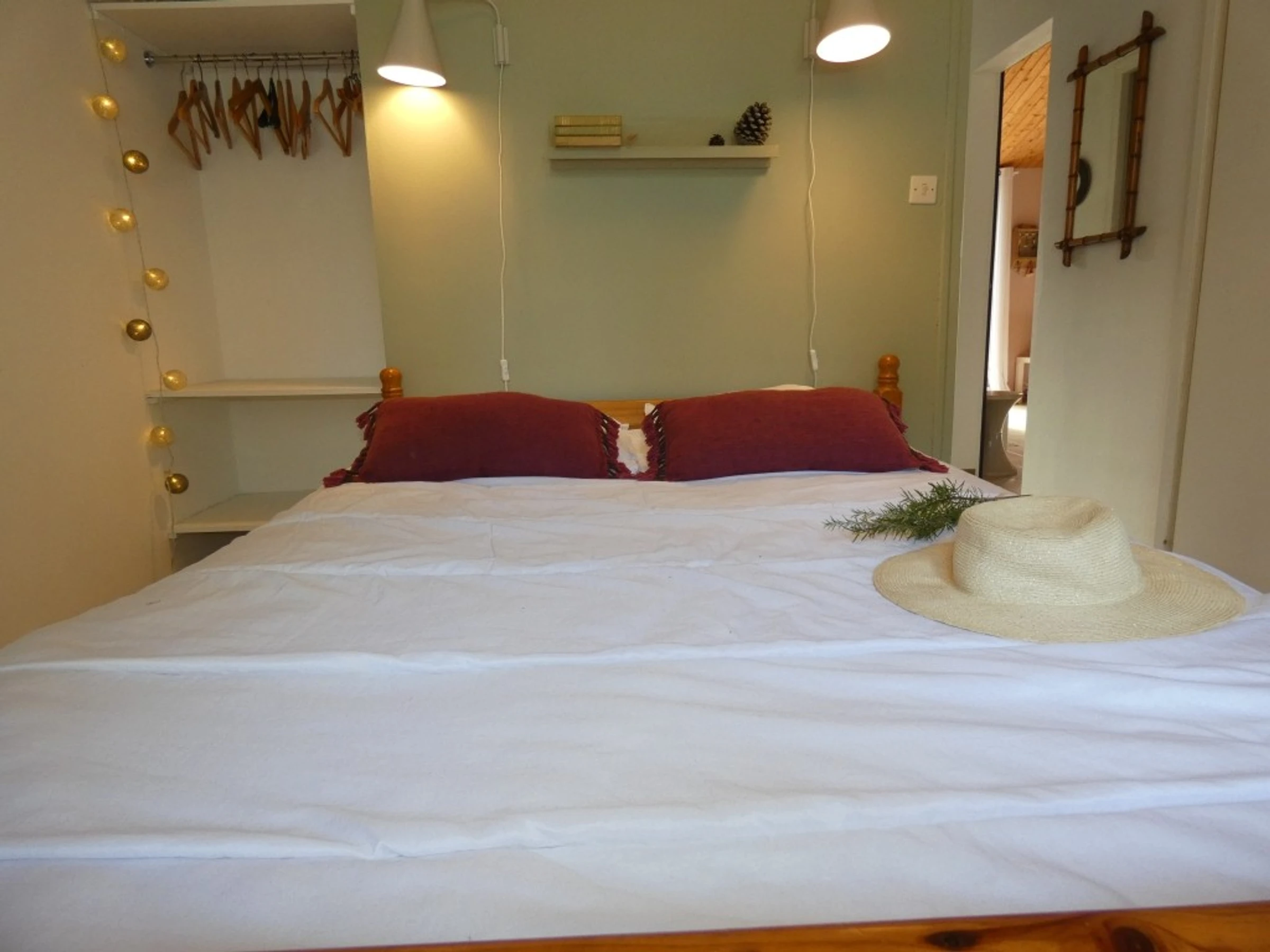 - 2 chambres avec chacune 1 lit double 140*190, couette, 2 oreillers, rangement.