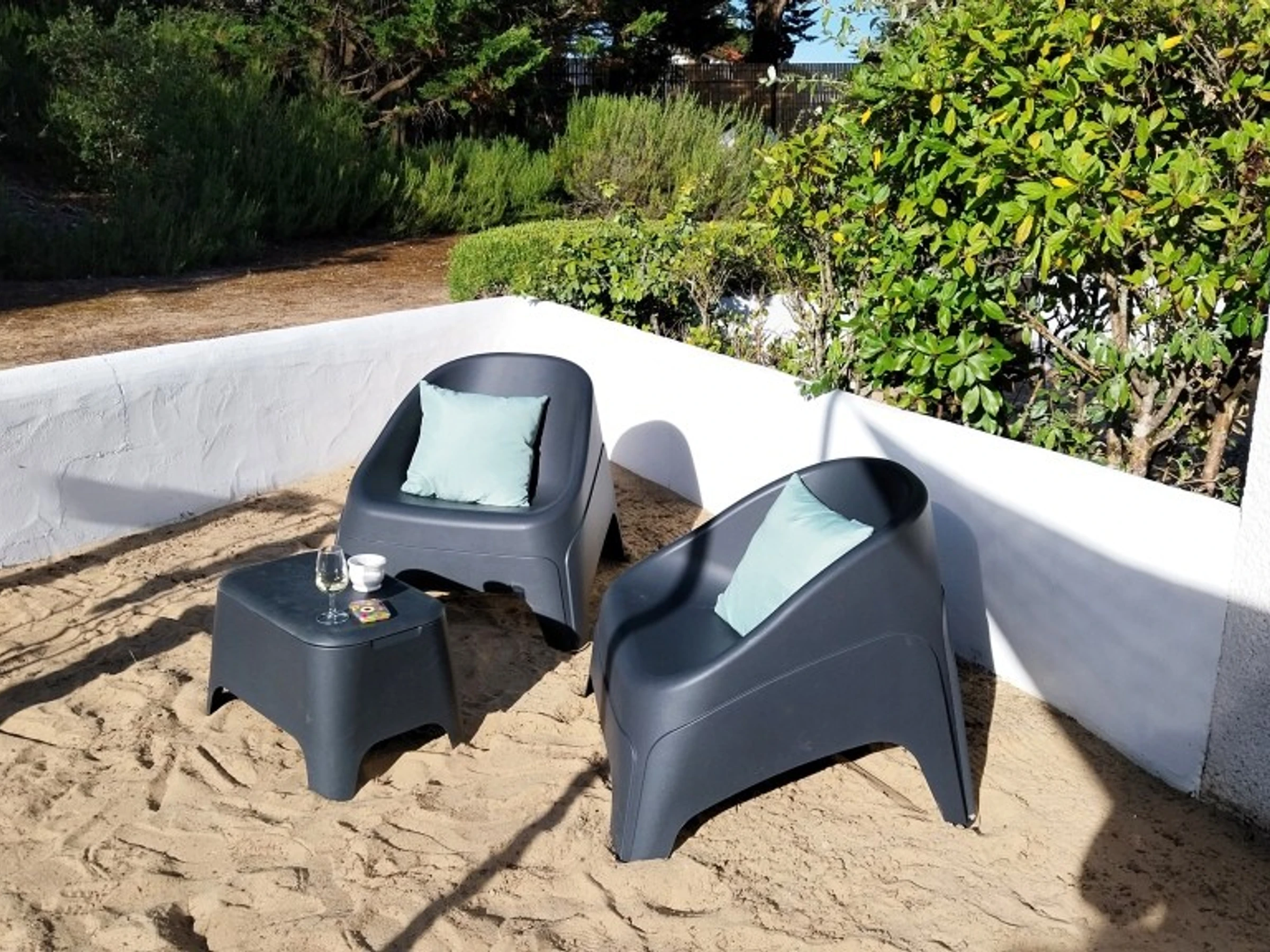 - Un petit jardin clos Sud et un autre sur l'arrière au Nord de la maison avec sa table de jardin, des chaises, transat, barbecue, parasol