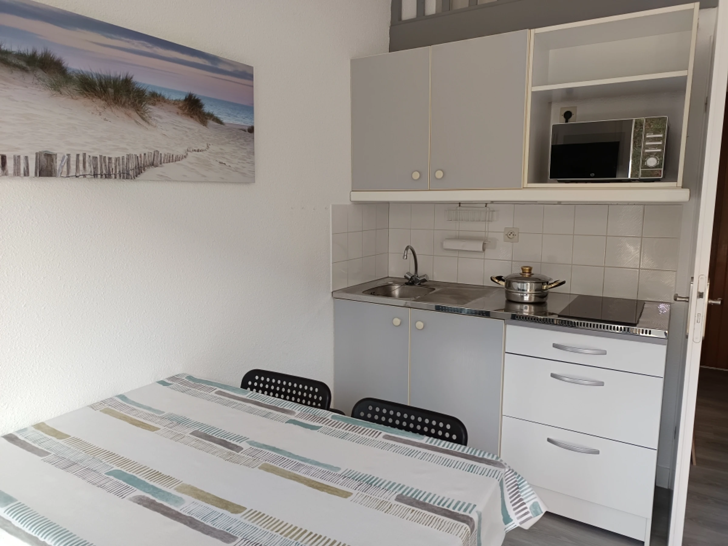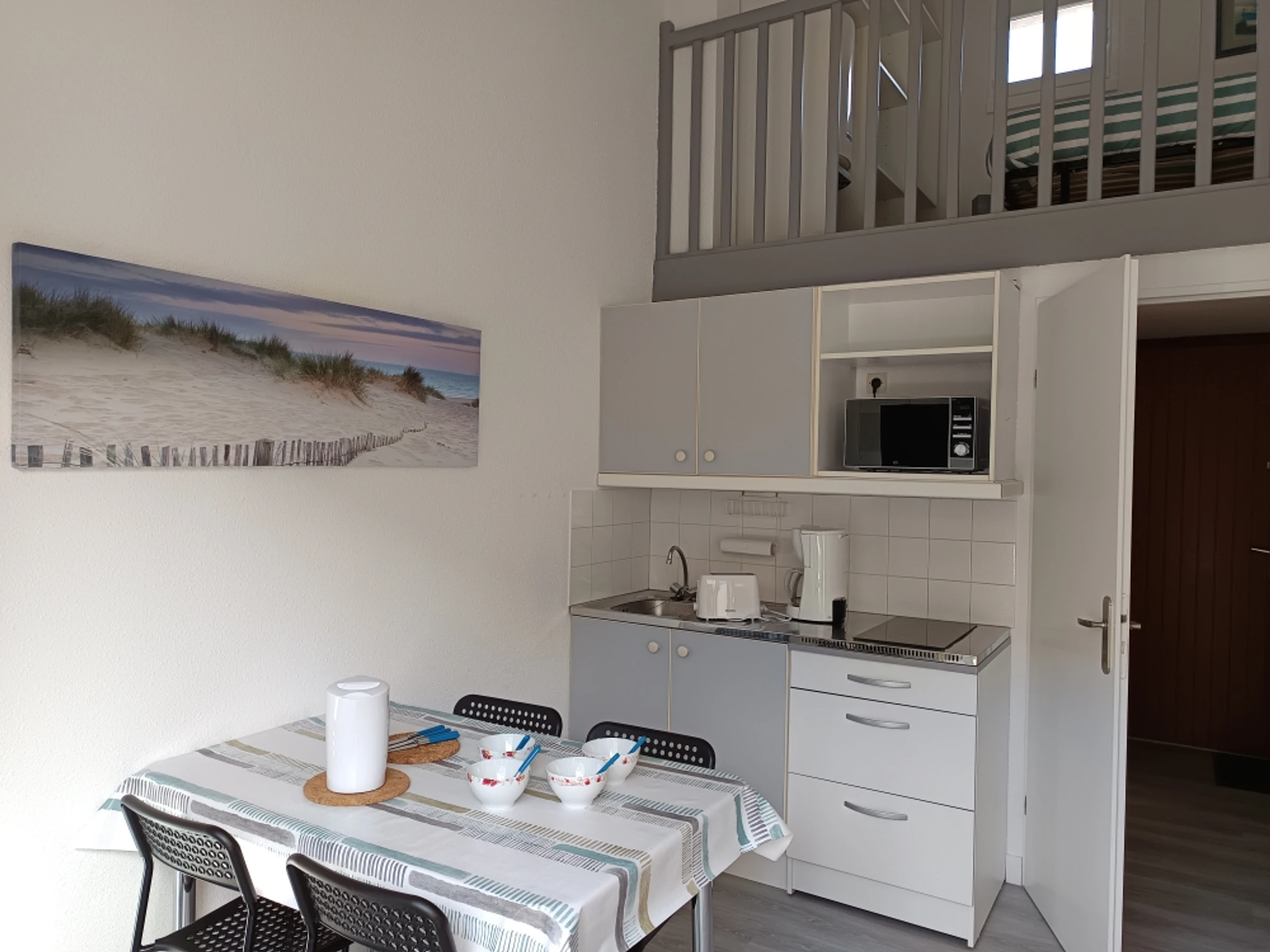 - un coin nuit dans l'entrée avec 2 lits superposés 80x190 et son nécessaire de couchage (oreiller + couette)
