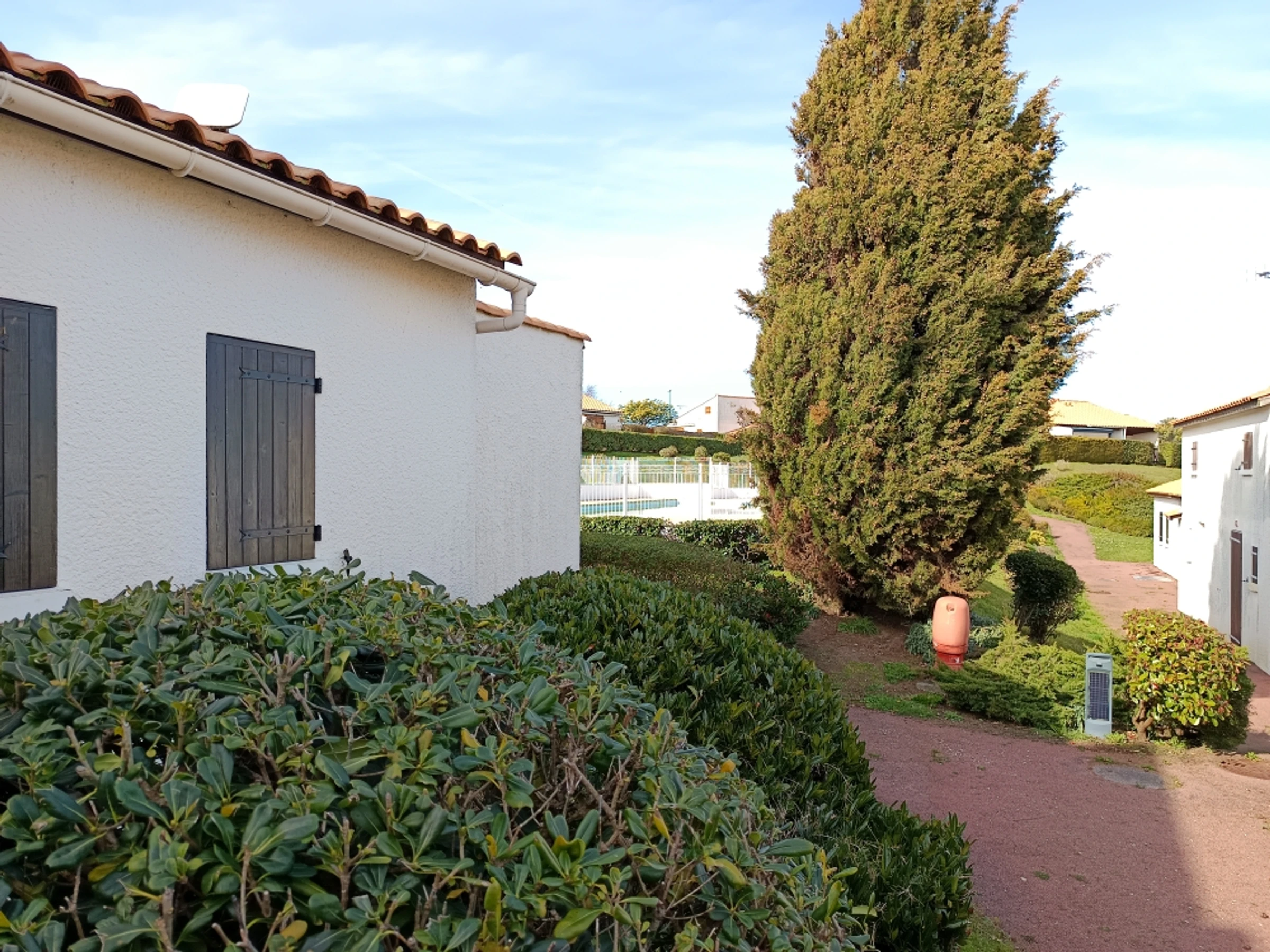 Cette Maison de vacances est située au détour d'une allée dans une résidence avec piscine collective ouverte de la mi-juin à la mi-septembre.