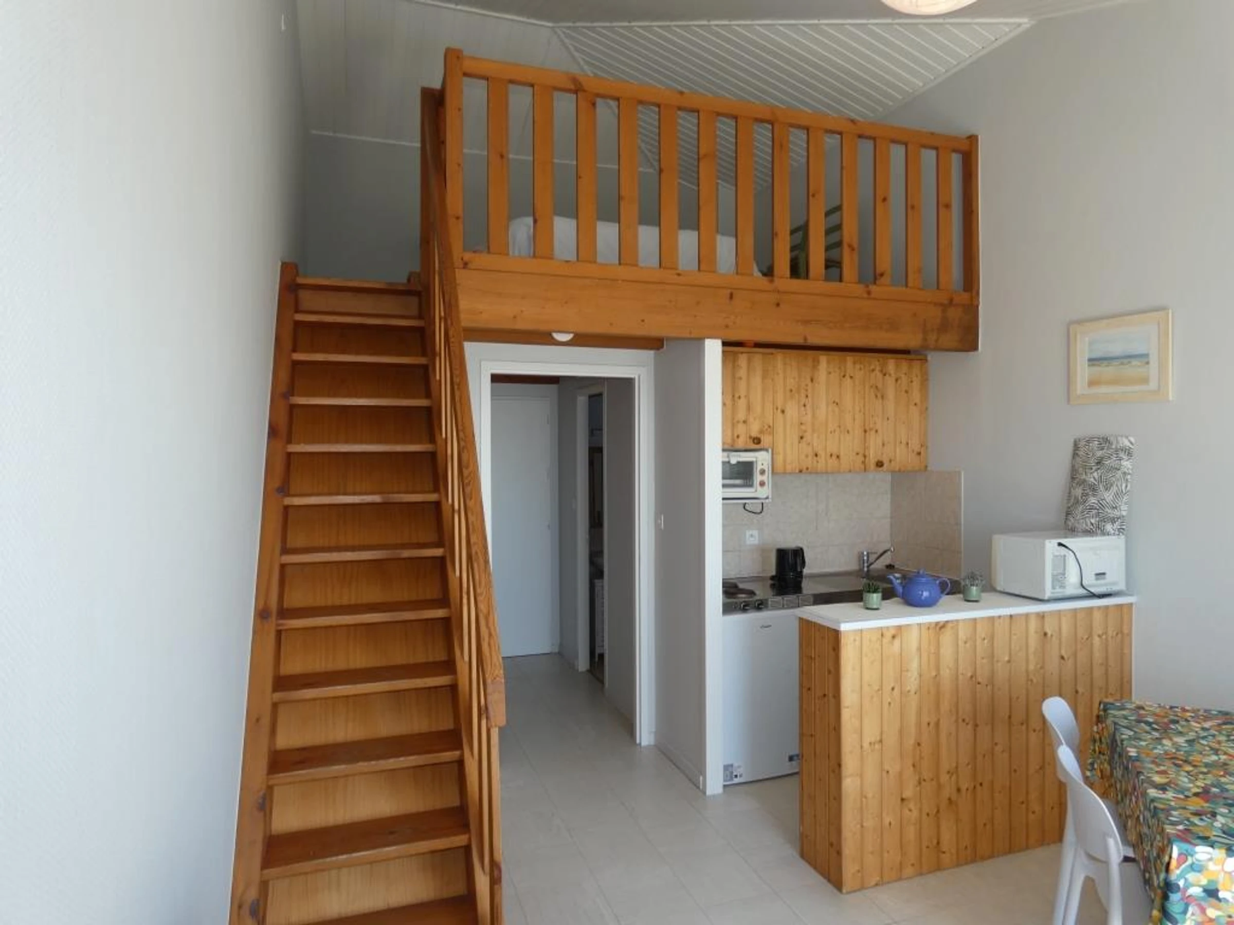 une chambre en mezzanine avec lit double