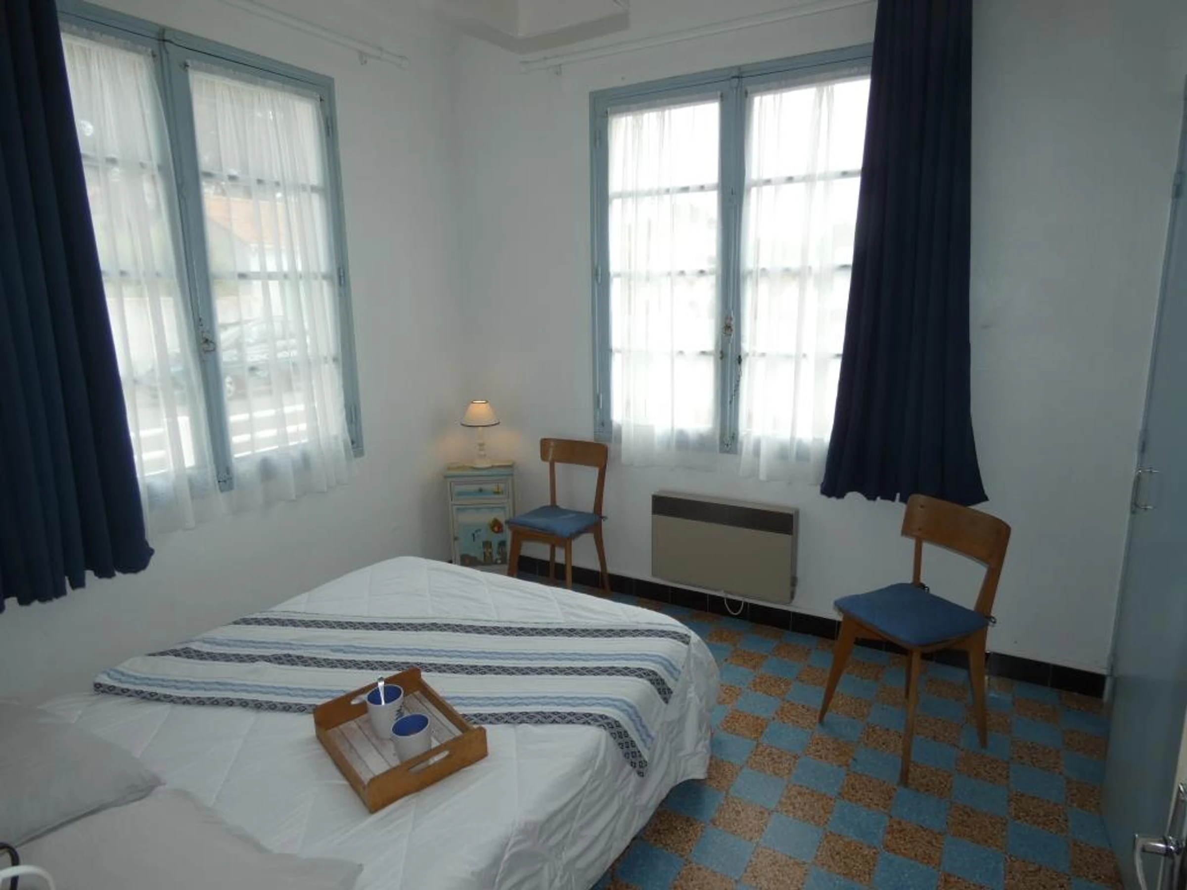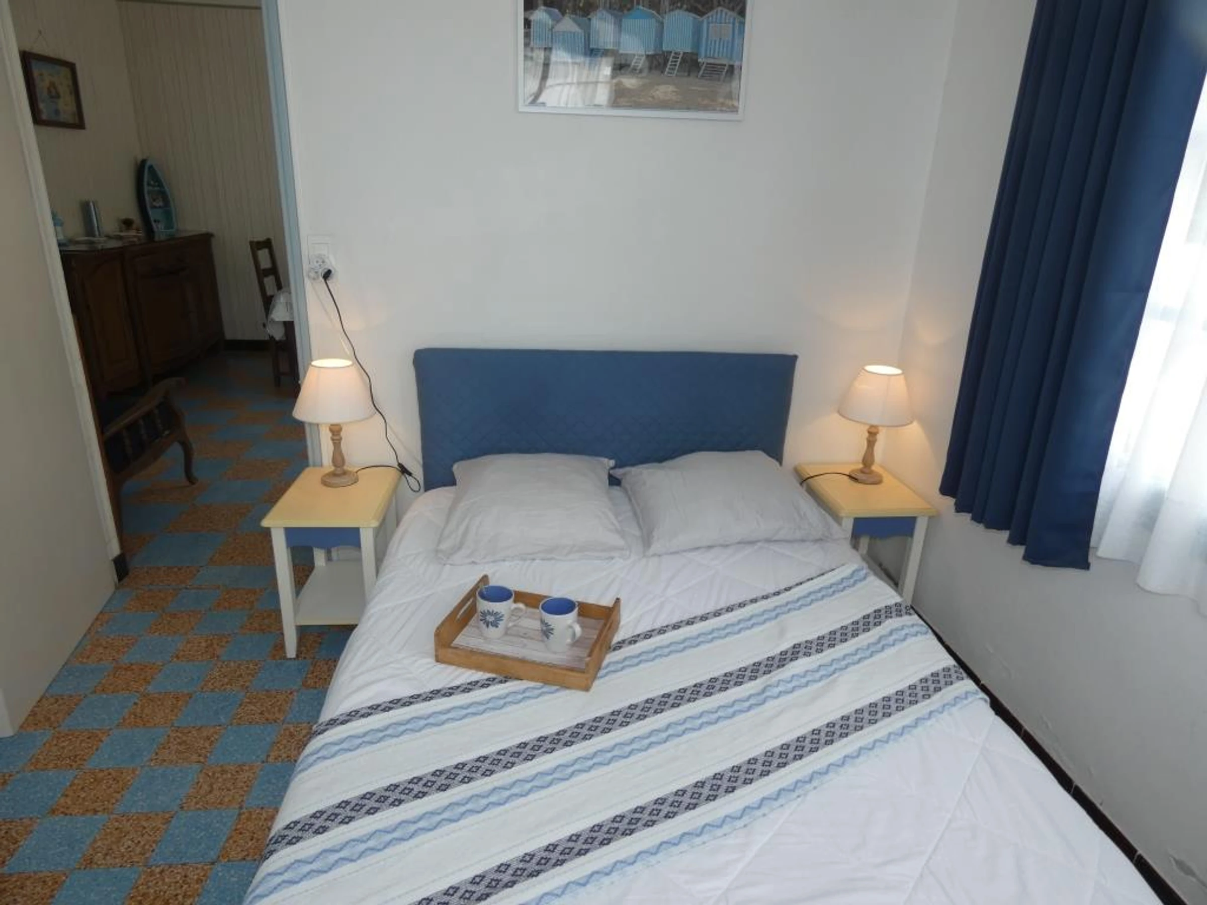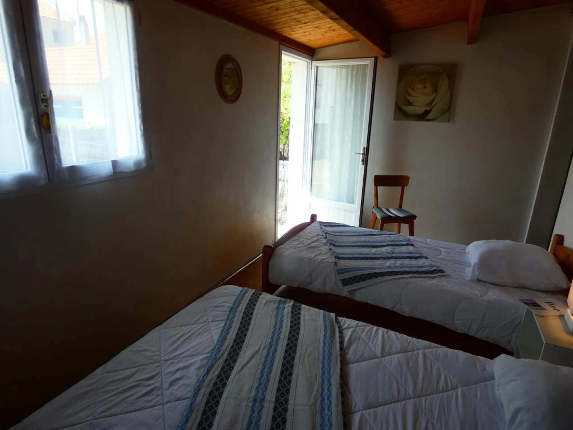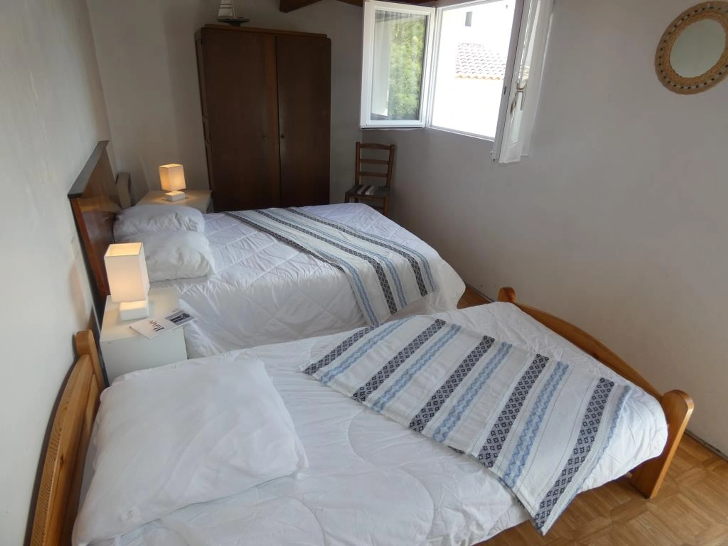 - chambre n°2 : 1 lit 140*190 (1 couette et 2 oreillers), 1 lit 90*190 (1 couette et 2 oreillers), armoire, elle est dotée d'une porte-fenêtre qui s'ouvre sur le jardin à l'arrière.