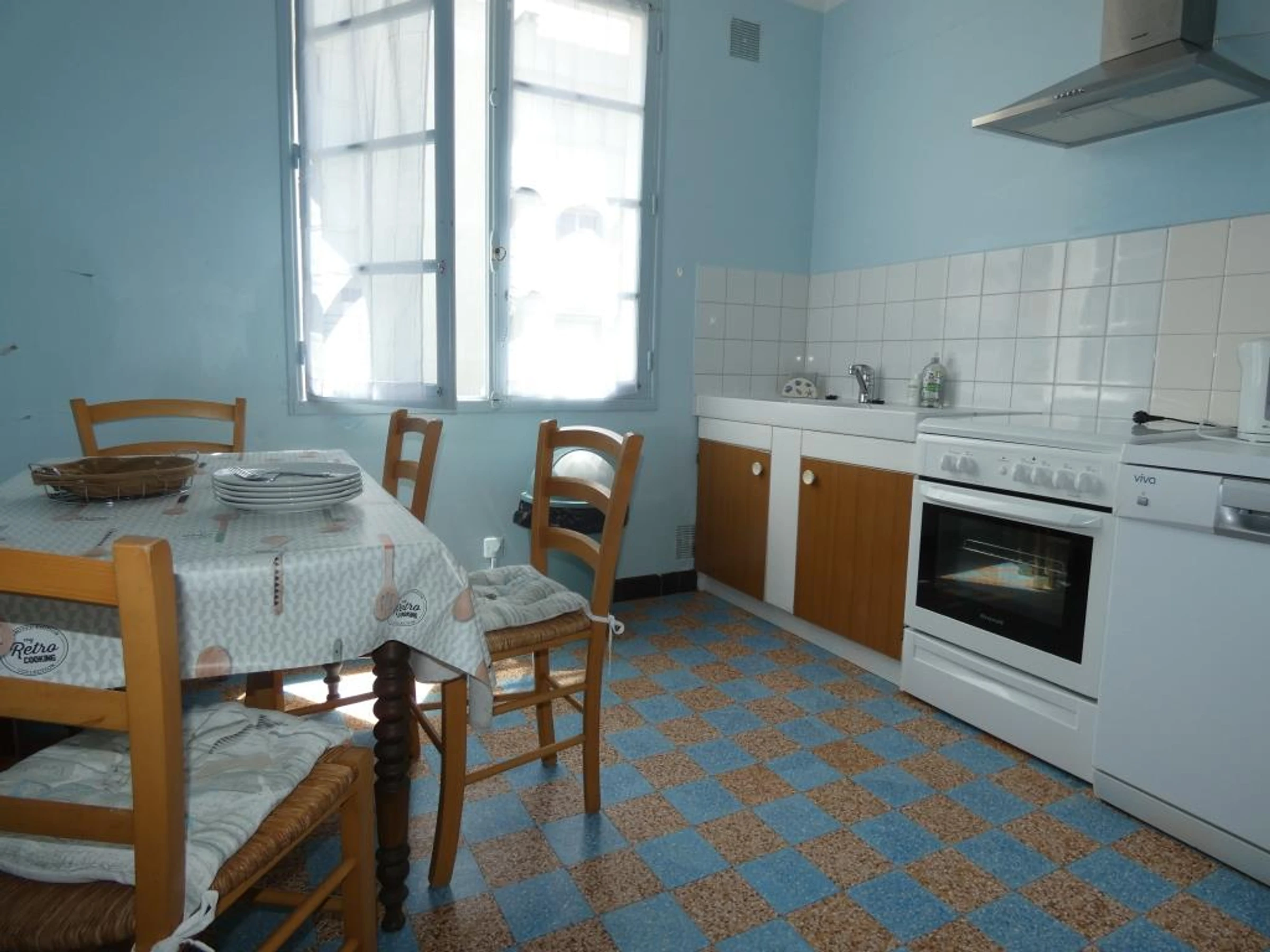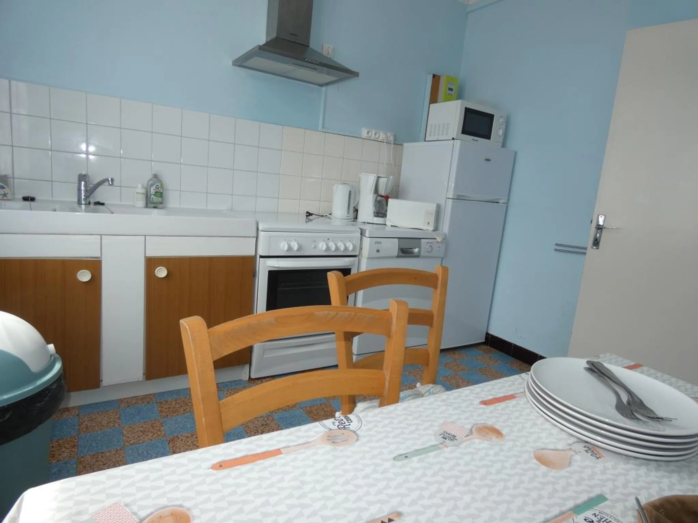 - une cuisine fermée : cuisinière, (3 feux gaz, 1 plaque électrique), réfrigérateur avec congélateur, four micro ondes, hotte, lave vaisselle