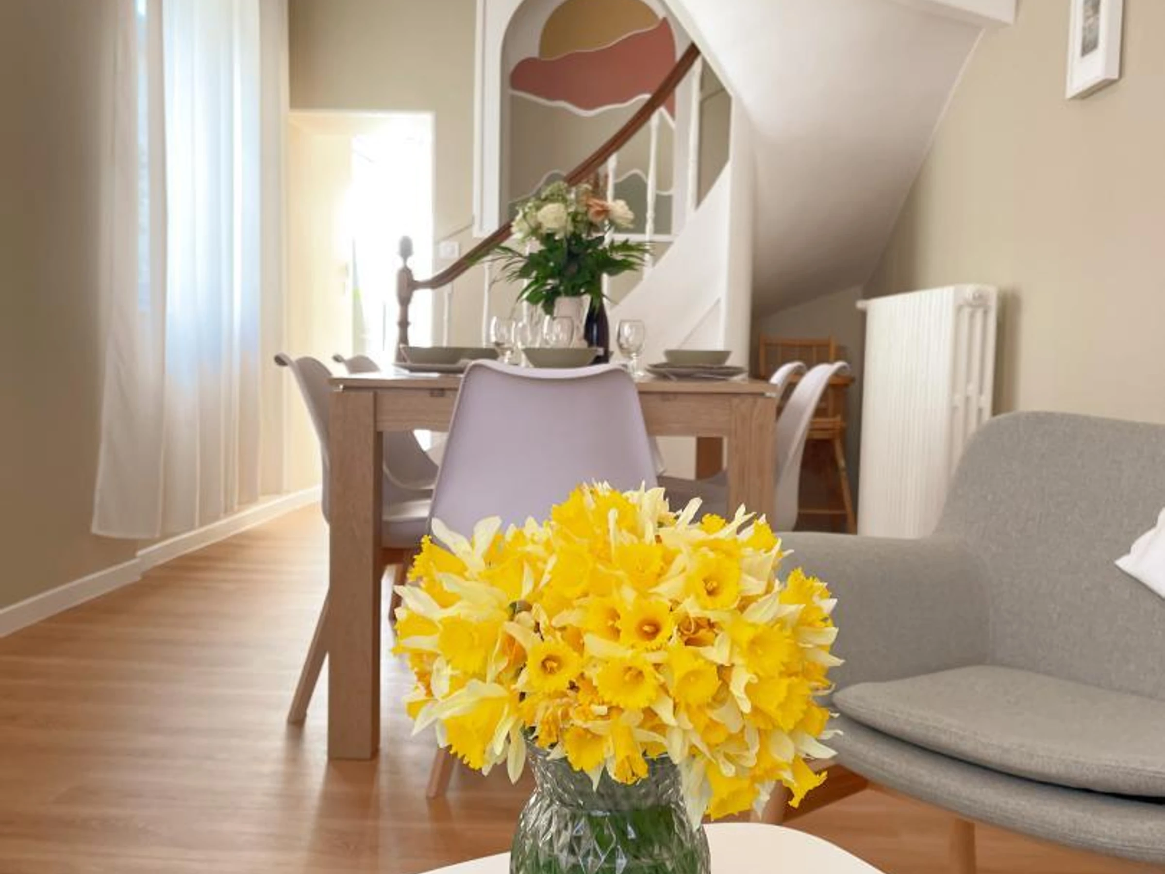 À l'extérieur : terrasse dans jardin clos sans vis-à-vis, barbecue. Parking privé (1 place) dans la cour et parking public sur la place en face de l'hébergement. Local annexe fermé pour stockage vélos ou matériel.