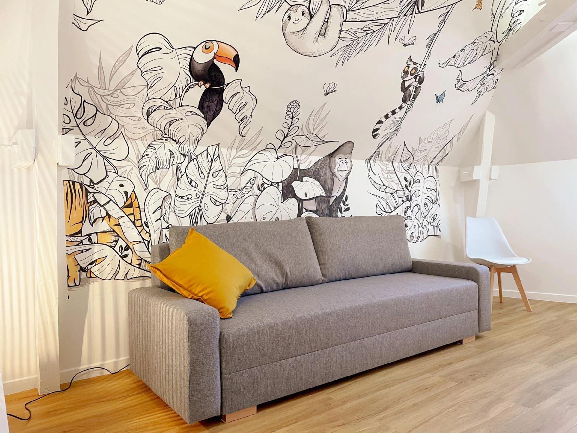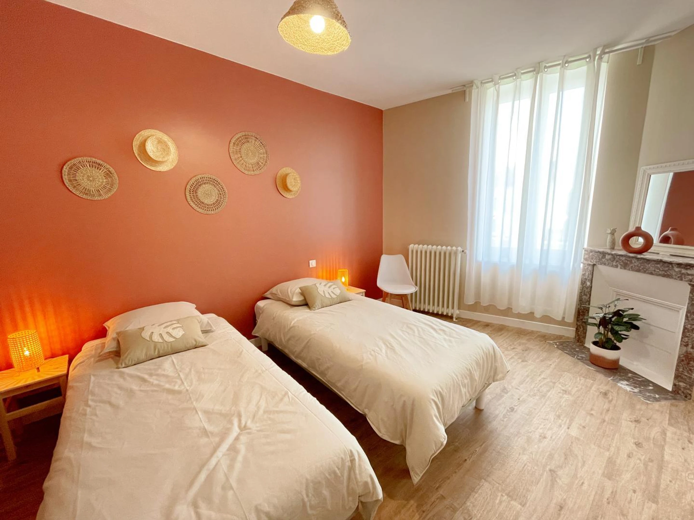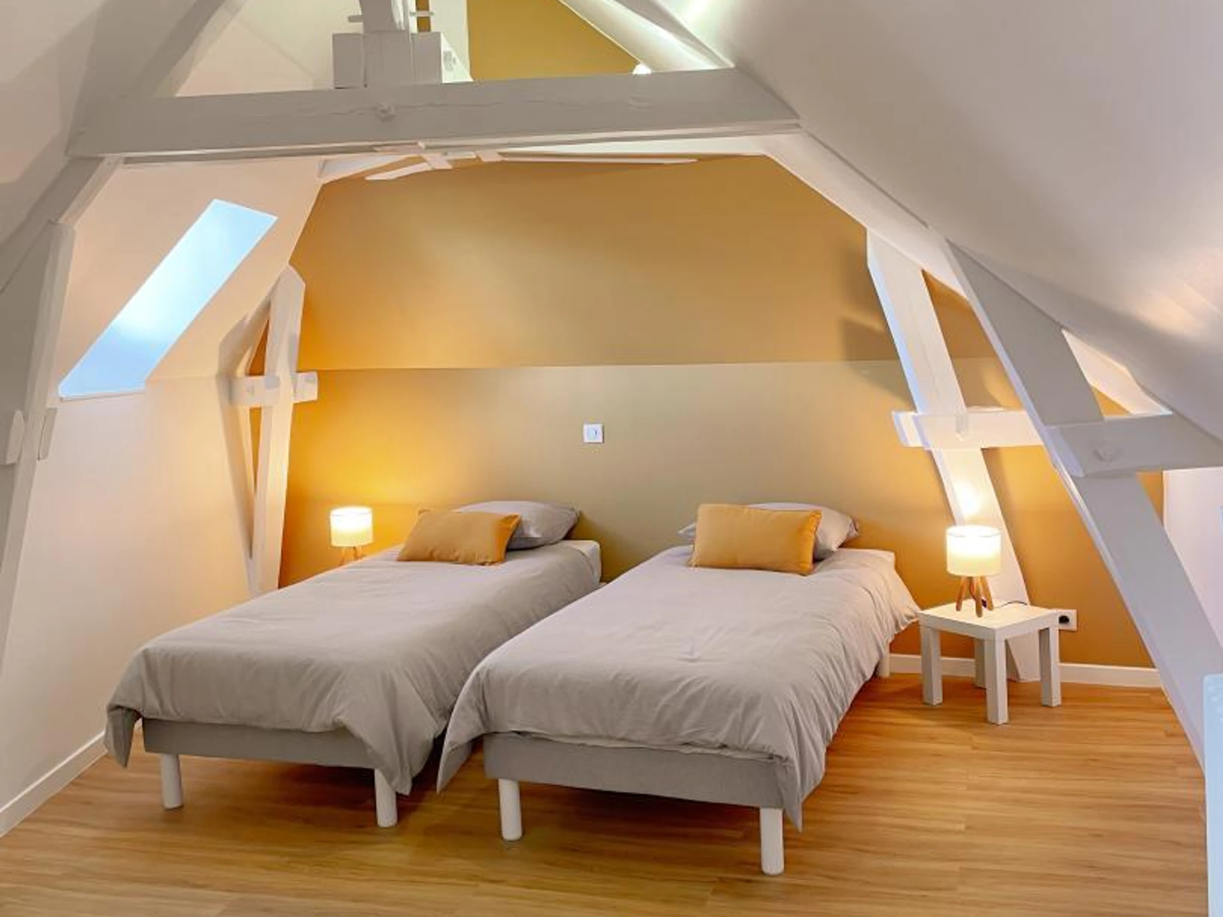 Au 2ème étage : 1 suite climatisée avec 2 lits simples (90x200) et un coin détente (canapé convertible 2 personnes).