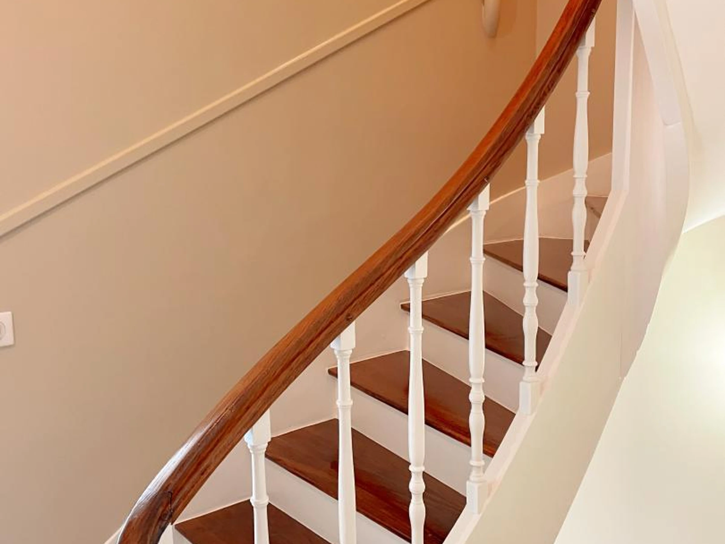 Au 1er étage : 1 salle de bain avec douche, baignoire, WC. 1 chambre climatisée avec 2 lits simples (90x200). 1 chambre (en enfilade de la première) avec 1 lit double (160x200).