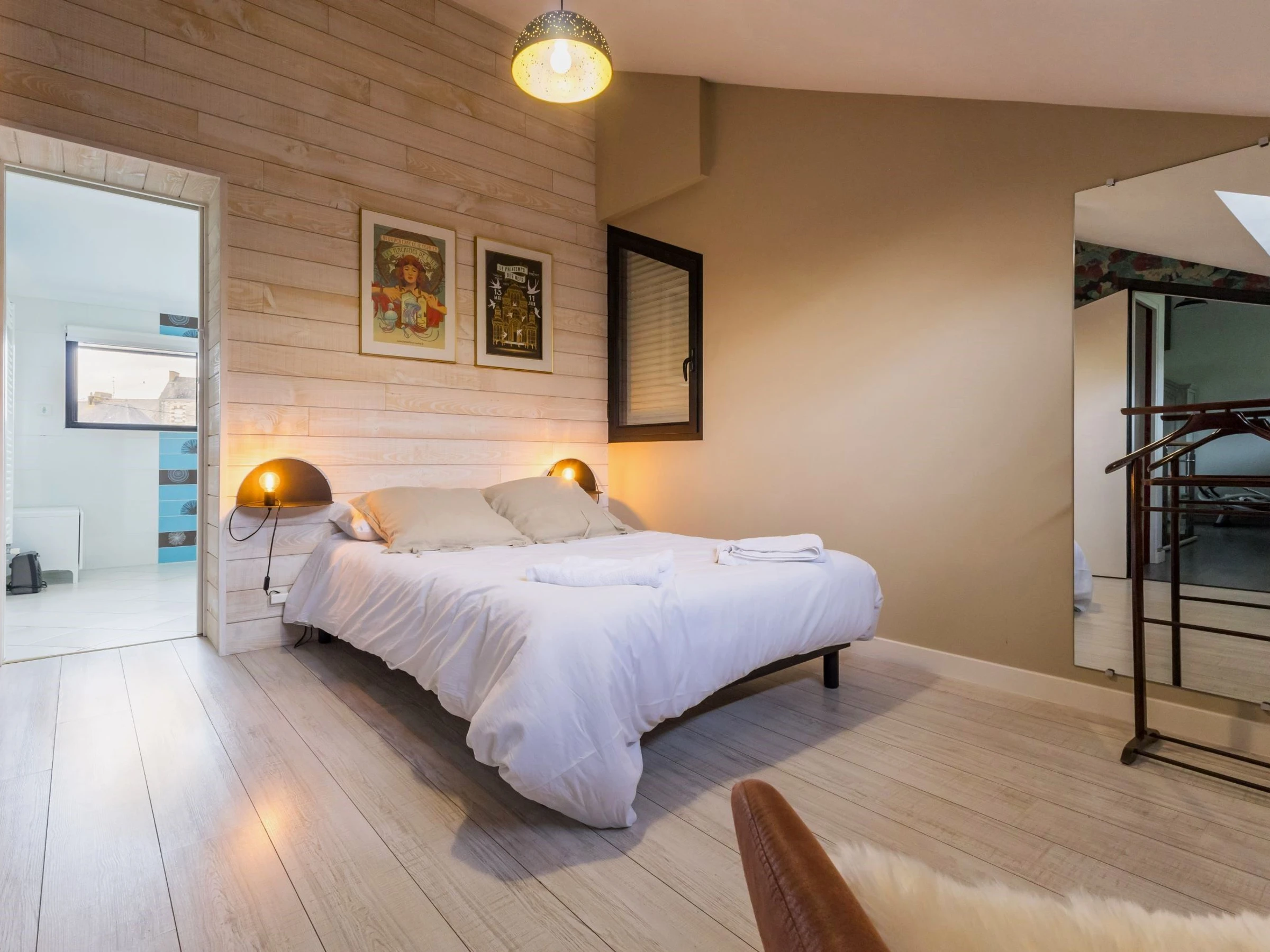 Étage : 2 chambres (chacune avec lit 160x200), salle d'eau et WC indépendant.