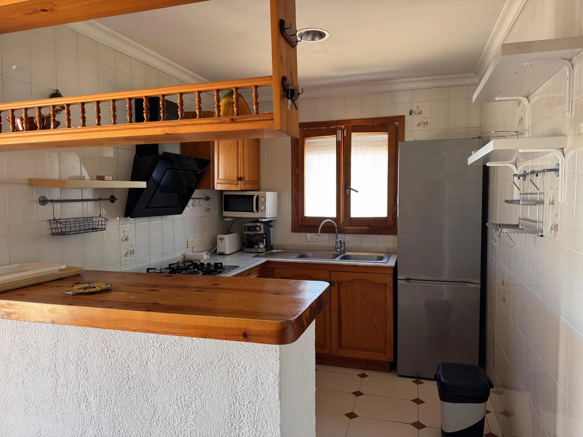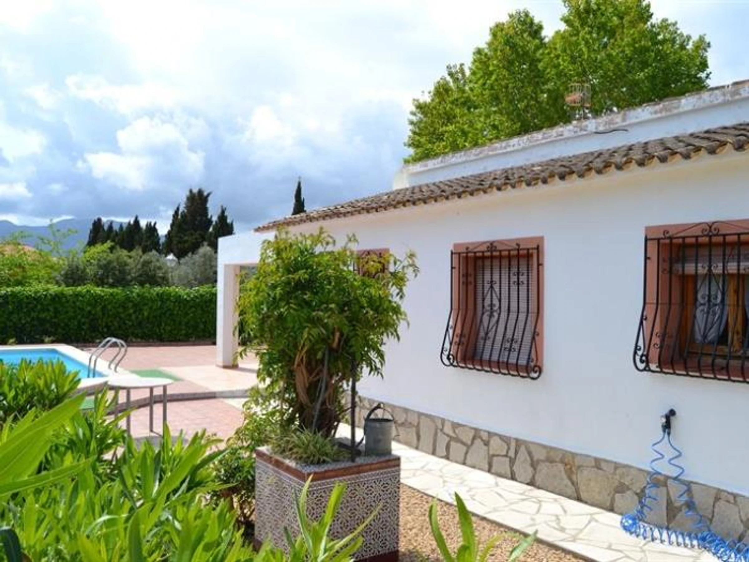 Caractéristiques de l'hébergementChambres : 3Capacité : 6 (max. 5 adultes)- 1 lit double, 4 lits simples.Cuisine américaine (Gaz) :- Réfrigérateur, Micro-ondes, Four, Lave-linge, Vaisselle/Couverts, Ustensiles de cuisine, Cafetière et Grille-pain.Salles de bains :- 1 Salle de bain avec baignoire.Vues :- Jardin, Piscine.Général:- 1 TV, Jardin, Salon de jardin, Jardin clôturé, Terrasse de 9 m², Barbecue, Internet (Wi-Fi), 100 m² logement, 800 m² terrain, Animaux domestiques admis, Piscine privée (dimensions 8*4, profondeur max 2 m), Parking couvert, 2 Ventilateurs.