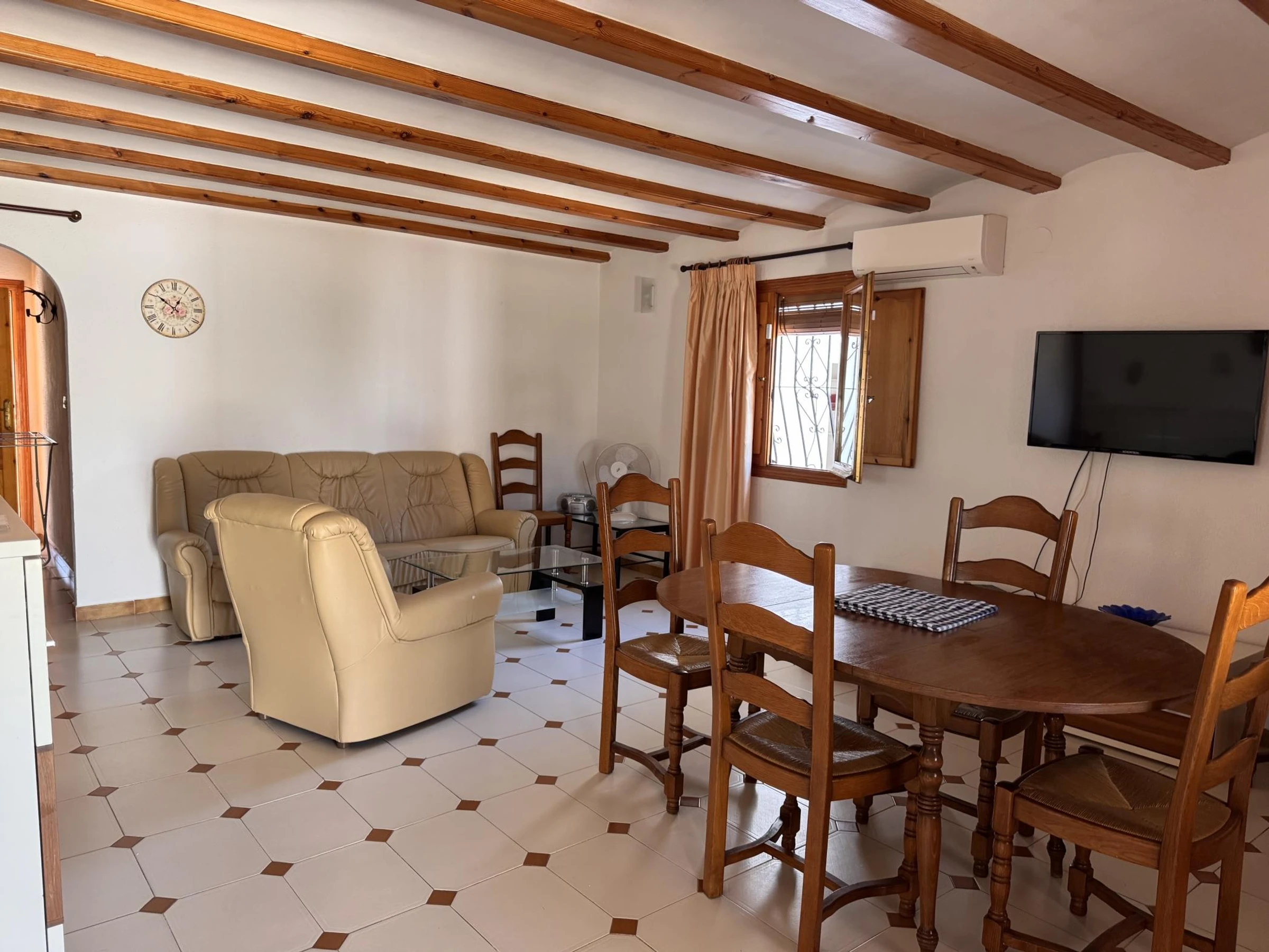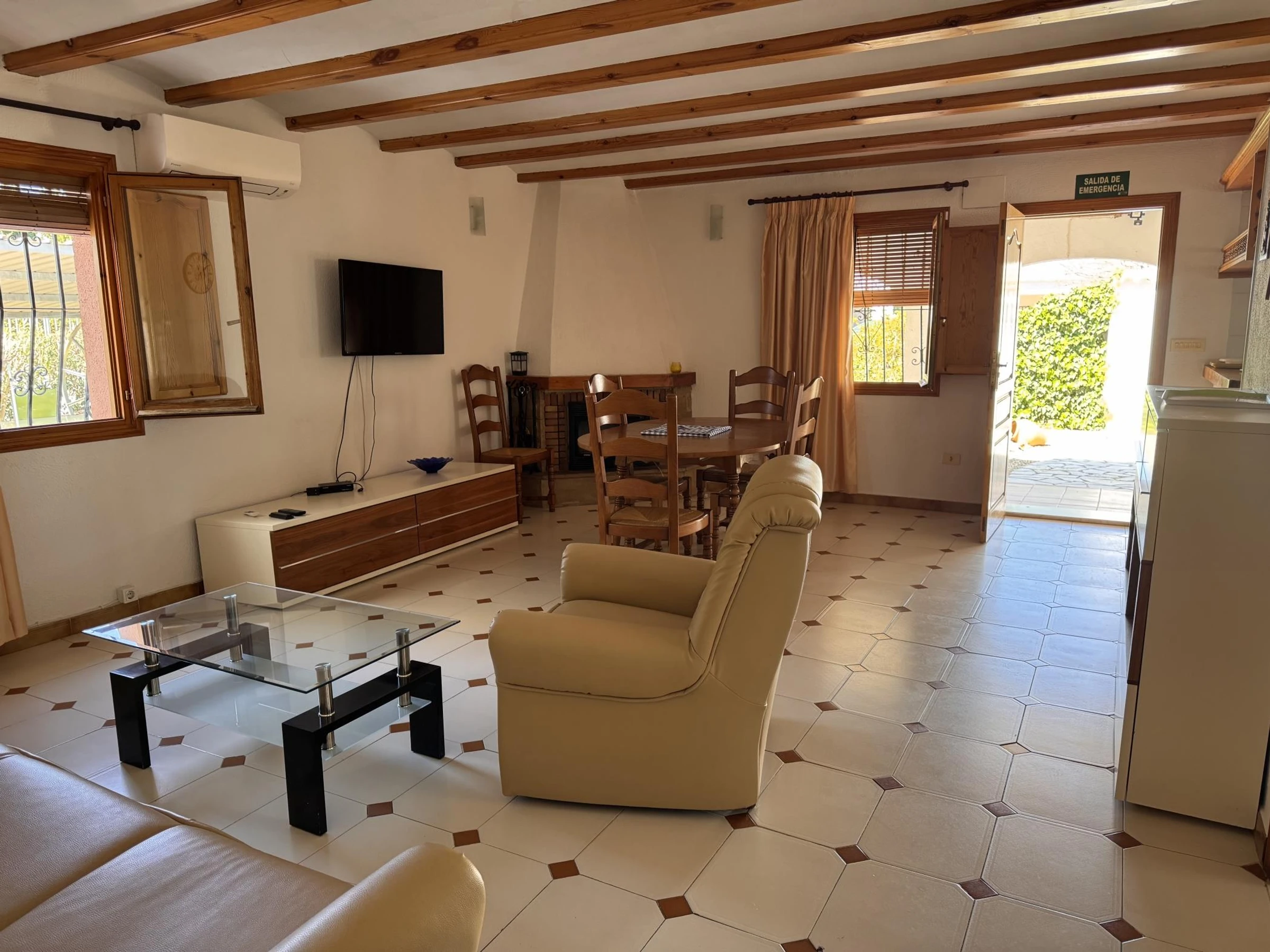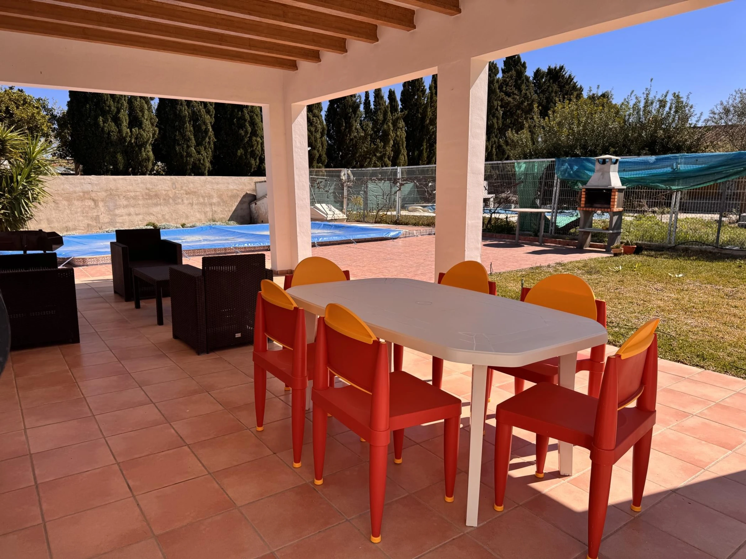 Le chalet à Oliva dispose de 3 chambres et a une capacité de 6 personnes (max. 5 adultes).Hébergement confortable et spacieux de 100 m², avec vue sur le jardin et la [hidden] est situé à 250 m de la plage de sable 'Las Deveses', à 1 km du terrain de golf 'Oliva Nova Golf', à 10 km de la ville 'Oliva', à 10 km du supermarché 'Oliva', à 100 km de l'aéroport 'Valence', à 110 km de l'aéroport 'Alicante' et est situé dans un quartier calme à côté de la mer.Elle dispose d'un jardin, salon de jardin, terrain clôturé, terrasse de 9 m², barbecue, accès internet (Wi-Fi), piscine privée, parking couvert, 2 ventilateurs, 1 [hidden] cuisine ouverte est équipée d'un réfrigérateur, d'un micro-ondes, d'un four, d'un lave-linge, de vaisselle/couverts, d'ustensiles de cuisine, d'une cafetière et d'un grille-pain.