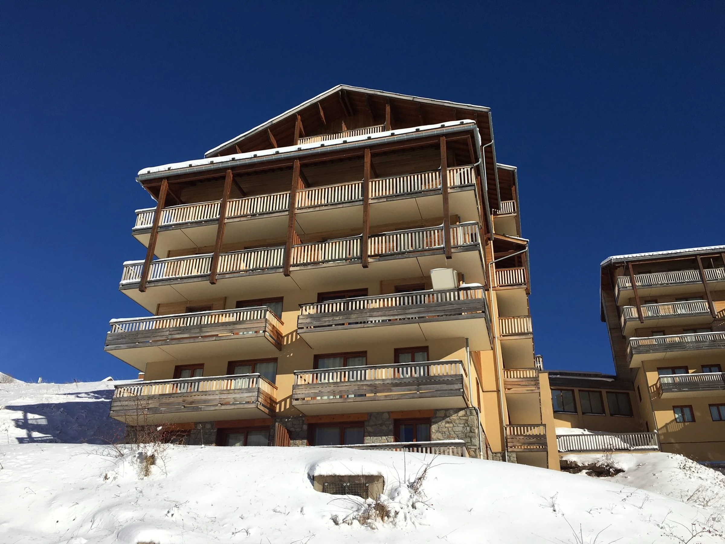 Résidence récente avec piscine, située sur les pistes, en plein centre station.