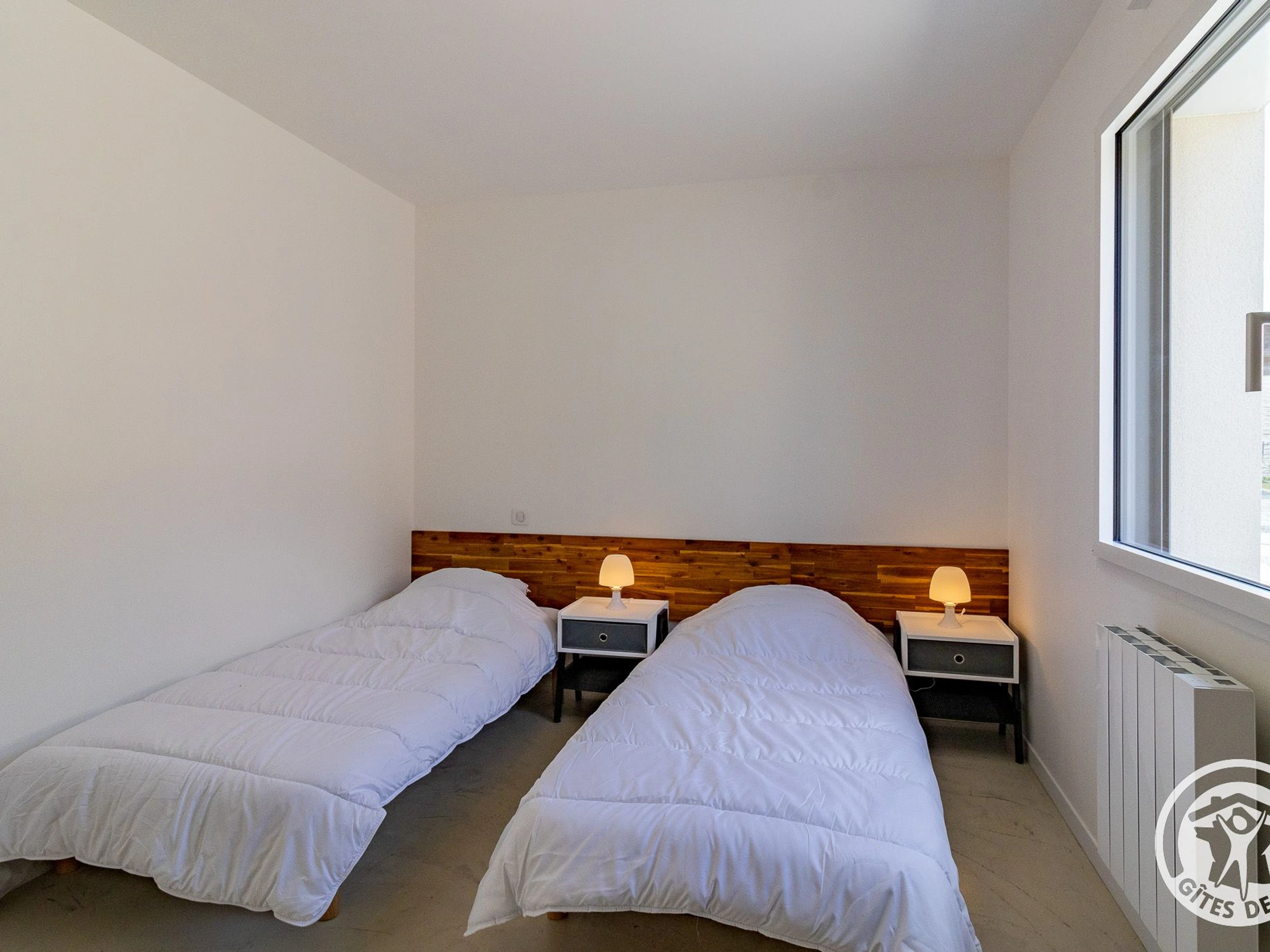 - 2 chambres : une avec un lit double de 140x190 cm, et l’autre avec deux lits simples de 90x190 cm.