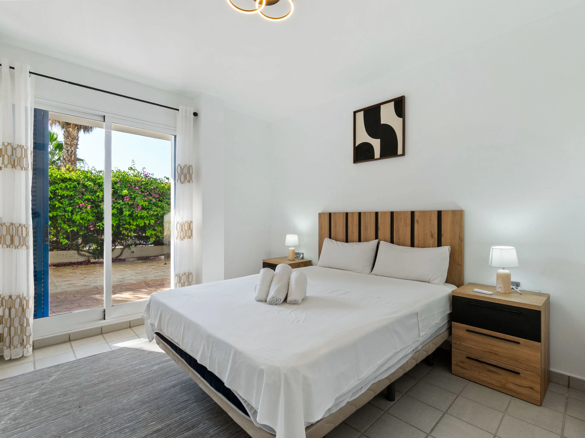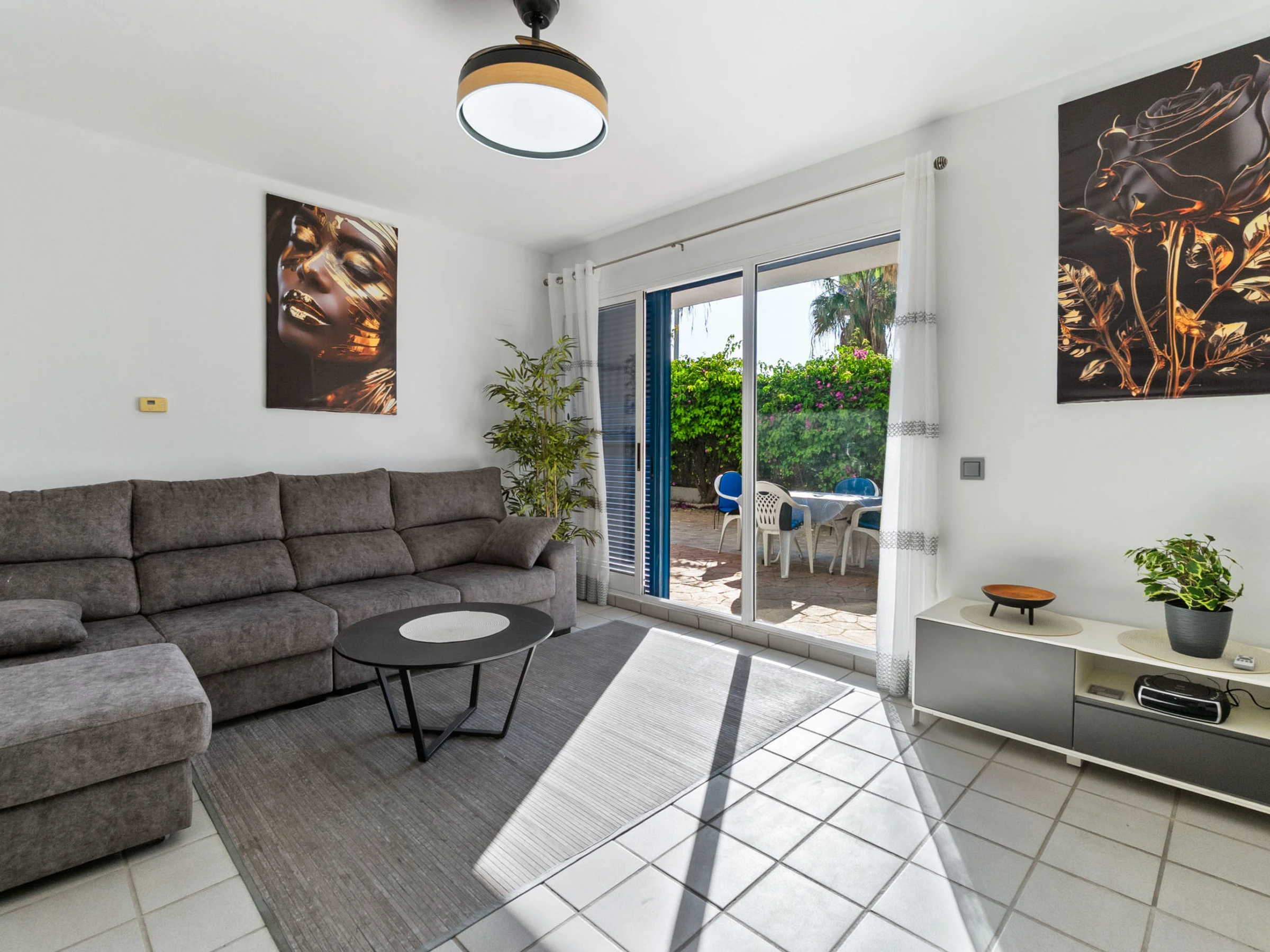"Las Terrazas", apt 3 pièces 82 m2, au rez-de-chaussée. Spacieux et clair, aménagement confortable et agréable: séjour/salle à manger avec Télévision numérique, air-conditionné, ventilateur et chauffage à air chaud. Sortie sur la terrasse. 1 chambre avec 1 grand-lit (1 x 180 cm, longueur 200 cm), douche/WC, air-conditionné, ventilateur et chauffage à air chaud. Sortie sur la terrasse. 1 chambre avec 1 grand-lit (1 x 150 cm, longueur 190 cm), air-conditionné et chauffage à air chaud. Sortie sur la terrasse. Cuisine ouverte (four, lave-vaisselle, 4 plaques vitrocéramiques, grille-pain, bouilloire électrique, micro-ondes, cafetière électrique). Douche/WC. Grande terrasse. A disposition: lave-linge, fer à repasser, sèche-cheveux. Internet (Connexion WIFI, gratuit). Place de parking No 10b (couvert). Veuillez noter: maison non-fumeur. [hidden] // Reg. Nr.: ESFCTU00000305800053498500000000000000000[hidden]3