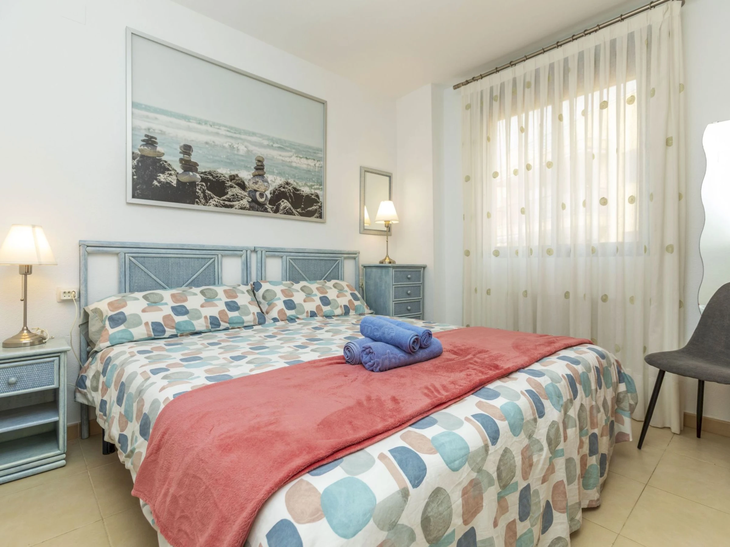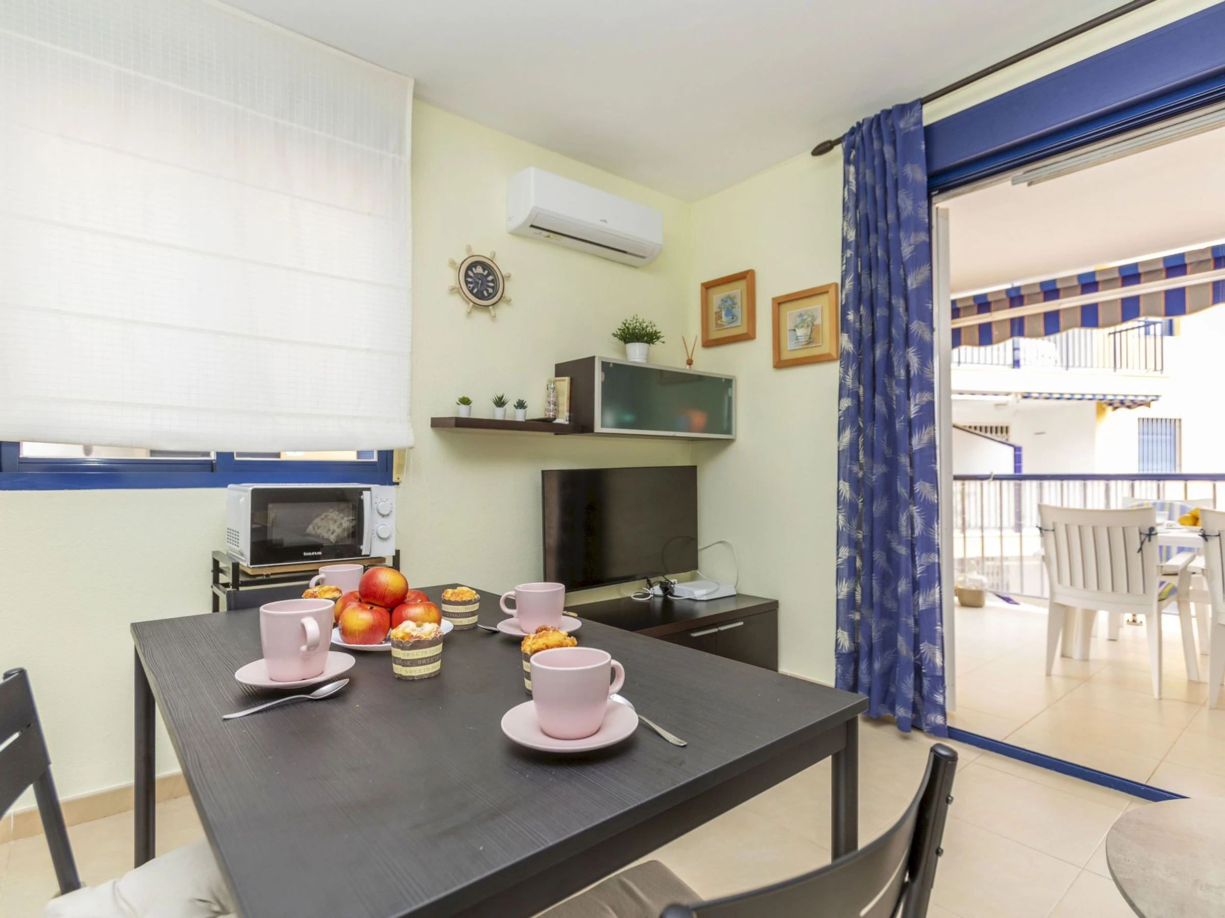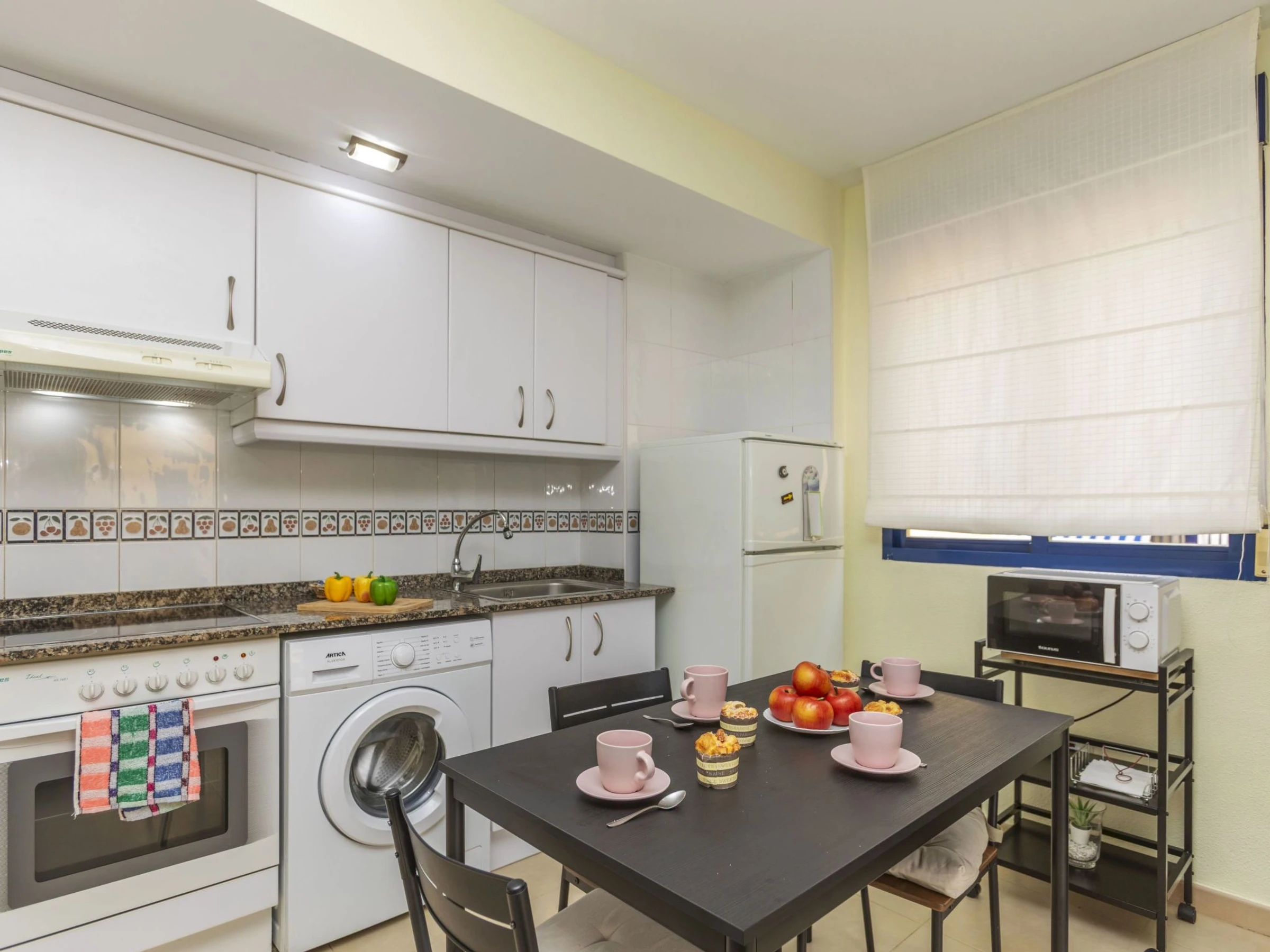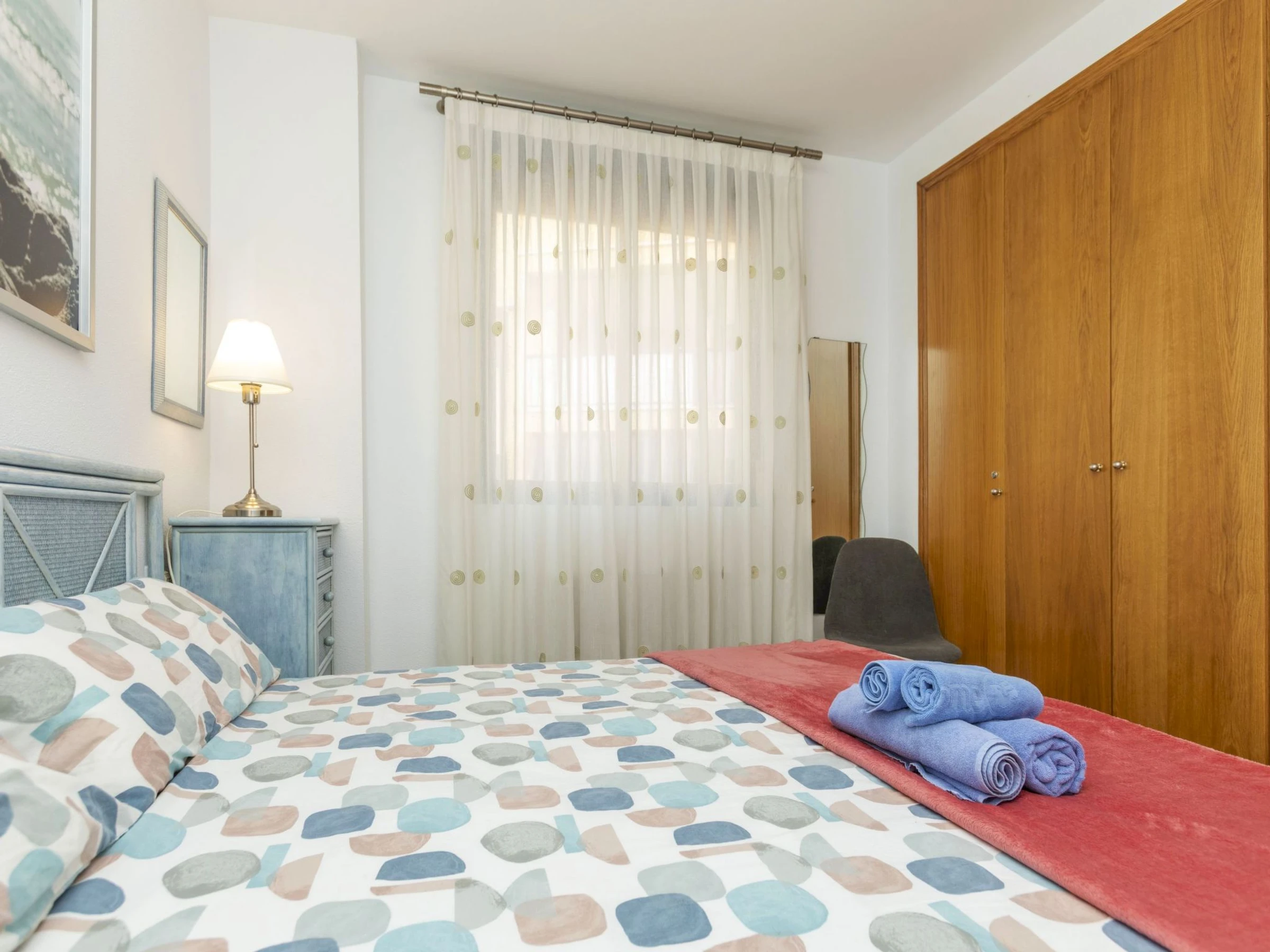 "Villablanca I", apt 2 pièces 50 m2 au 1er étage. Aménagement fonctionnel et agréable: séjour/salle à manger avec 1 divan-lit double (180 cm, longueur 190 cm), table pour les repas, Télévision numérique, écran plat, air-conditionné et chauffage à air chaud. Sortie sur la terrasse. 1 chambre avec 1 grand-lit (150 cm, longueur 190 cm), ventilateur. Cuisine ouverte (four, 4 plaques vitrocéramiques, grille-pain, bouilloire électrique, micro-ondes, congélateur, cafetière électrique). Douche/bidet/WC. Grande terrasse 16 m2. Meubles de terrasse. Vue panoramique sur la piscine et la localité. A disposition: lave-linge, fer à repasser, chaise haute pour enfant, lit bébé jusqu'à 2 ans, sèche-cheveux. Internet (Connexion WIFI, gratuit). Place de parking No 8 (couvert). Veuillez noter: adapté(e) aux familles. Logement non-fumeur. TV seulement ES. [hidden] // Reg. Nr.: ESFCTU000012026000246717000000000000000000VT-42905CS3