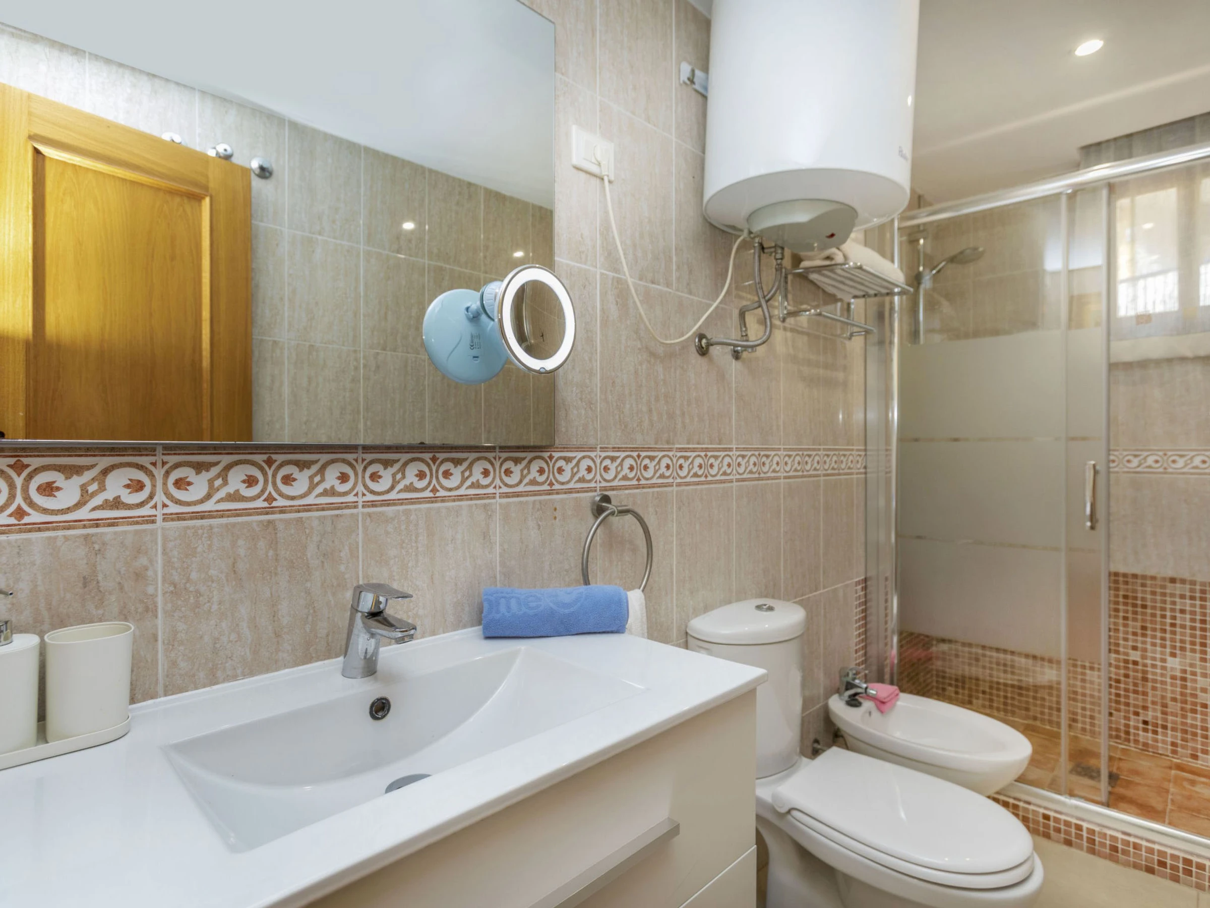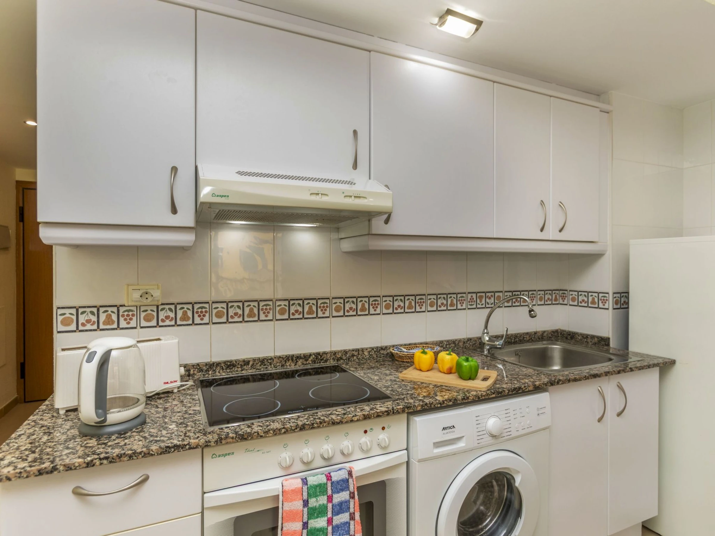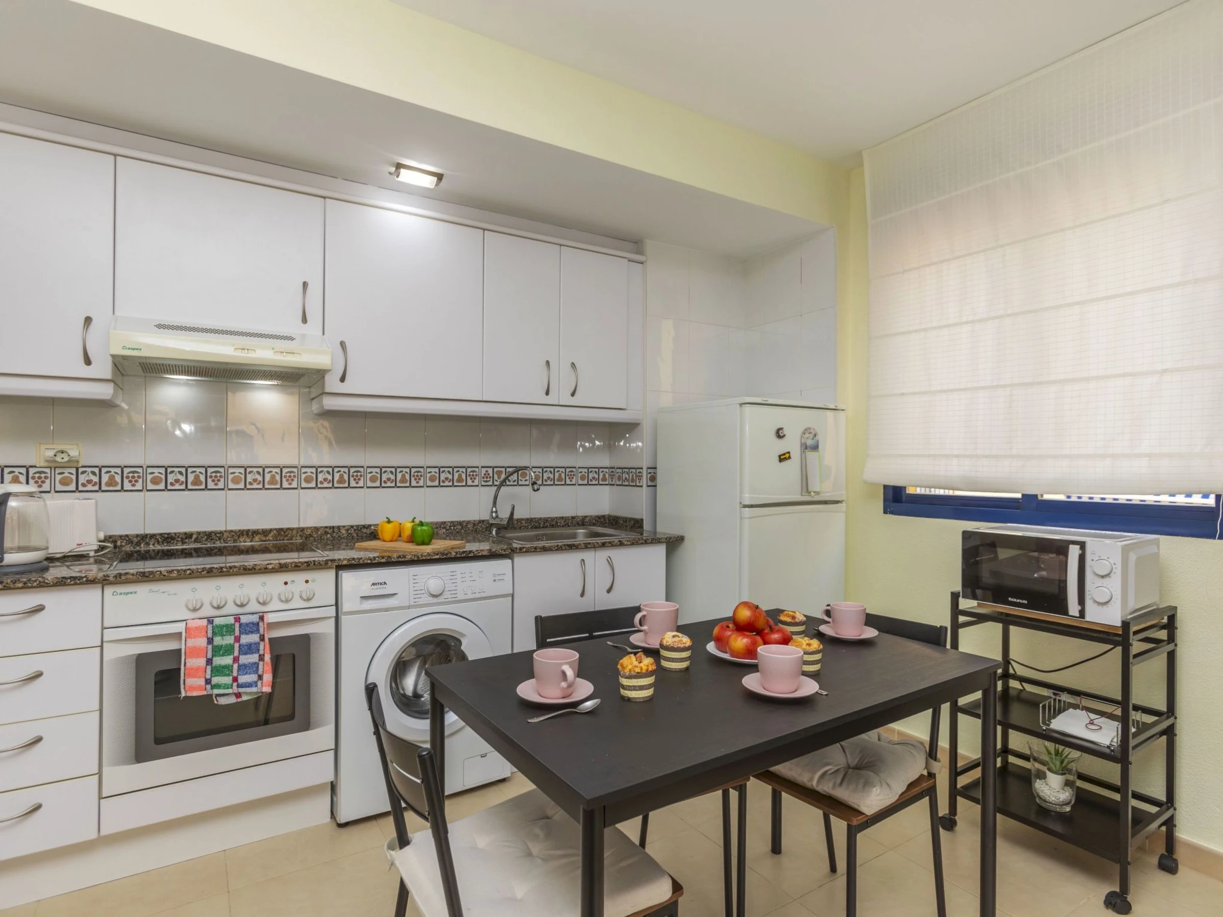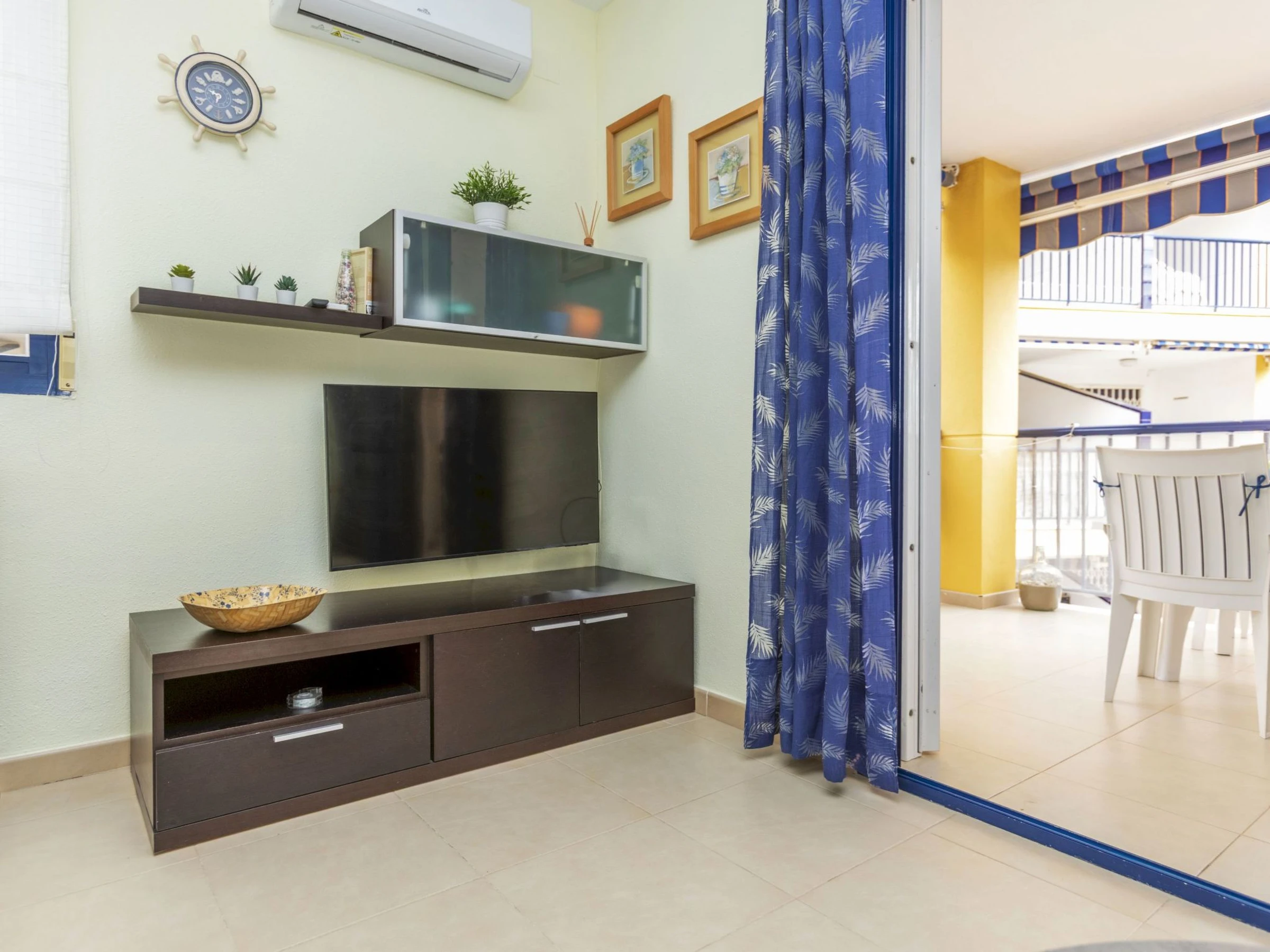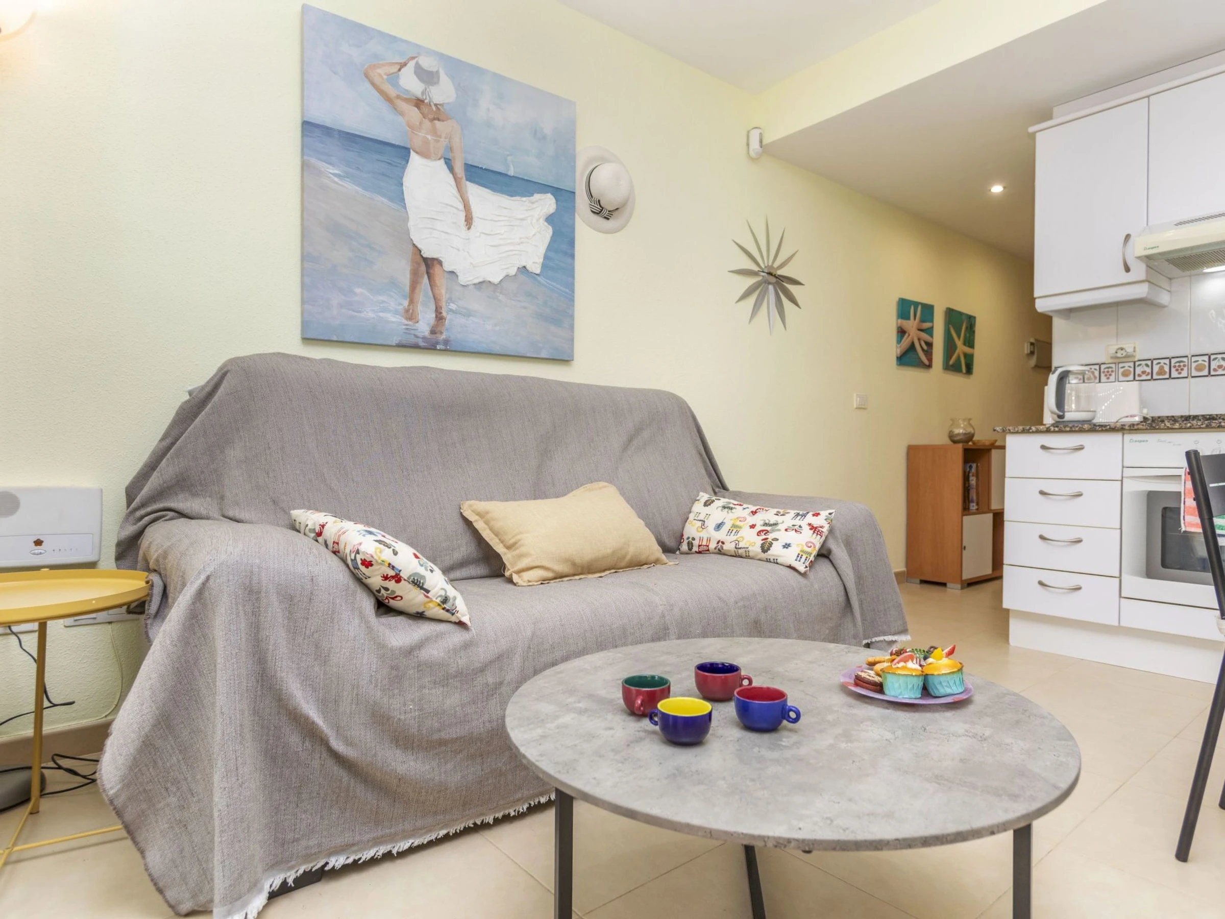 "Villablanca I", apt 2 pièces 50 m2 au 1er étage. Aménagement fonctionnel et agréable: séjour/salle à manger avec 1 divan-lit double (180 cm, longueur 190 cm), table pour les repas, Télévision numérique, écran plat, air-conditionné et chauffage à air chaud. Sortie sur la terrasse. 1 chambre avec 1 grand-lit (150 cm, longueur 190 cm), ventilateur. Cuisine ouverte (four, 4 plaques vitrocéramiques, grille-pain, bouilloire électrique, micro-ondes, congélateur, cafetière électrique). Douche/bidet/WC. Grande terrasse 16 m2. Meubles de terrasse. Vue panoramique sur la piscine et la localité. A disposition: lave-linge, fer à repasser, chaise haute pour enfant, lit bébé jusqu'à 2 ans, sèche-cheveux. Internet (Connexion WIFI, gratuit). Place de parking No 8 (couvert). Veuillez noter: adapté(e) aux familles. Logement non-fumeur. TV seulement ES. [hidden] // Reg. Nr.: ESFCTU000012026000246717000000000000000000VT-42905CS3