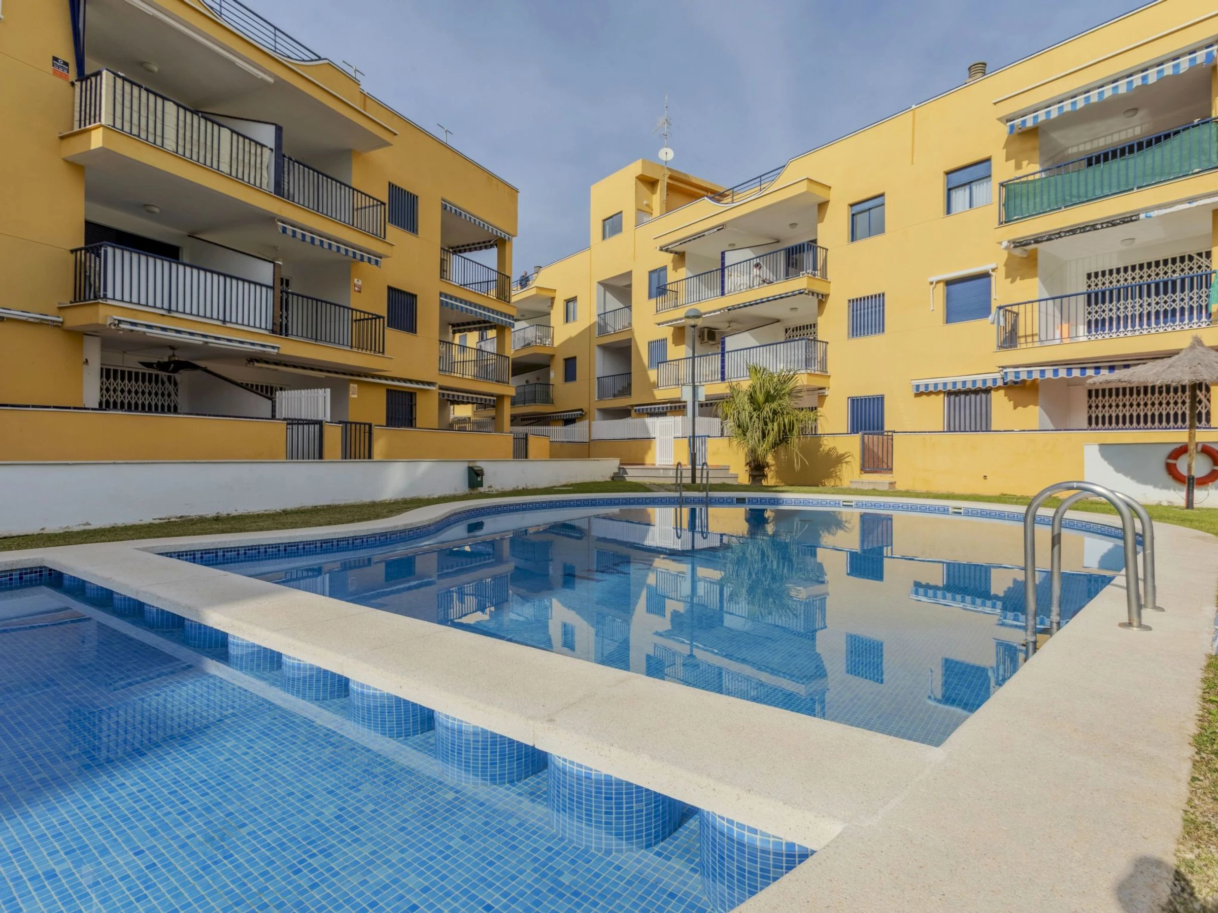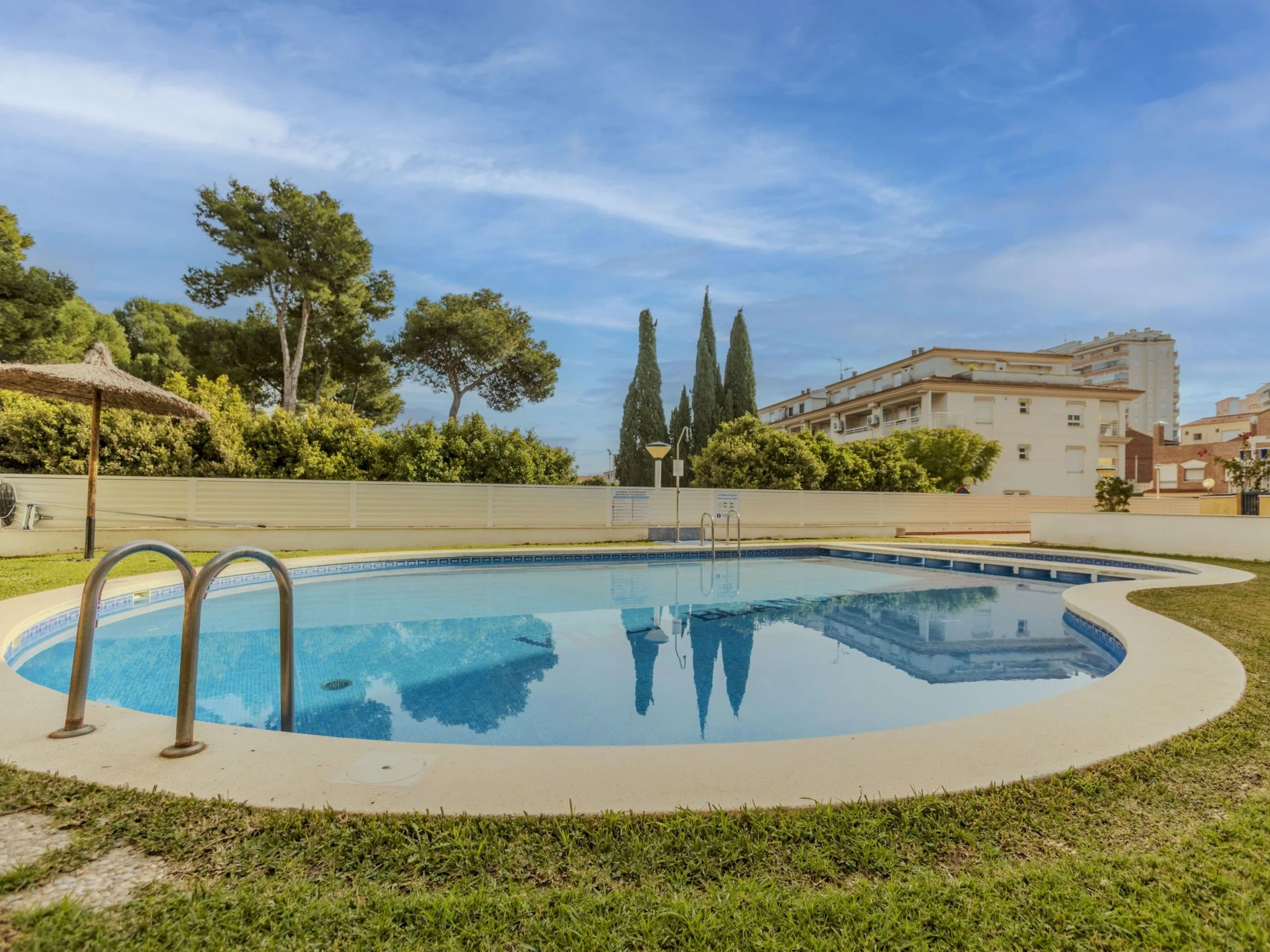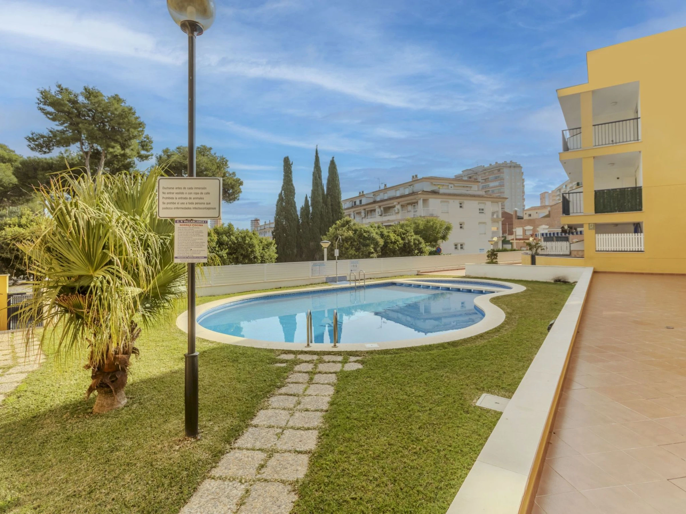 Oropesa del Mar: Petite résidence "Villablanca I", de 3 étages. À 300 m du centre d'Oropesa del Mar, situation centrale, tranquille, à 500 m de la mer, à 500 m de la plage. En commun: terrain, jardin, piscine ronde (disponibilité saisonnière: [hidden] - [hidden] horaires d'ouverture de la piscine: 09:00-22:00). Infrastructures de la Maison: ascenseur. Place de parking (couvert), garage en commun. Magasin d'alimentation 200 m, supermarché 250 m, restaurant 300 m, bar 200 m, arrêt de bus "Av Valencia" 300 m, gare ferroviaire "Oropesa de Mar" 300 m, plage de sable "Playa Concha" 500 m. Port plaisance 2 km. Attractions à proximité: Peñiscola 45 km, Aquarama Benicassim 10 km, Ciudad de Las artes y Las Ciencias 90 km, Las Coves de Sant Josep 60 km, Vilafames 30 m. Région de randonnées: Vía Verde del Mar Oropesa - Benicasim 4 km. Groupes de jeunes sur demande seulement. Environnement très sensible au bruit. Silence et bonne tenue exigés.