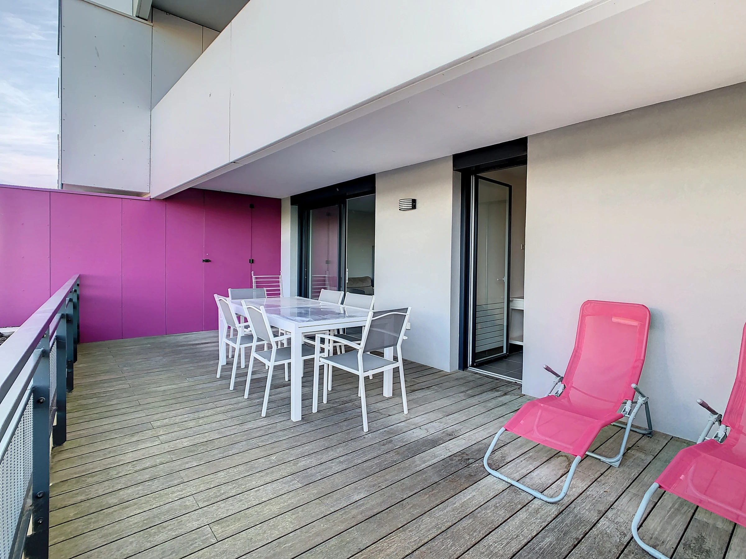 Bel appartement de type F2 avec une superbe terrasse d'environ 25 m², vue étangs et arrière pays, au premier étage d'une résidence de standing récente avec piscine collective (ouverte juillet et aout) et ascenseur, à 150 m de la plage.