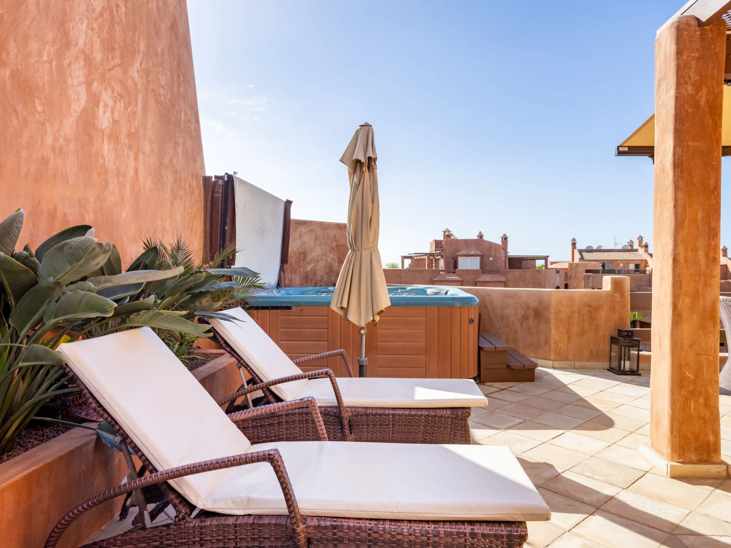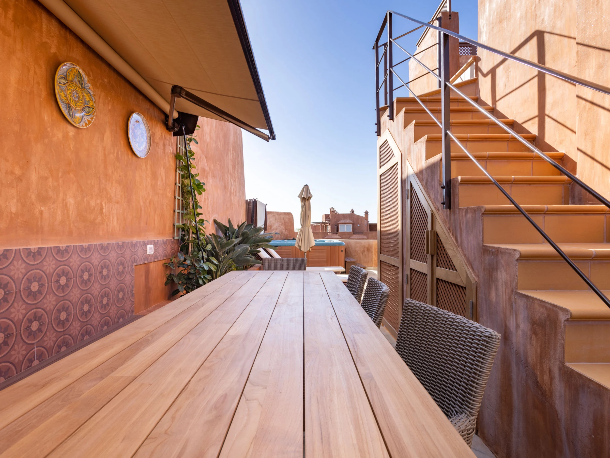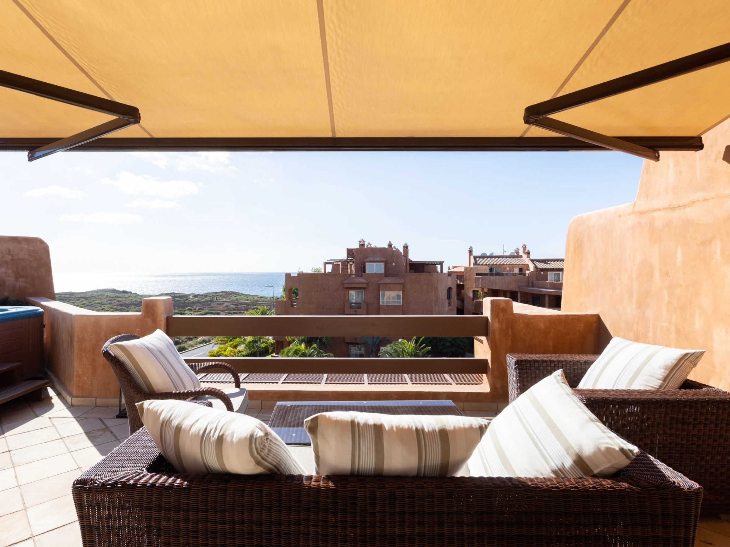 Petite résidence moderne, accueillante, confortable "Duplex Bencomo", de 2 étages, année de construction 2006. Dans la localité, situation tranquille, ensoleillée, à 200 m de la mer, à 200 m de la plage. En commun: beau jardin sur plusieurs niveaux entretenu, 3 piscines chauffée (profondeur 120 - 160 cm, disponibilité saisonnière: [hidden] - [hidden] Douche/WC dans l'espace piscine, bassin pour les enfants. Infrastructures de la Maison: ascenseur. Place de parking (pour 2 voitures, couvert). Supermarché, restaurant, arrêt de bus 300 m, plage de galets 200 m. Résidence gardée.