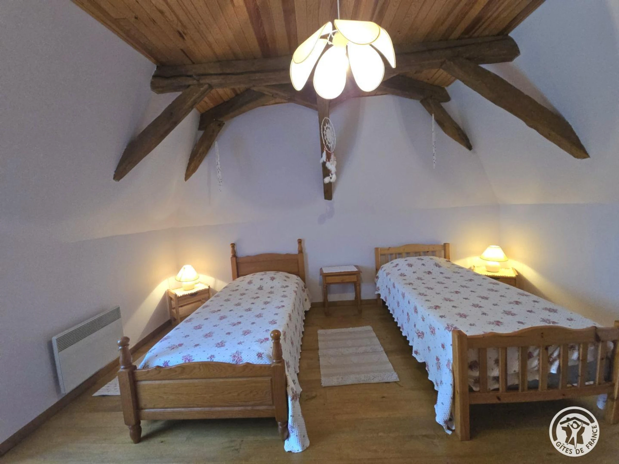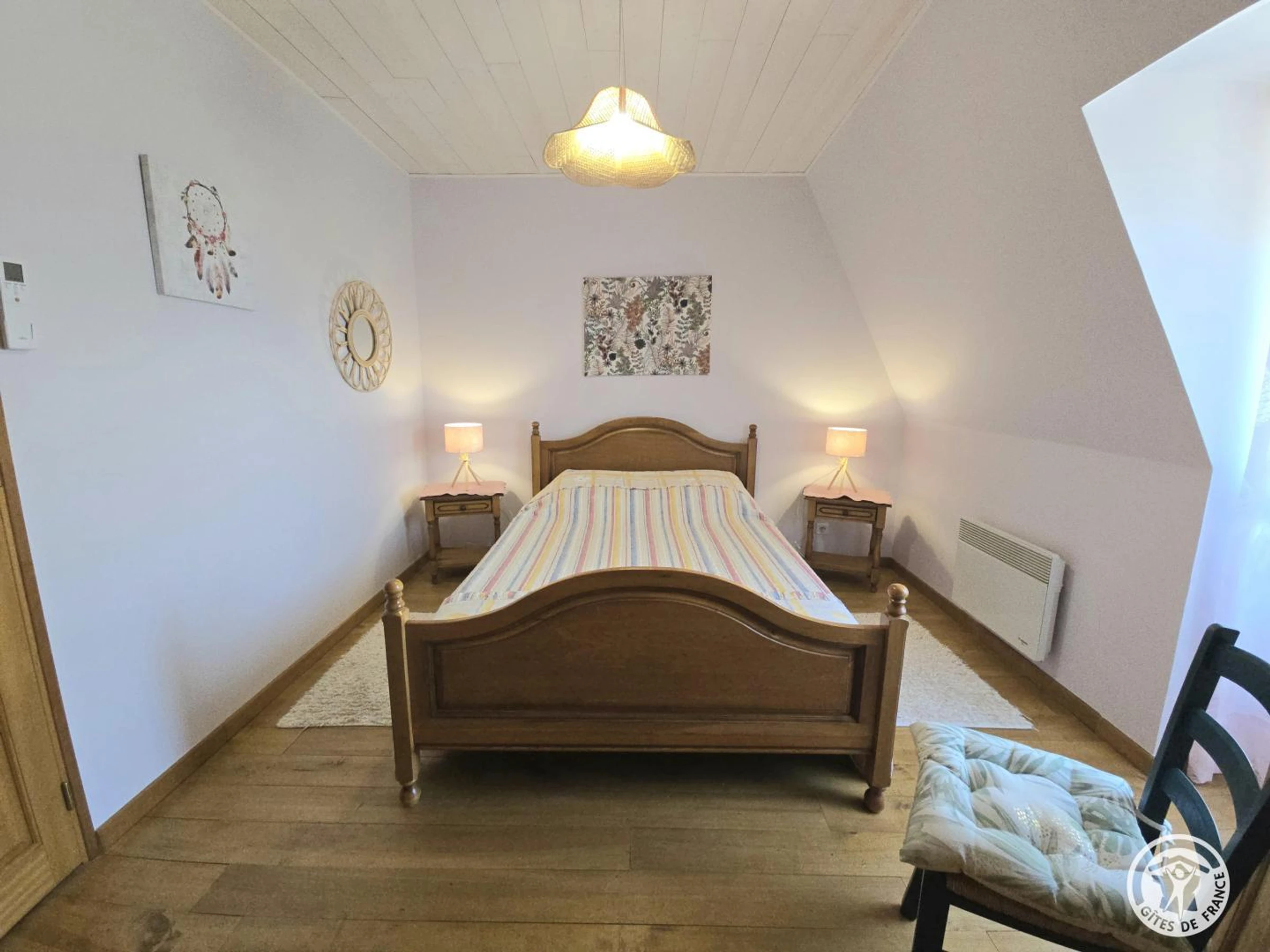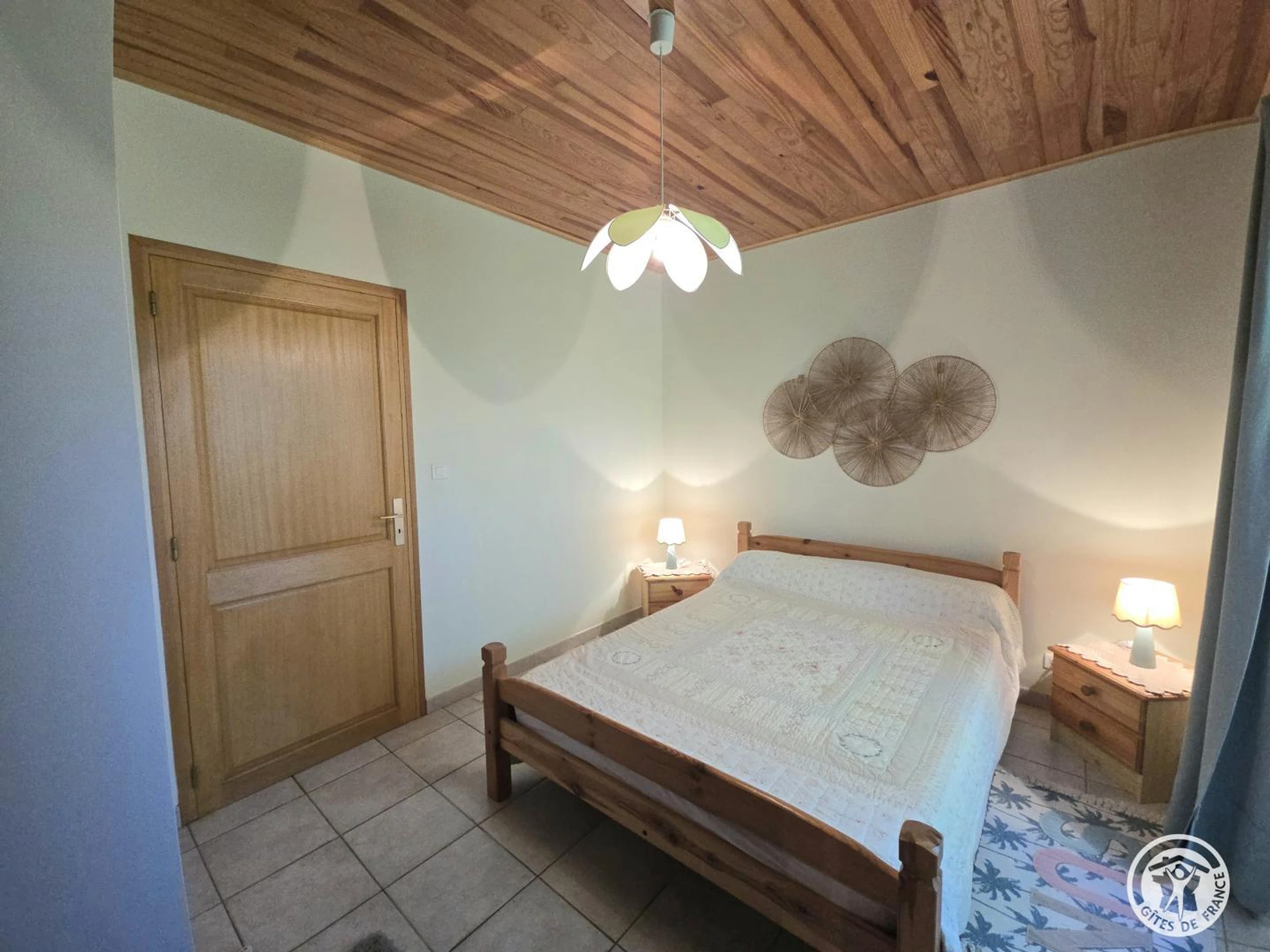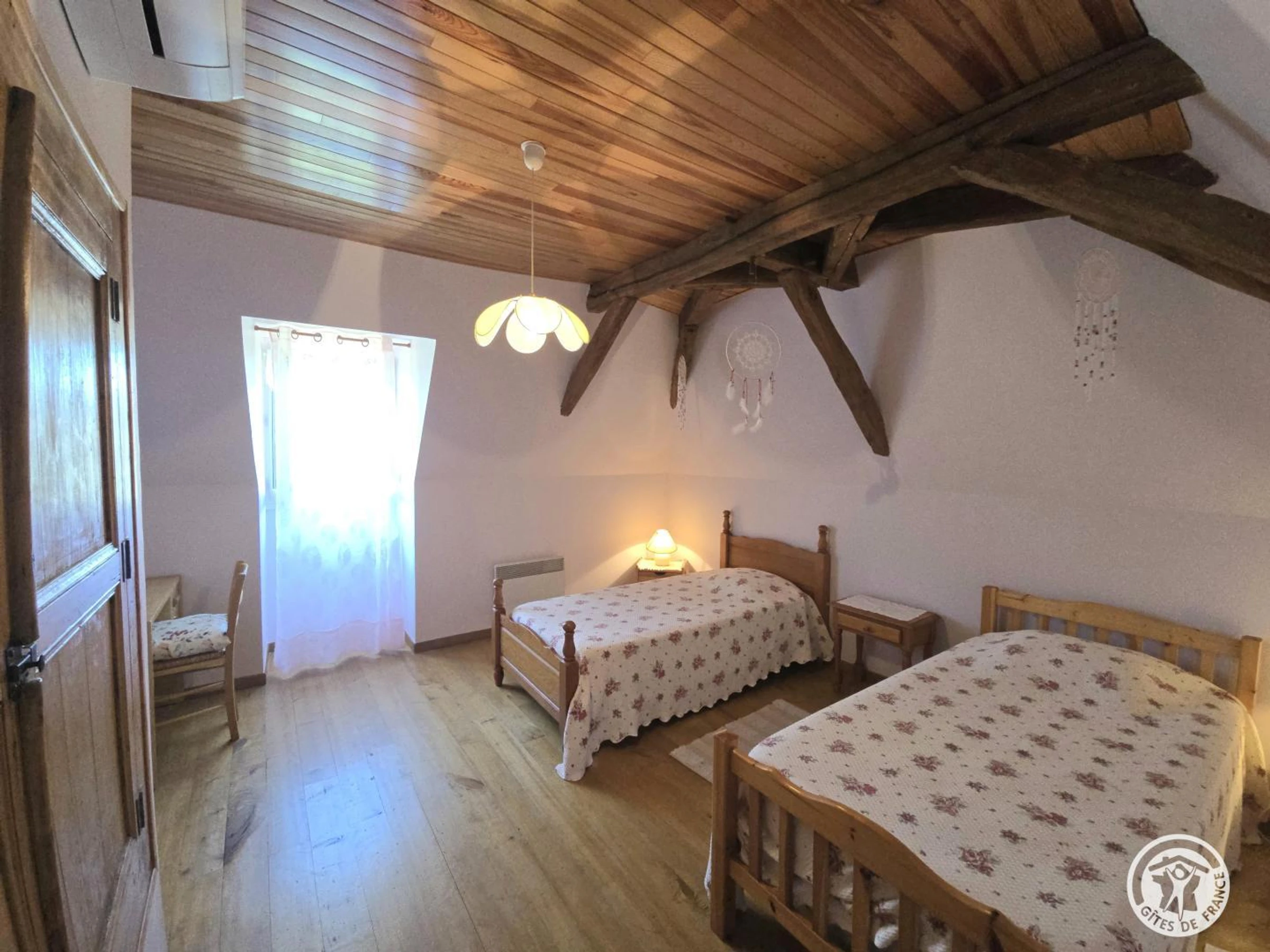 A l'étage : 2 chambres : 2 lits en 90 et 1 lit en 140. Climatisation dans les deux chambres de l'é[hidden] indépendant. Chauffage électrique. Terrain non clos de 750 m2 matérialisé par une haie. Petite terrasse avec auvent. Salon de jardin, bains de soleil et barbecue. Piscine non chauffée commune à un autre gîte et au propriétaire. Clôturée. Dimension : 6x12m. Profondeur : Petit bassin de 1.10m et grand bassin de 2.30m. Ouverture du 01/06 au 30/09.