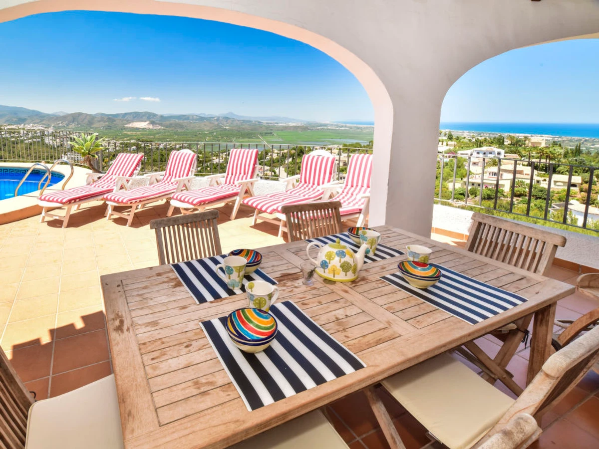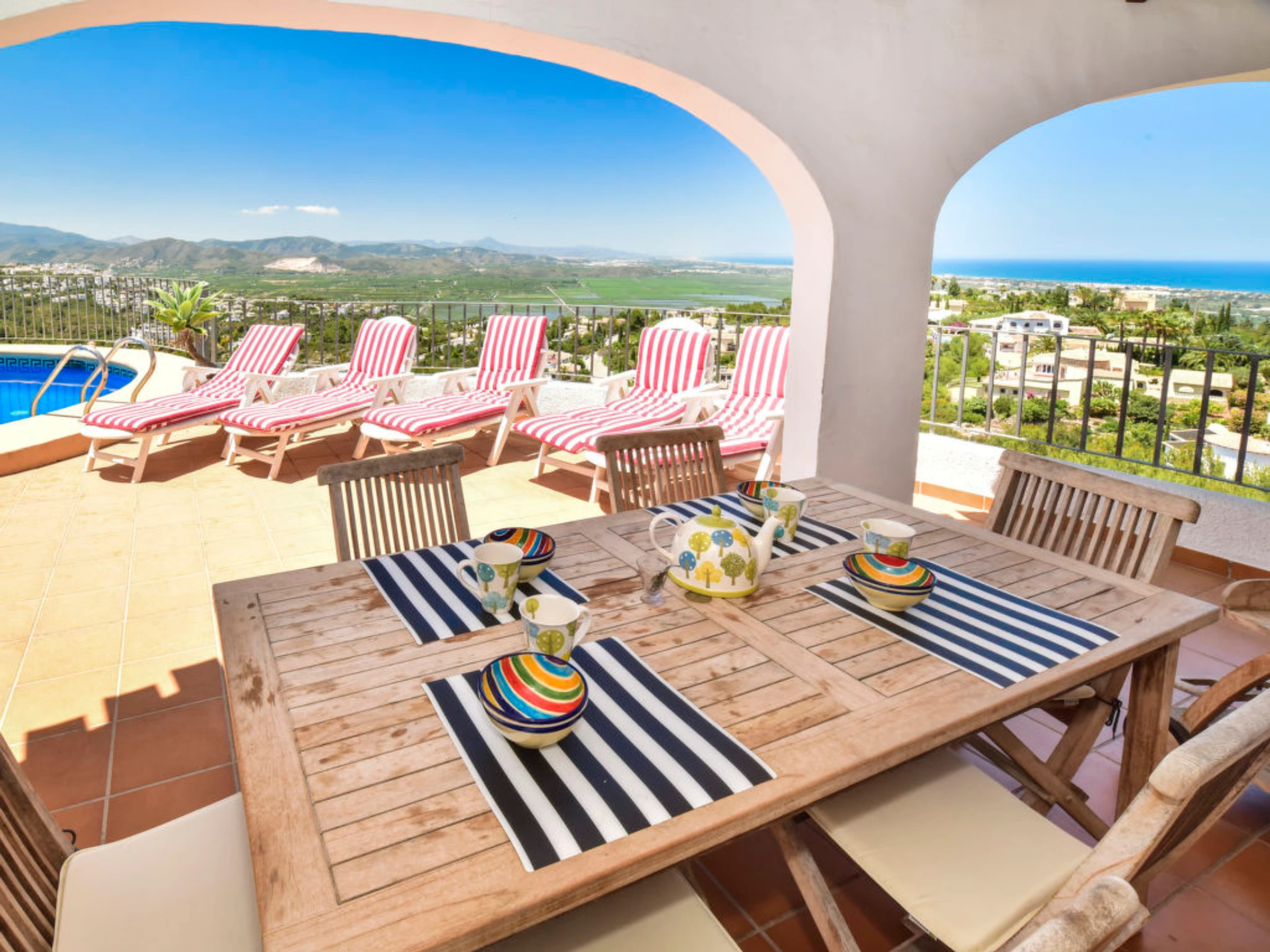 Belle villa moderne "Eva", année de construction 2005. Dans le quartier de Monte Pego, situation tranquille, ensoleillée, surélevée sur un versant, à 8 km de la mer, dans une impasse. A usage privé: terrain 2'000 m2, piscine en forme de rein (5 x 8 m, 01.01.-31.12.). Douche extérieure, espace barbecue, place de parking. Magasins 5 km, supermarché 5 km, centre commercial 12 km, restaurant 1 km, bar 1 km, café 1 km, plage de sable 8 km. Terrain de golf (18 trous) 12 km, tennis 1 km.