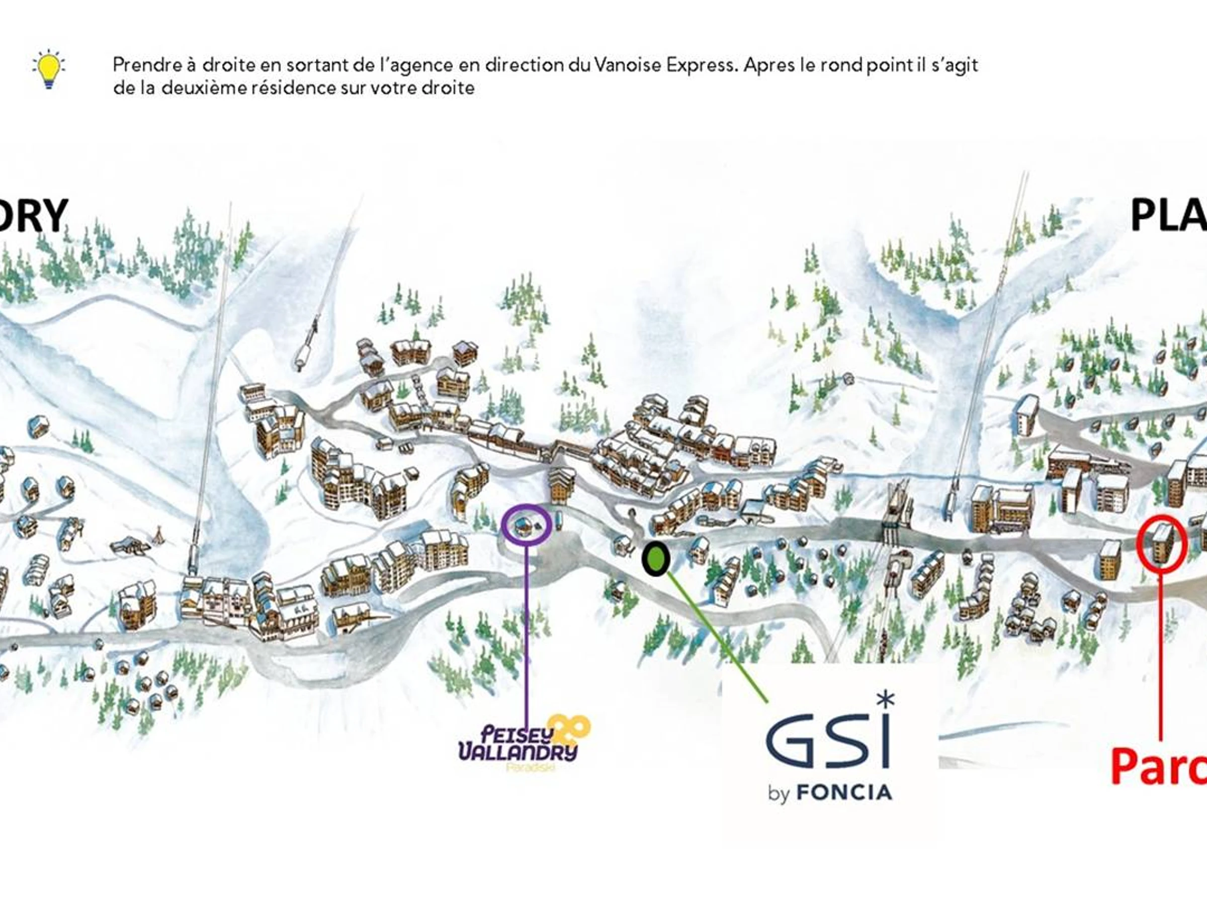 Résidence située sur Plan Peisey après le Vanoise Express, la 2ème résidence longeant la route. L'accès aux pistes se fait en longeant la route et en montant les escaliers qui menent au front de neige de Plan Peisey. Accès au Vanoise Express et au télésiège de Plan Peisey.