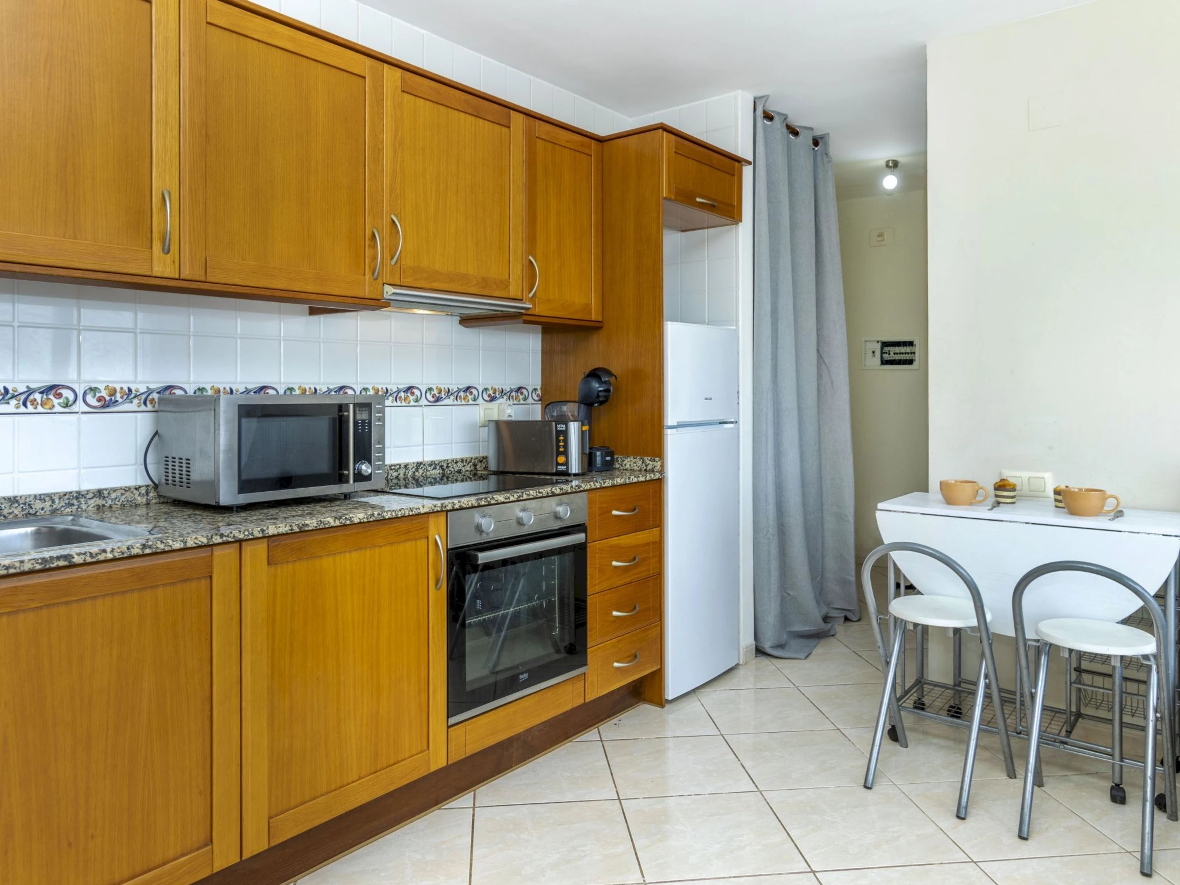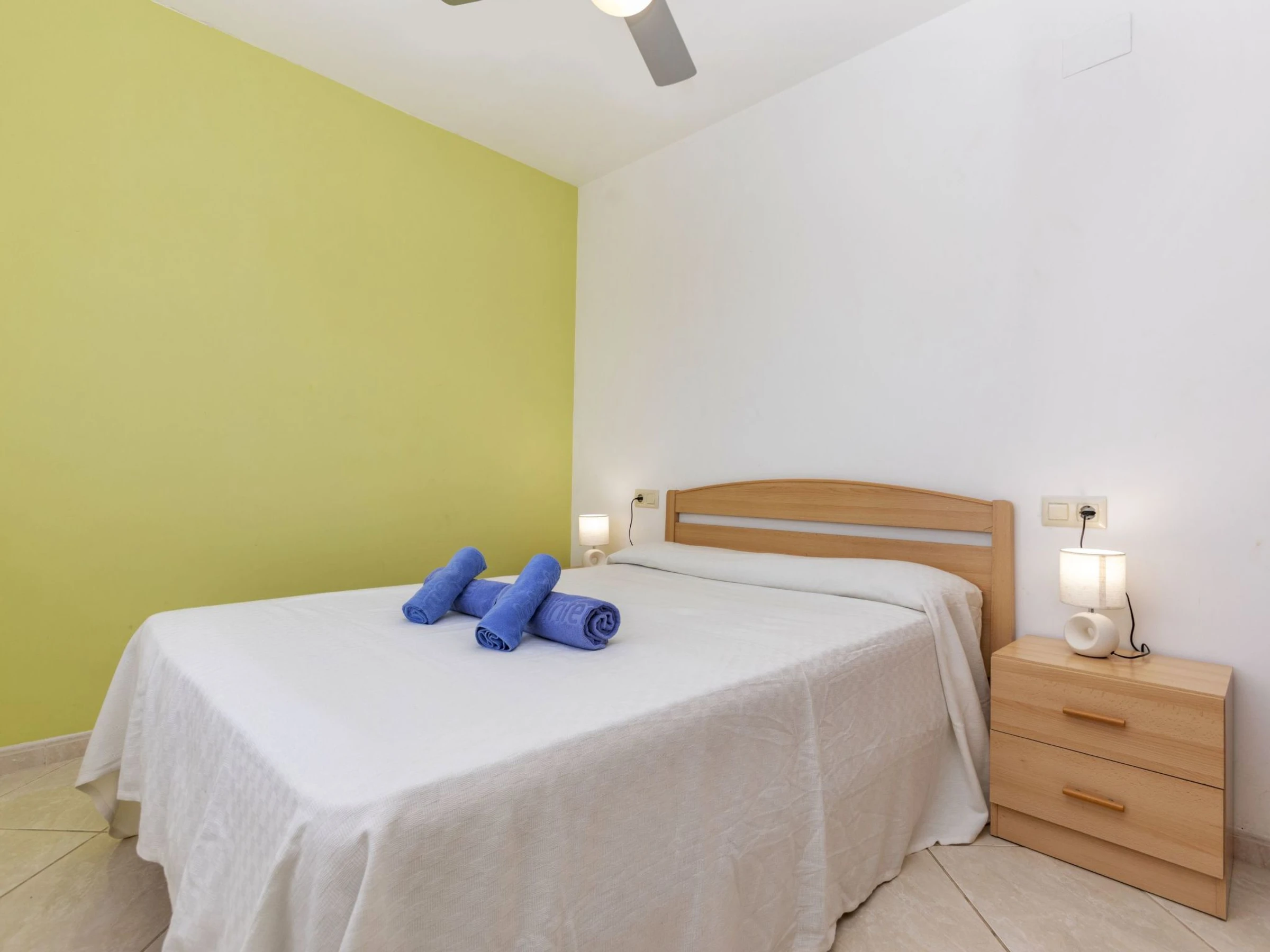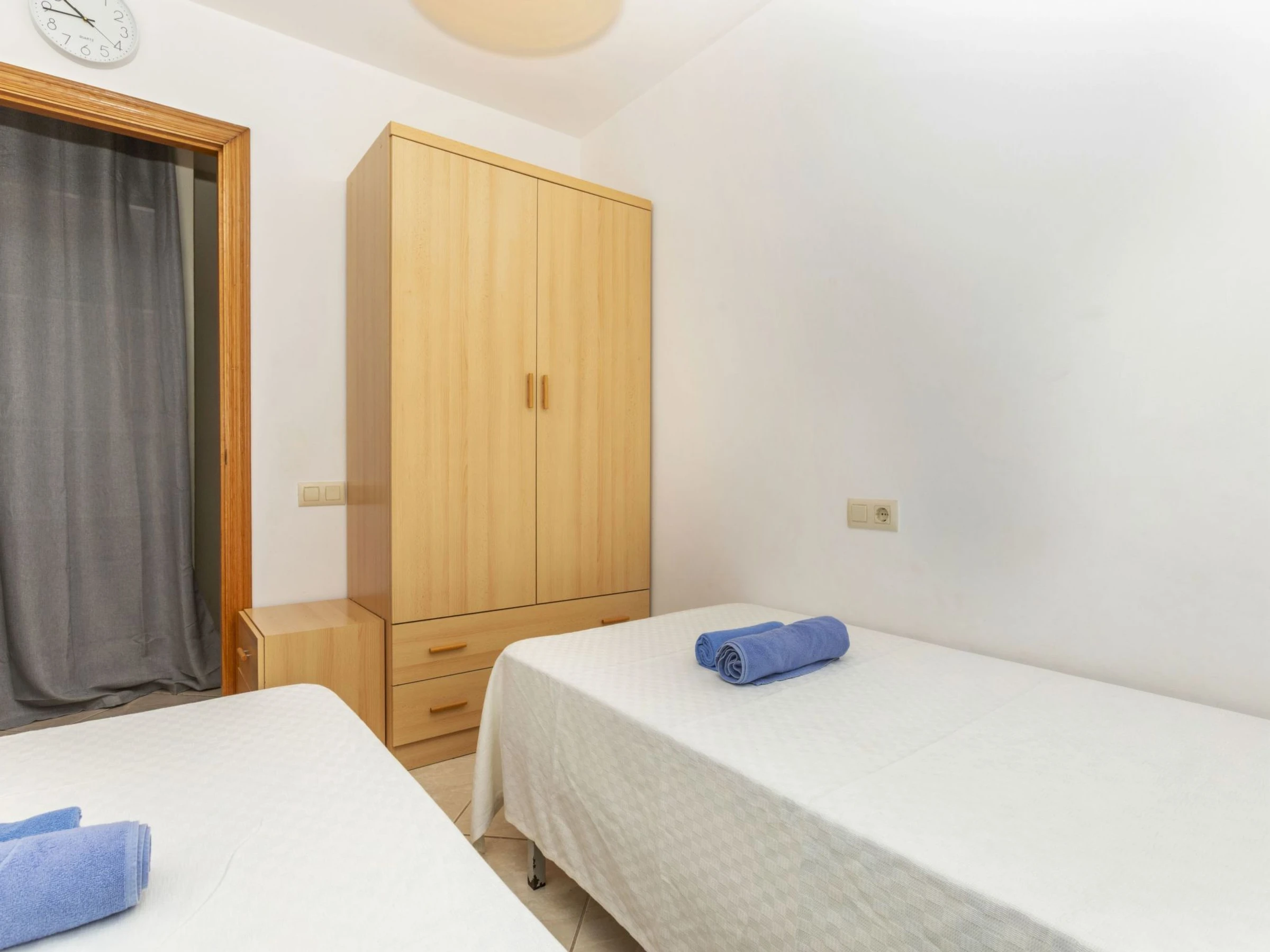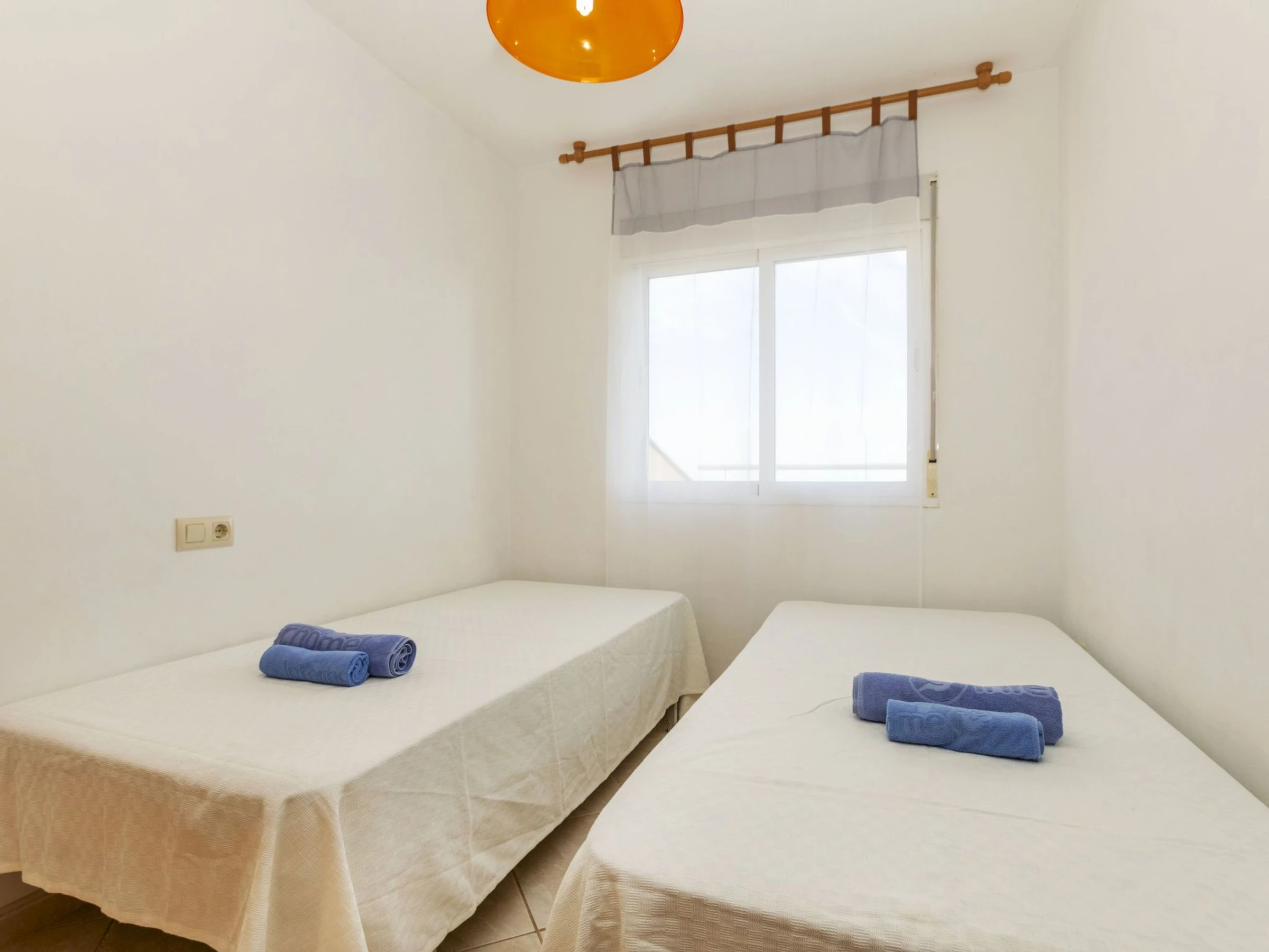 "Montemar II", apt 3 pièces 55 m2. Logement idéal pour 2 adultes + 2 enfants. Aménagement fonctionnel et confortable: séjour/salle à manger avec table pour les repas, Télévision numérique, air-conditionné, ventilateur et chauffage à air chaud. Sortie sur la terrasse. 1 chambre avec 1 grand-lit (1 x 135 cm, longueur 190 cm), ventilateur. 1 chambre avec 2 lits (80 cm, longueur 190 cm), ventilateur. Cuisine ouverte (four, 3 plaques vitrocéramiques, grille-pain, micro-ondes, cafetière électrique, Capsules pour machine à café (Dolce Gustto) (NON INCLUSES)) avec chauffe eau (45 litres). Bain/bidet/WC. Terrasse 20 m2. Meubles de terrasse. Superbe vue sur la mer. A disposition: lave-linge, fer à repasser, sèche-cheveux. Internet (Connexion WIFI, gratuit). Place de parking No 3. Veuillez noter: logement non-fumeur. TV seulement ES. Sans ascenseur. [hidden]