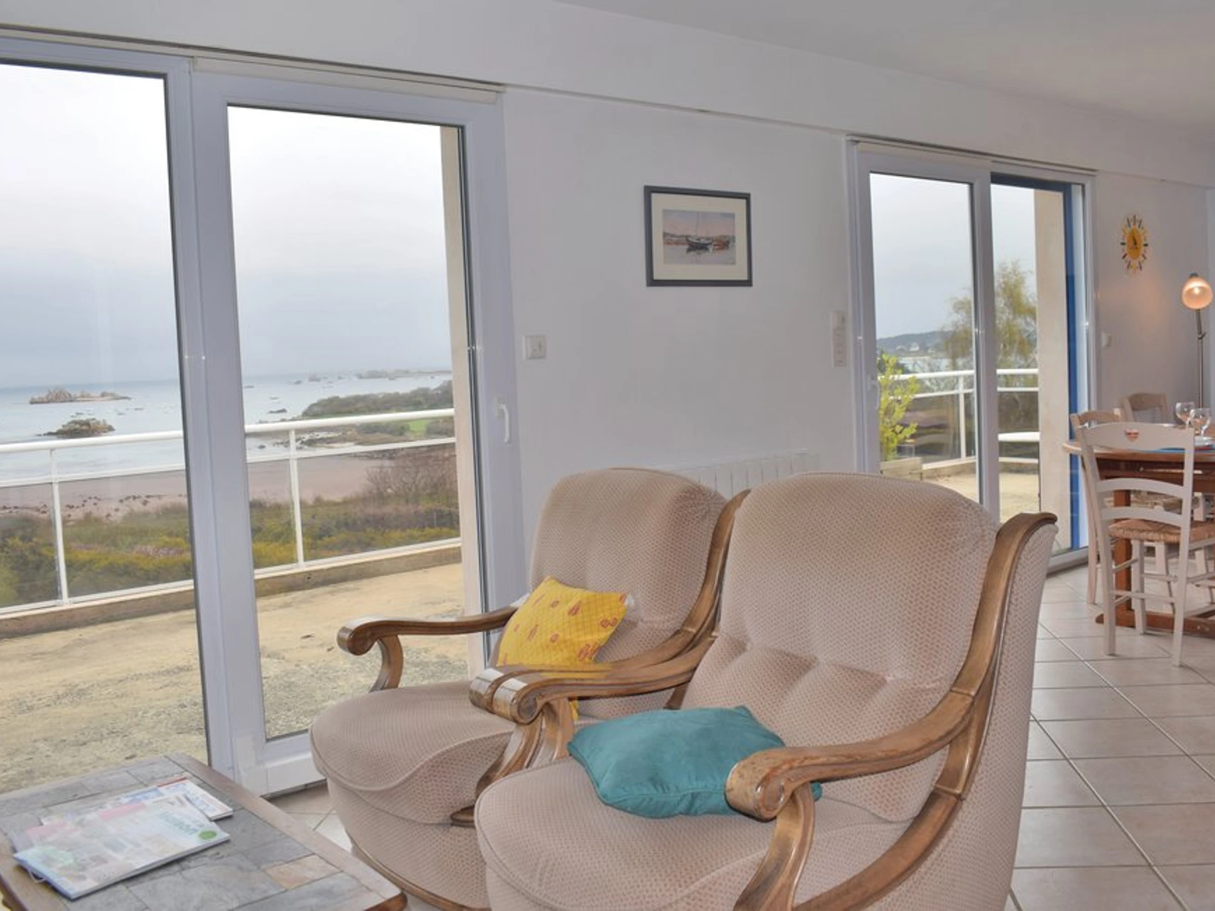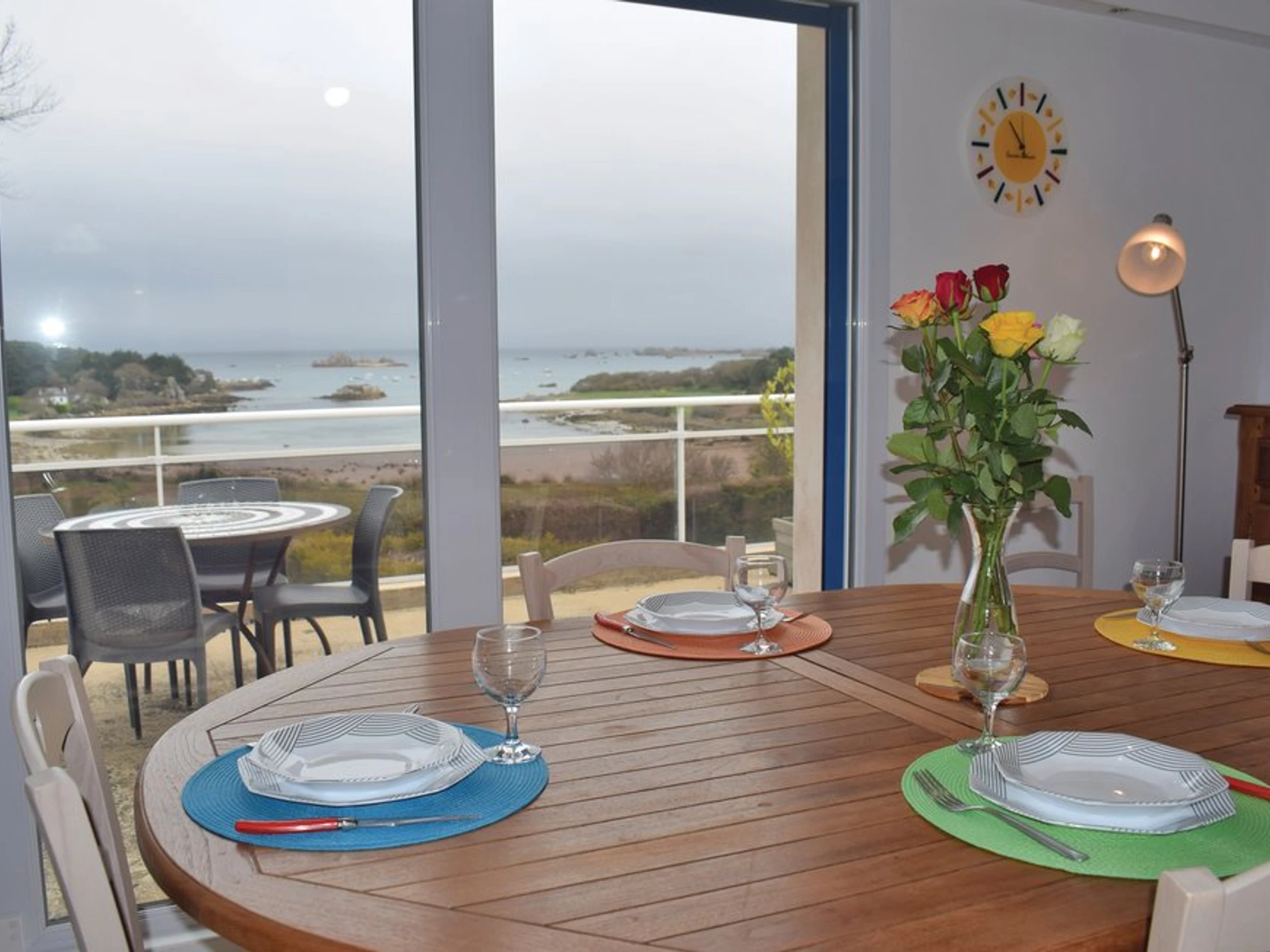 Cette charmante maison de pierre en bord de mer, domine la baie de Buguelès avec une jolie terrasse invitant à la détente et permettant d'admirer le paysage changeant au rythme des marées. Petite commune du Trégor avec un littoral escarpé qui invitera les randonneurs à découvrir de superbes panoramas, notamment par la côte des ajoncs. Des ballades à Plougrescant au clocher penché, son gouffre, la pointe du château où vous découvrirez des rochers de granit originaux formés par les remous.Tréguier, petite ville de caractère avec ses ruelles et ses maisons à colombages. Disponible sur le site avec supplément: Draps et serviettes - 12.0 EUR par personne; Nettoyage(sur place) - 60.0 EUR par séjour;