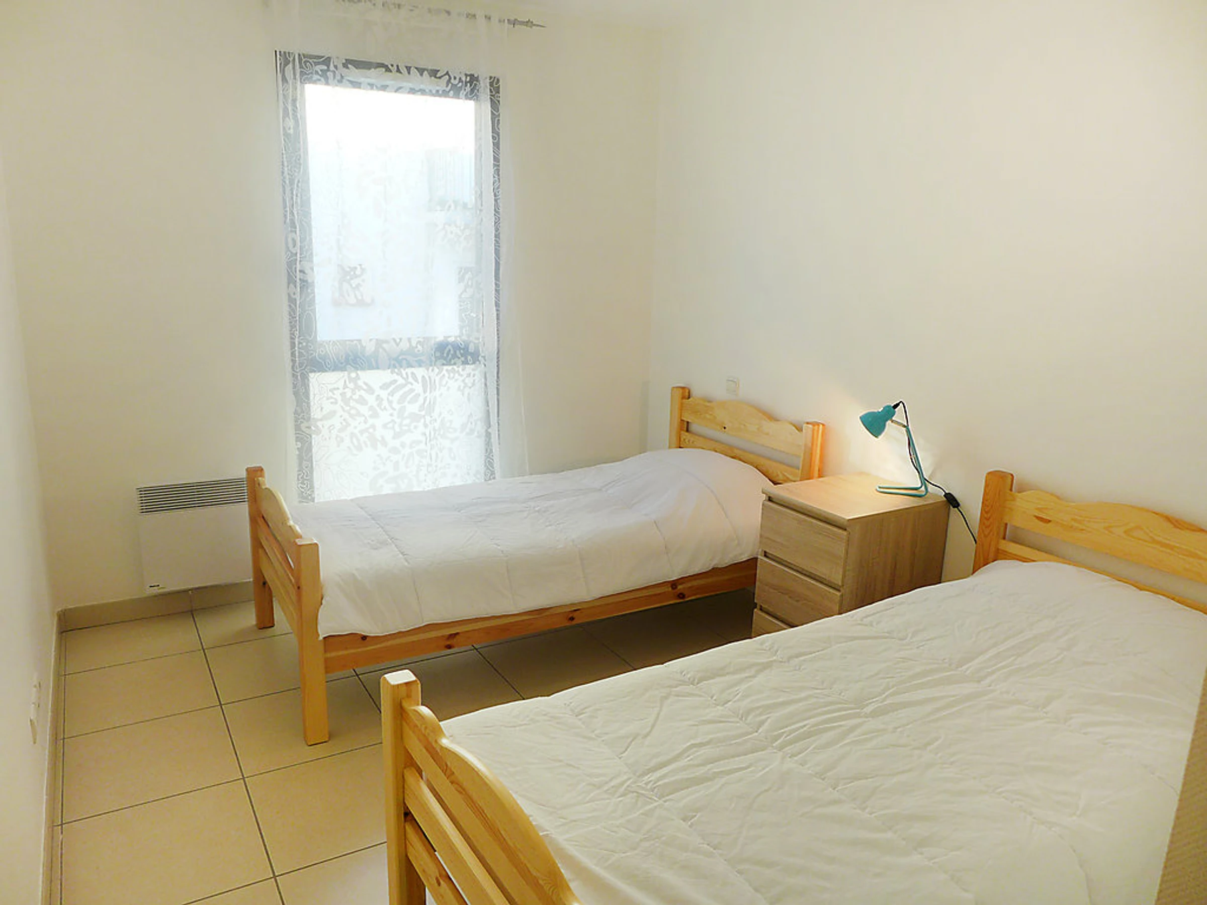 Apt 3 pièces 59 m2 au 3ème étage, situation ouest. Clair, aménagement fonctionnel: séjour/salle à manger avec écran plat, DVD et chauffage électrique. Sortie sur la terrasse. 1 chambre orientée ouest avec 1 grand-lit (1 x 140 cm, longueur 200 cm). 1 chambre orientée ouest avec 2 lits (90 cm, longueur 200 cm). Cuisine ouverte (4 plaques vitrocéramique, four micro-ondes) avec table pour les repas. Salle de bains, WC séparé, double vasque. Chauffage électrique. Terrasse 7 m2, situation ouest. Mobilier de balcon. A disposition: lave-linge, fer à repasser, chaise haute pour enfant, lit bébé. Place de parking No 48 (couvert, cloturée). Veuillez noter: logement pour non fumeurs. Merci de nous contacter la veille de votre arrivée afin d' organiser la remise des clefs qui s'effectuera à l'agence de CANET EN ROUSSILLON (66140). Services supplémentaires obligatoires sur le site: Taxe de séjour 1.0EUR par personne et par jour, Taxe de séjour enfants (par personne et par jour), Taxe de séjour bébés (0-2) (par personne et par jour)