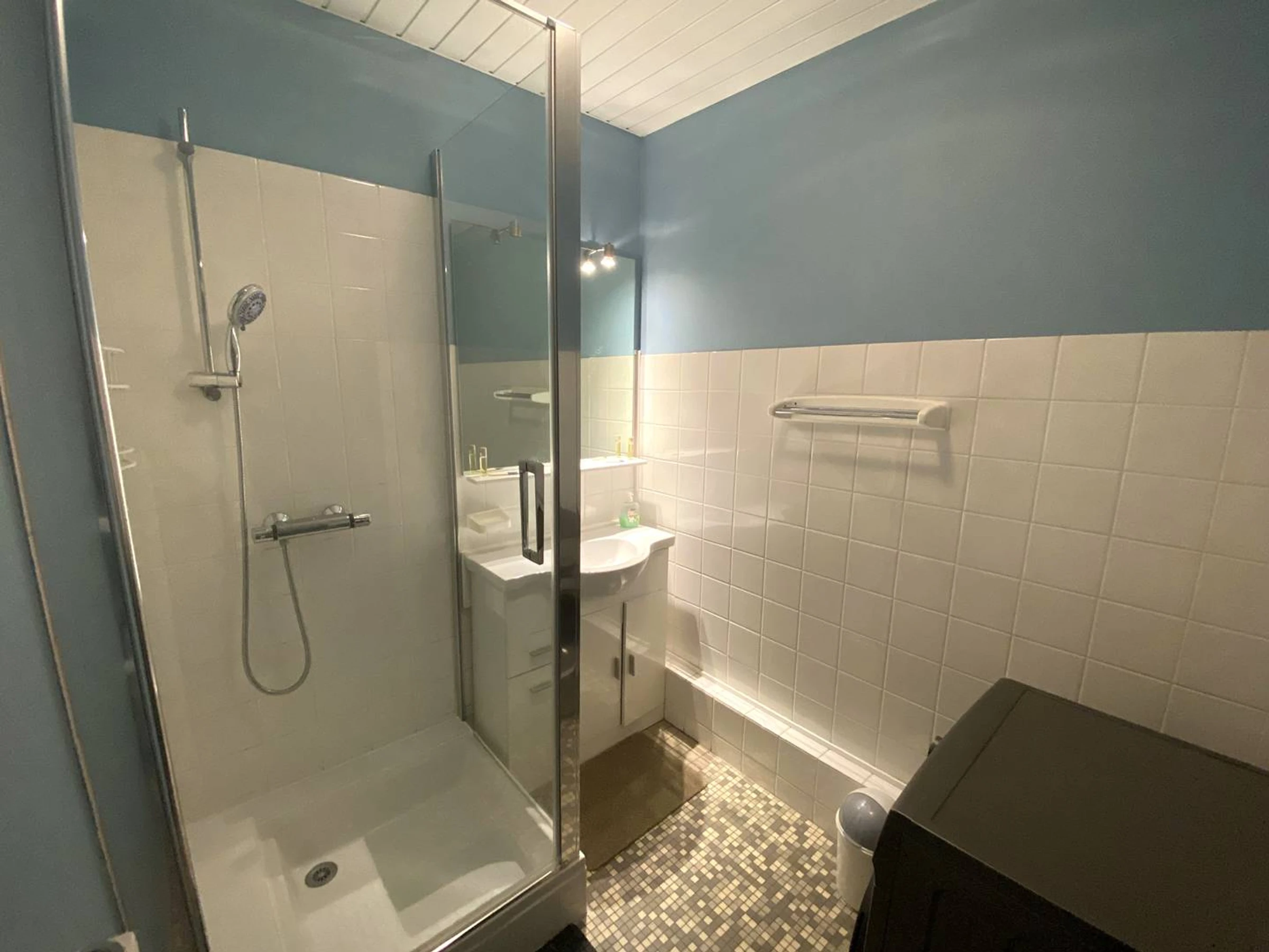 1 salle d'eau avec douche et lavabo -