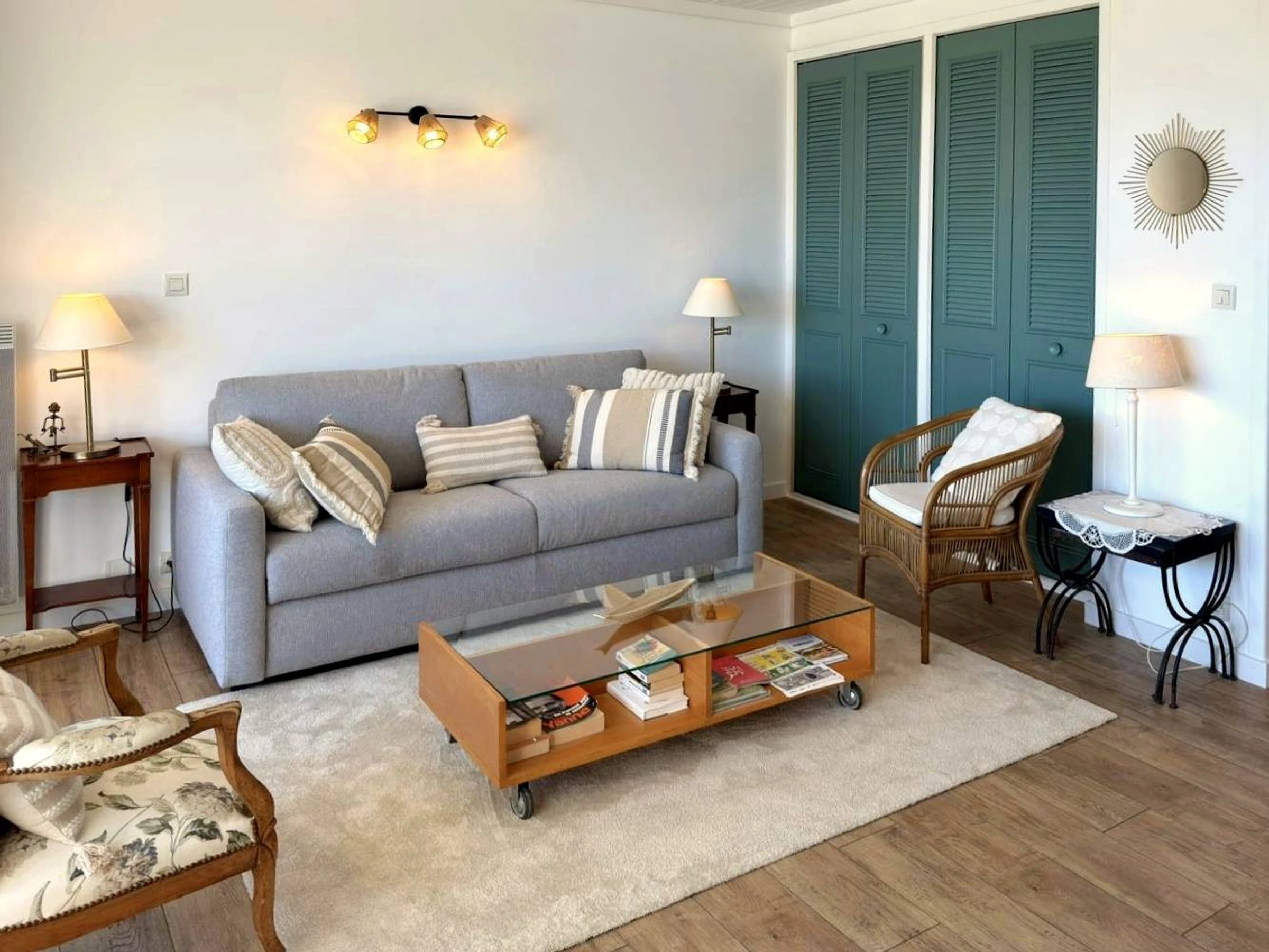 Séjour : fauteuils, canapé convertible en lit 160 cm, télévision.