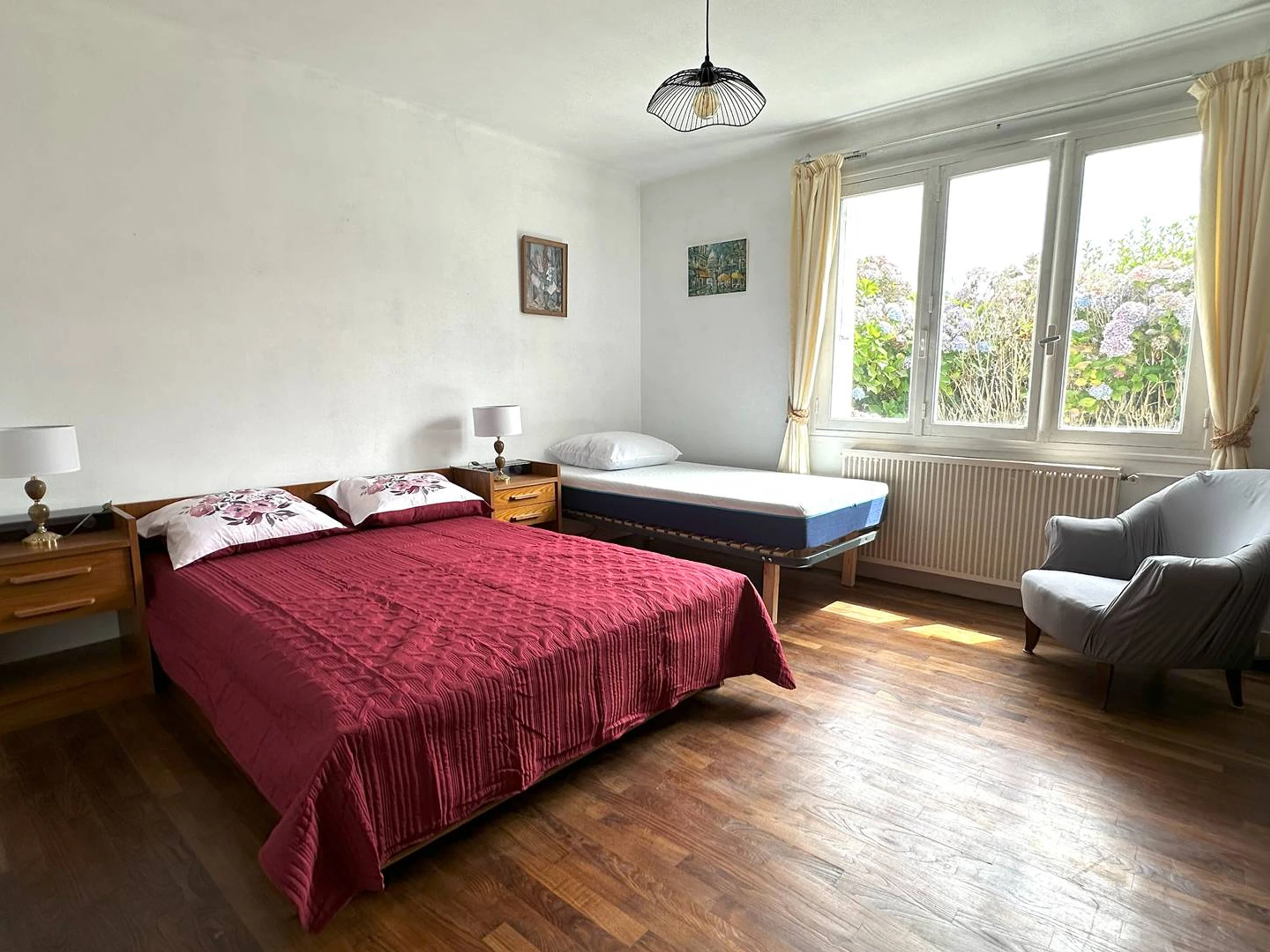 1 chambre pour 2 personnes avec 1 grand lit pour 1 personne et 1 lit de 1 personne avec couette -