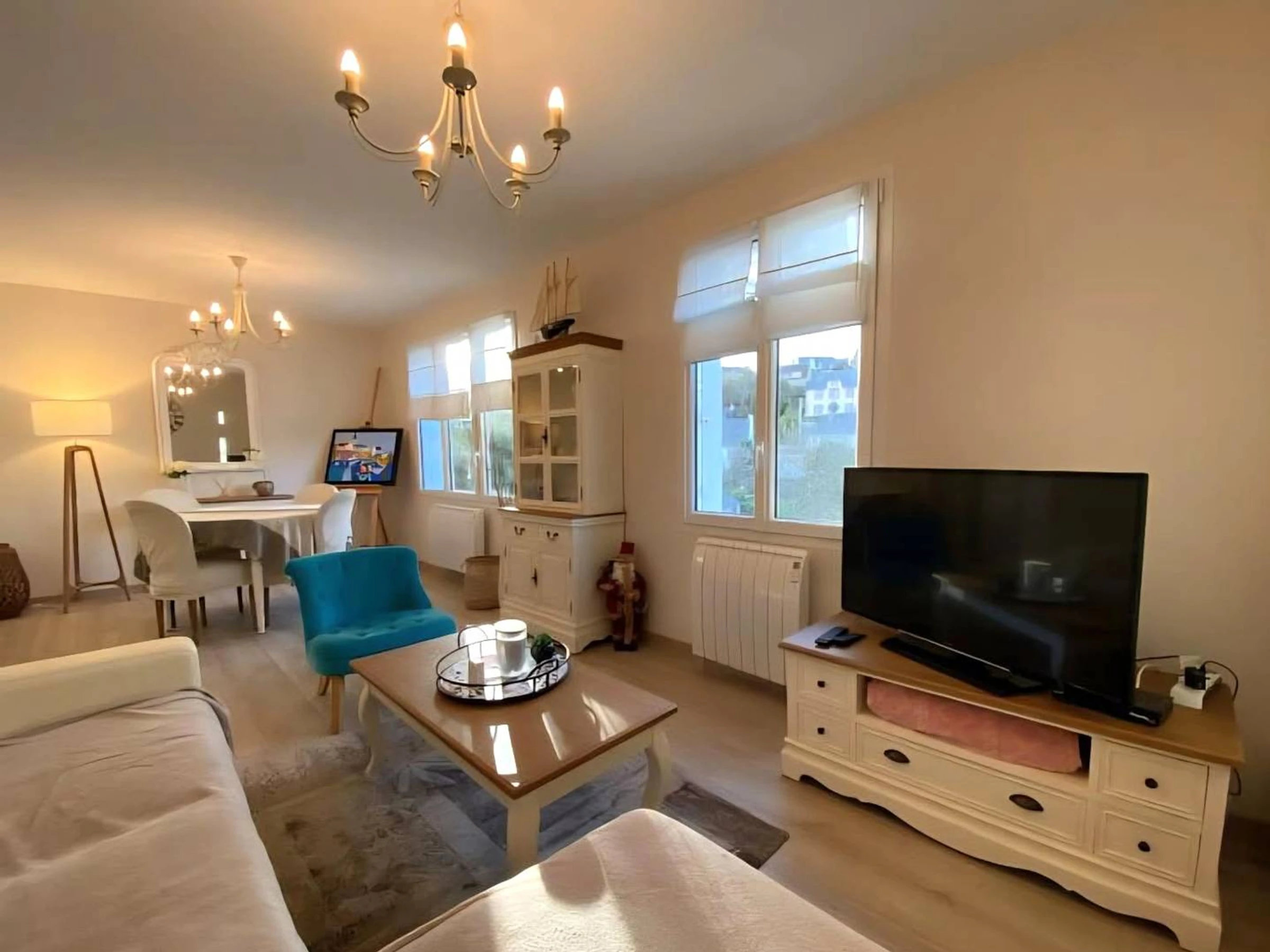 1 salon/salle à manger avec TV, canapé d'angle -