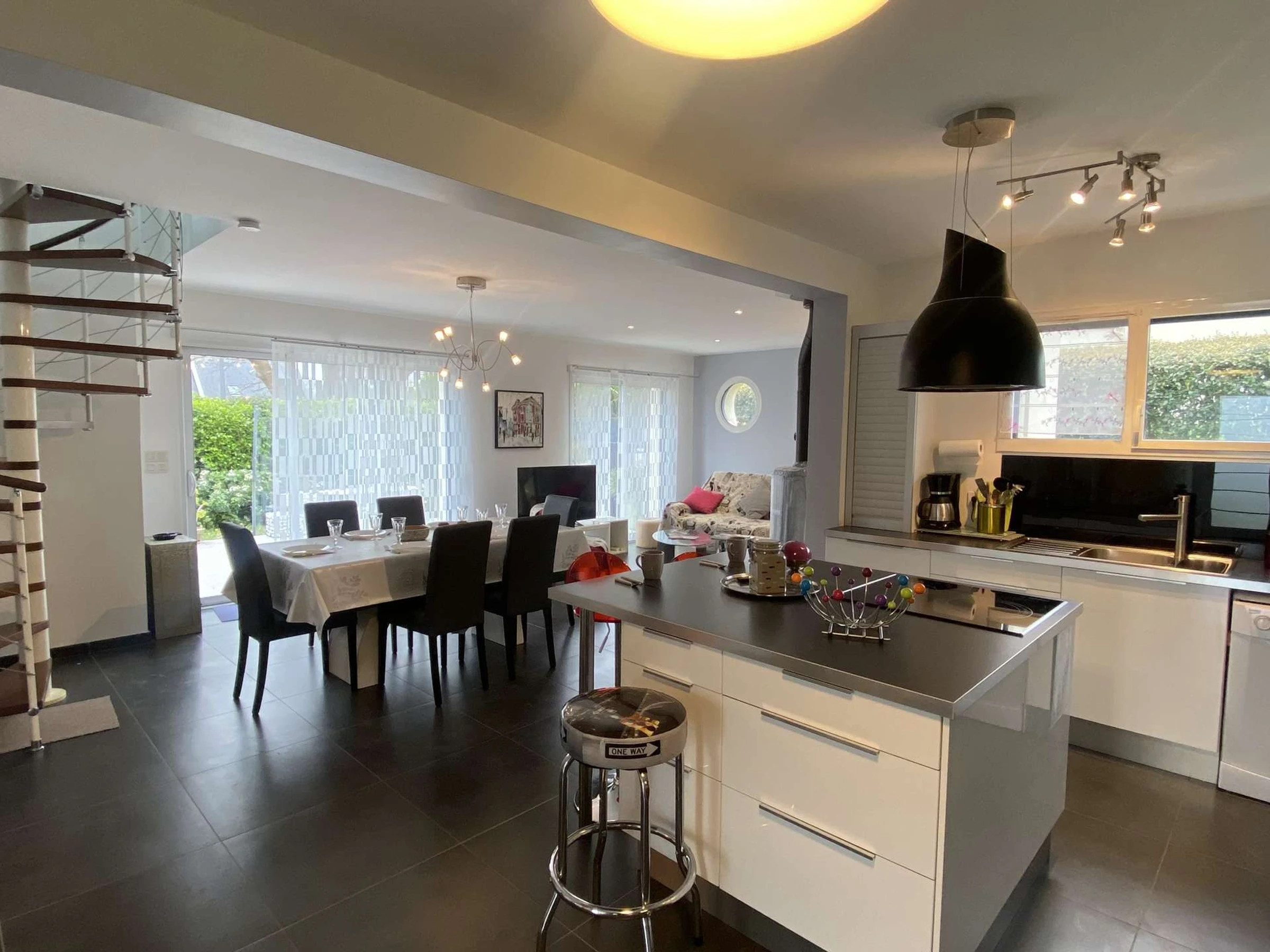 Belle maison avec jardin située au calme à Perros Guirec sur la Côte de Granit Rose. Elle est classée 3 étoiles pour son confort. Aménagée et équipée pour 6 personnes, la surface intérieure est de 115 m² répartis sur 2 niveaux. Grande pièce de vie lumineuse avec accès terrasse, cuisine et table pour les repas, espace salon. Une chambre parentale avec salle d’eau privative, toilettes avec lave-main. A l’étage, Deux chambres, une salle de bain avec des toilettes. Jardin privatif, carport pour la voiture et parking devant la maison.