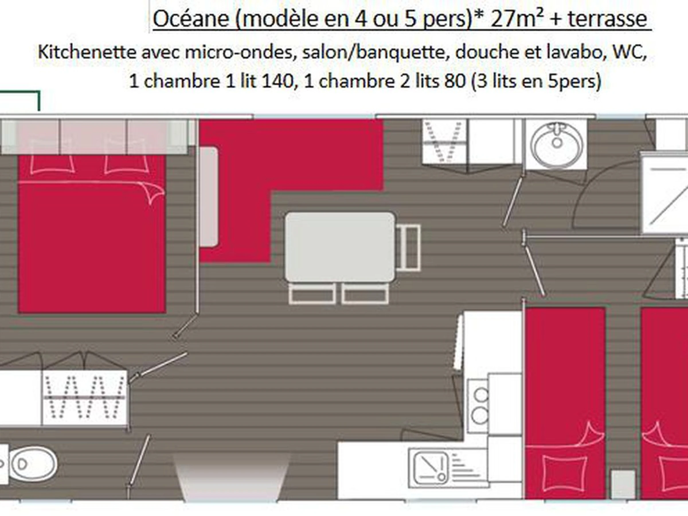Mobile-home de 27m² pour 5 personnes :