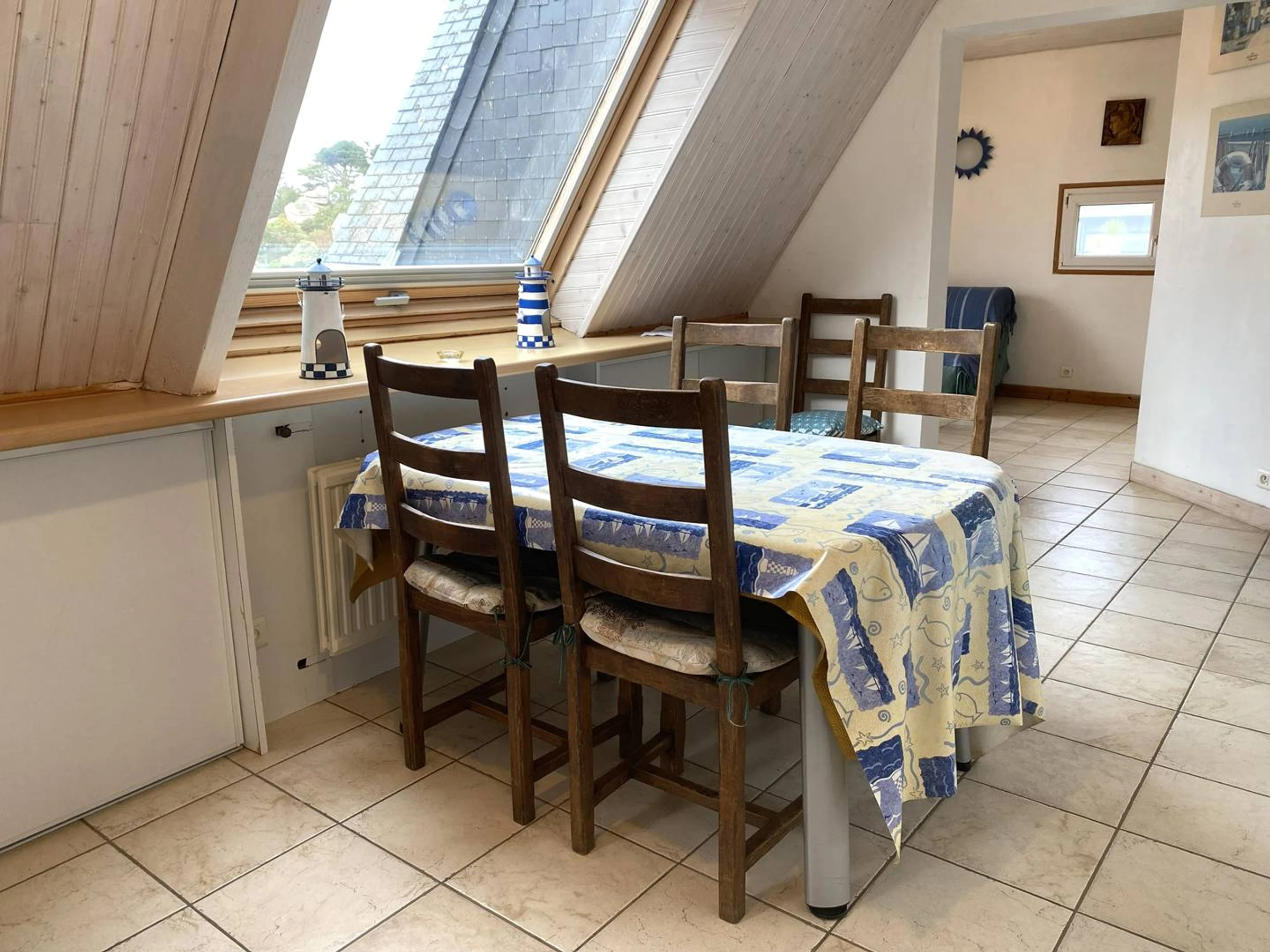 N°897- Emplacement N°1 pour cet appartement 3 chambres sur la plage de St-Guirec à Ploumanac'h au 2ème et dernier étage, sous mansarde, avec vue prodigieuse sur mer et la plage avec WIFI gratuit, comprenant :