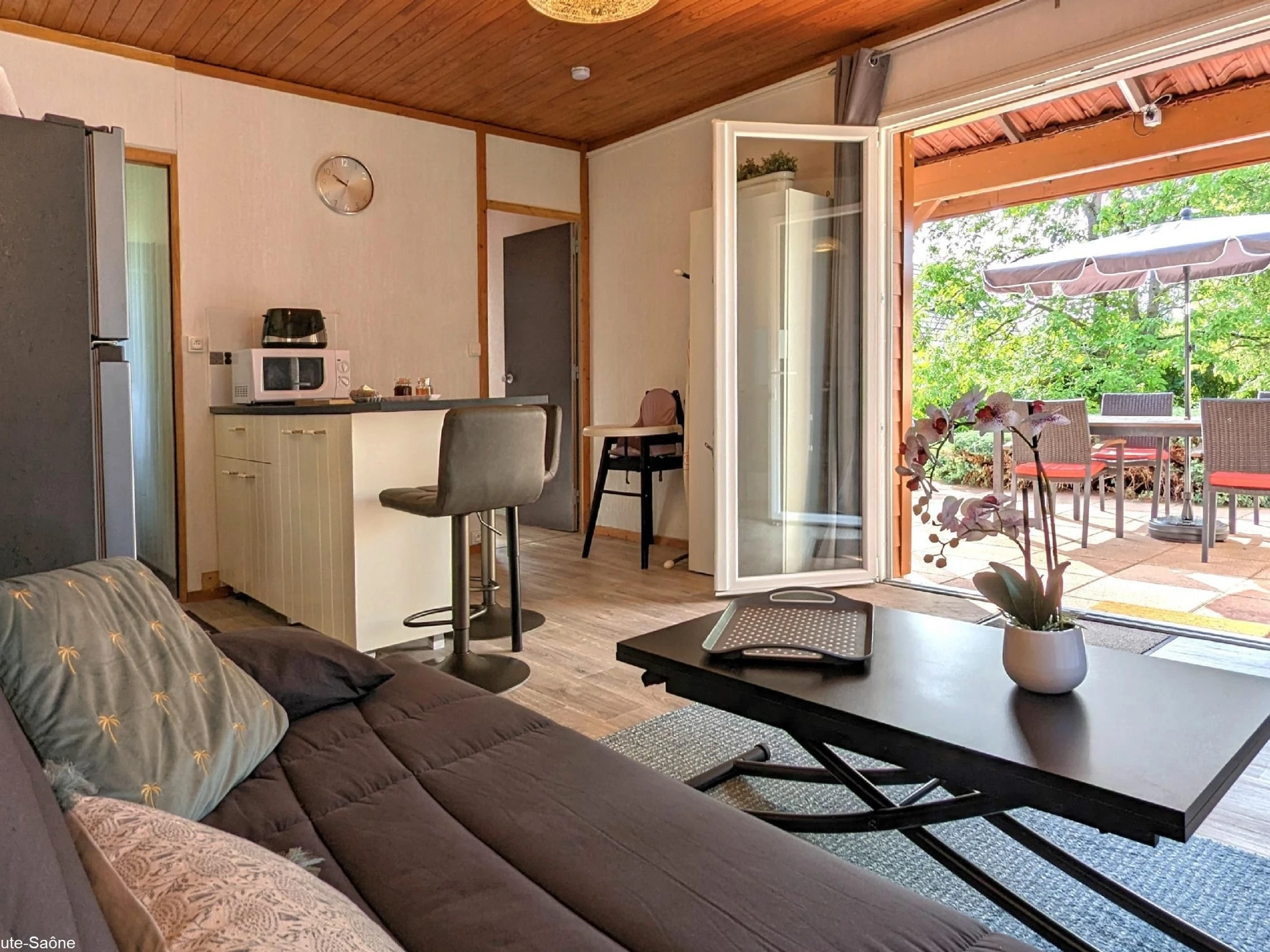 Découverte de la vallée de l'Ognon, randonnée, canoë. Visitez la citadelle de Besançon ou partez à la découverte des grands crus de Bourgogne et des Hospices de Beaune. Le chalet de 42m² est composé d'une cuisine ouverte sur le séjour avec une table/bar ou une table basse qui se réhausse pour le repas. Télévision dans le séjour. Salle d'eau avec douche et WC. Chambre avec un lit 2 personnes (160 x 200cm) et une seconde télévision. Le chalet peut être climatisé bien qu'il soit naturellement bien isolé. Terrasse privative avec salon de jardin et bains de soleil. Un barbecue est mis à disposition. Descriptif pour de nombreuses randonnées pédestres. Parking privé fermé.