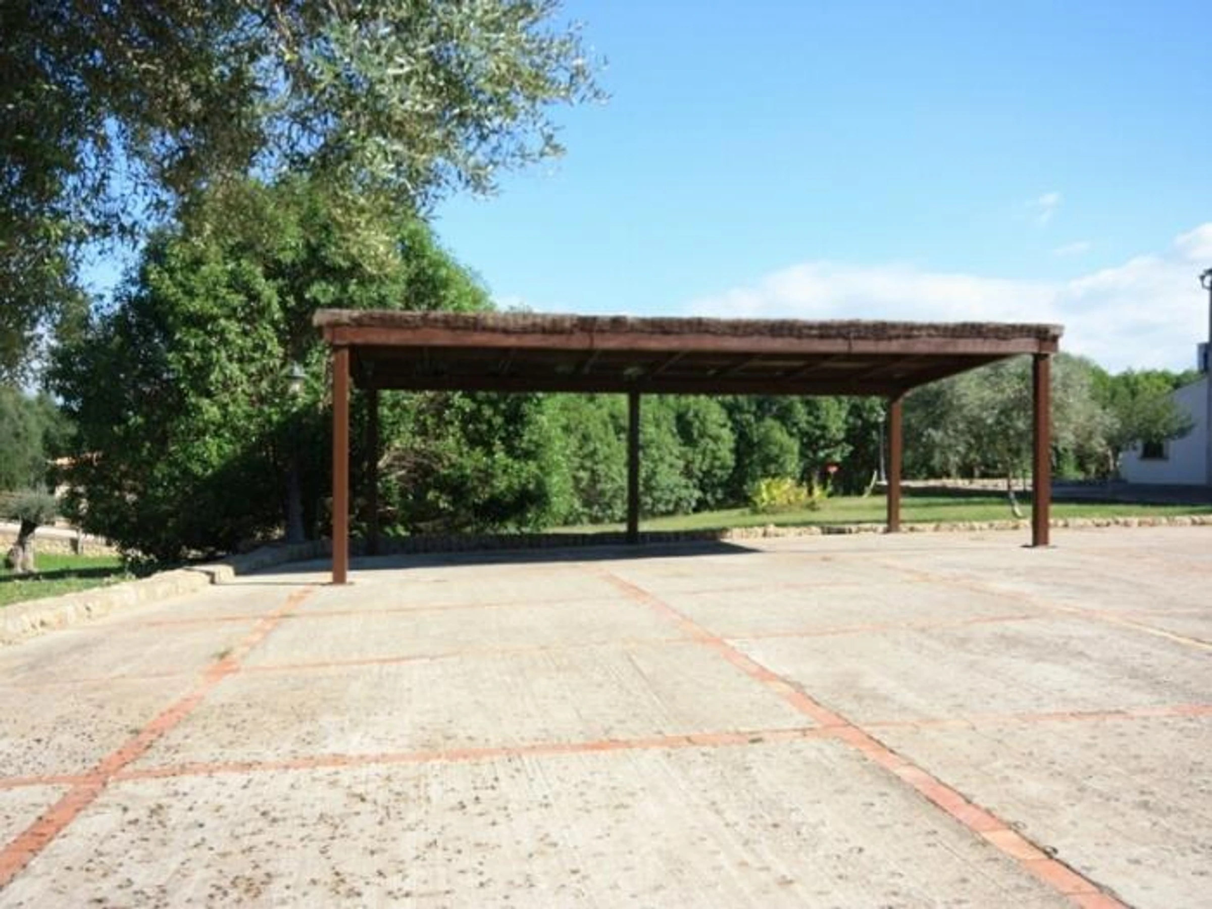 L'escalier est orné de magnifiques rampes en bois artisanales. À l'étage, vous trouverez une grande chambre double avec salle de bain attenante. Deux autres chambres doubles sont également disponibles. Ces deux chambres partagent une salle de bain et sont proches l'une de l'autre, ce qui les rend idéales pour les parents avec de jeunes enfants ou les familles voyageant avec une nounou. La propriété offre un accès gratuit à un court de tennis, situé à seulement 5 minutes à pied. Ce court est partagé avec d'autres propriétés des environs ; il est donc nécessaire de réserver un créneau horaire pour pouvoir jouer. Dans les champs environnants, vous trouverez également un enclos avec des ânes, très amicaux et qui apprécient les caresses de la famille.