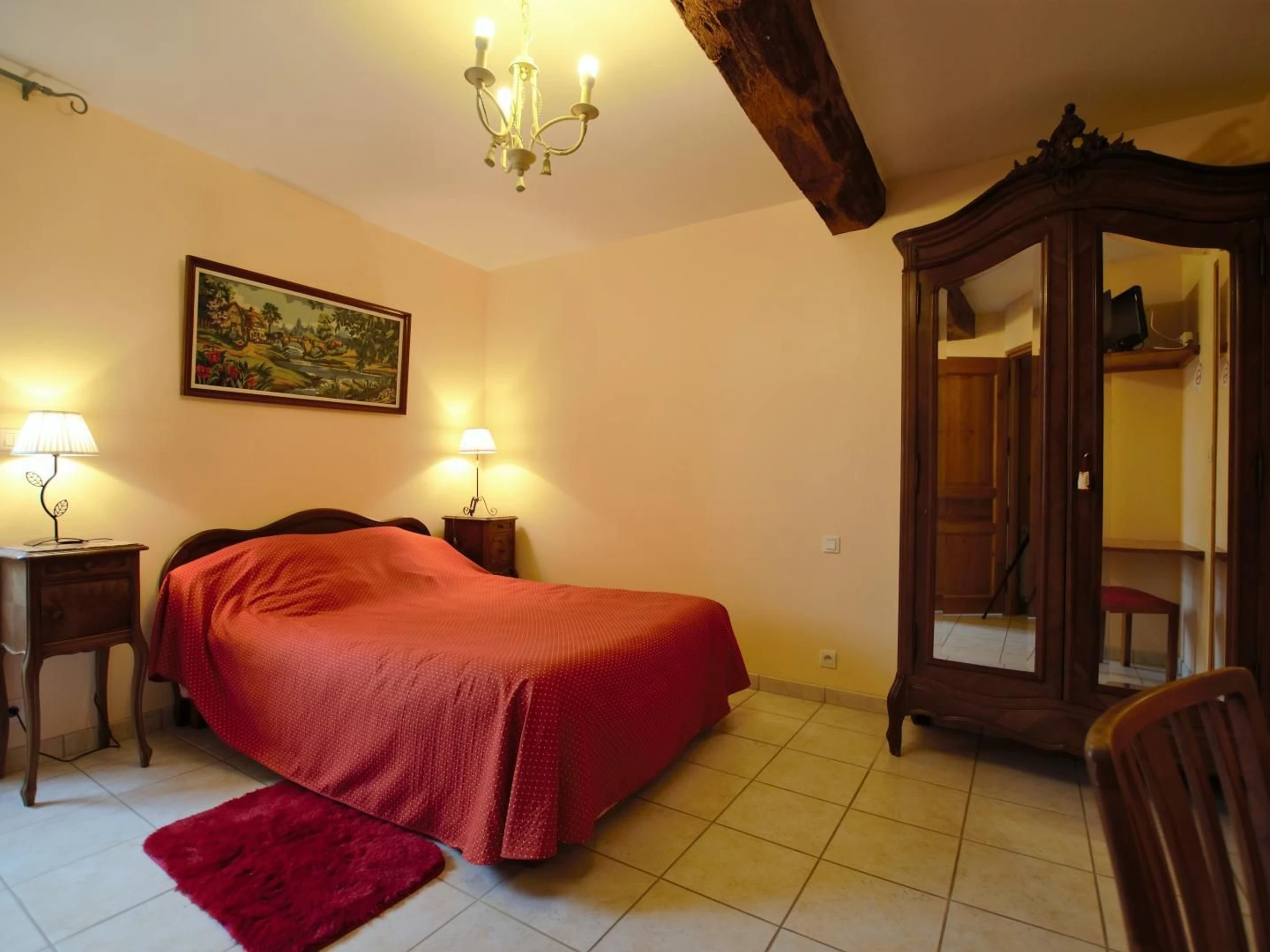 1 chambre (1 lit 140x190) avec salle d'eau et WC, accessible pour les personnes à mobilité réduite.
