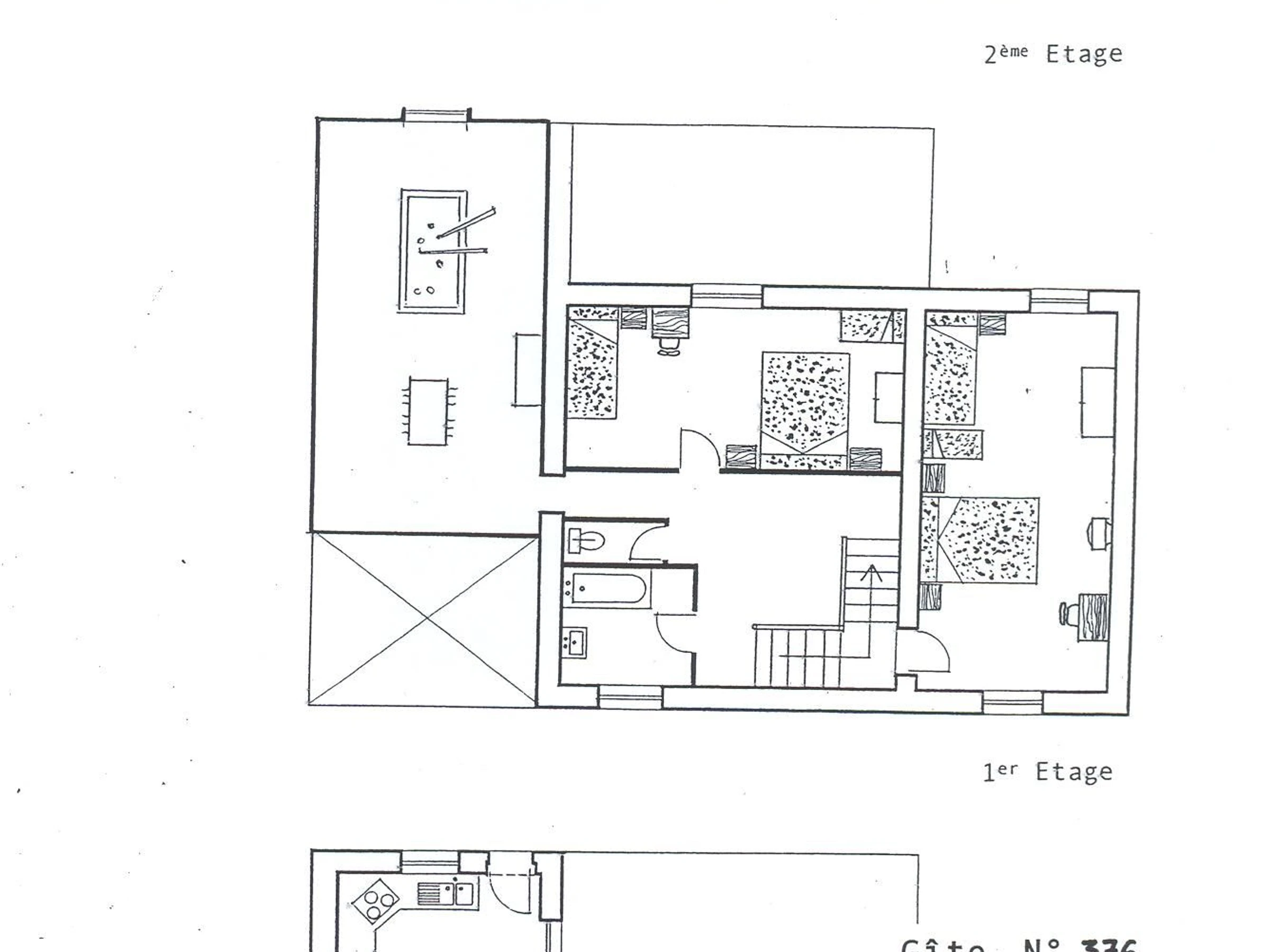 1er demi-étage: 1 ch. (1 lit 140x190 + 1 lit 90x190 + 1 lit bébé). 2ème demi-étage: 1 [hidden] lit 160x190 + 1 lit 90x190 + 1 lit  bébé), salle de bain et WC indépendant.