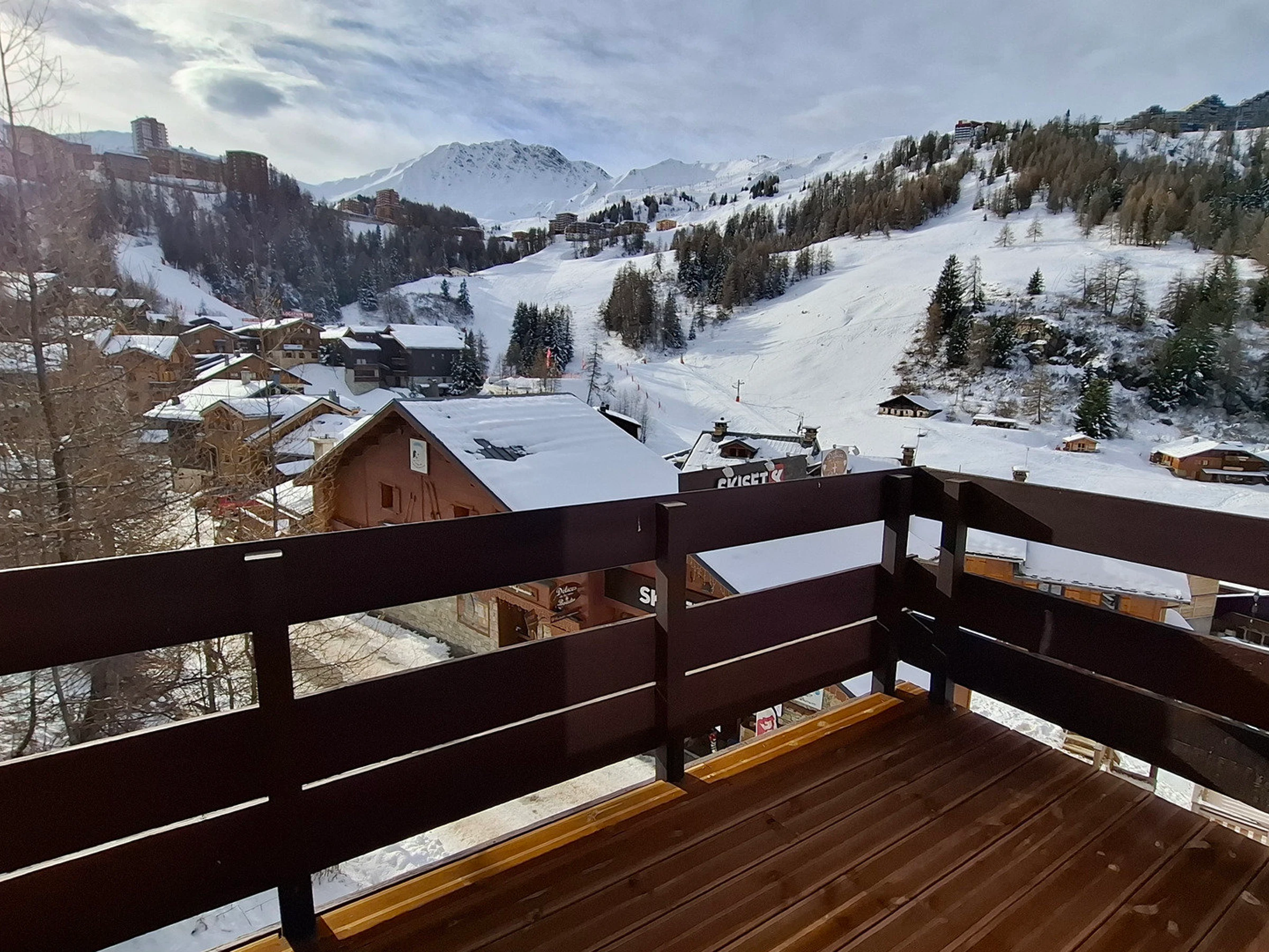 Appartement situé au 2ième étage sans ascenseur, équipé d’un large balcon orienté Sud avec vue sur les pistes et Plagne Centre.