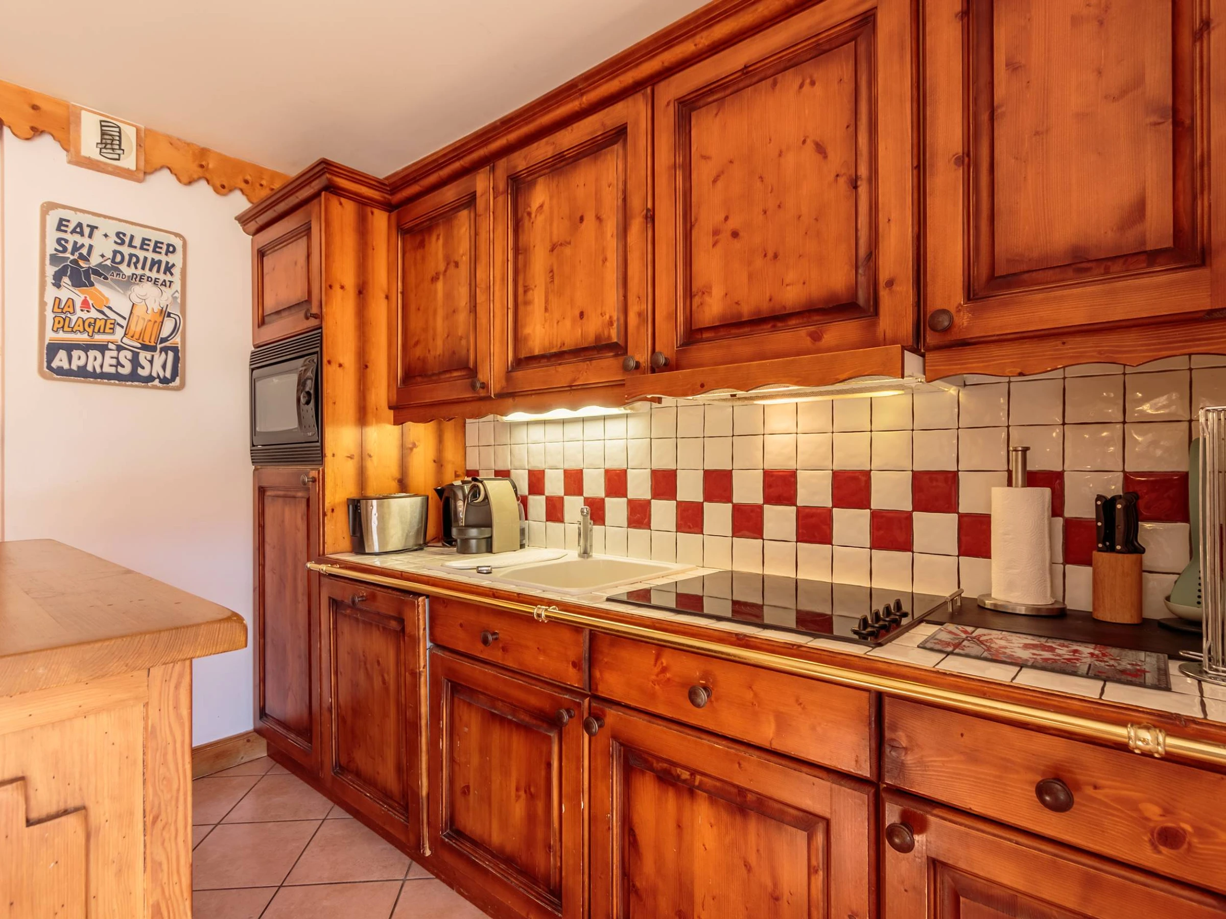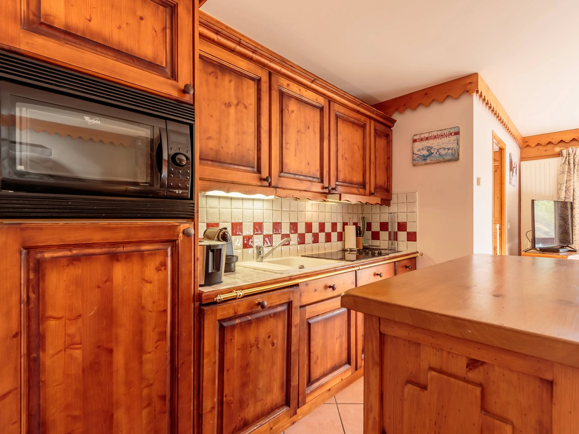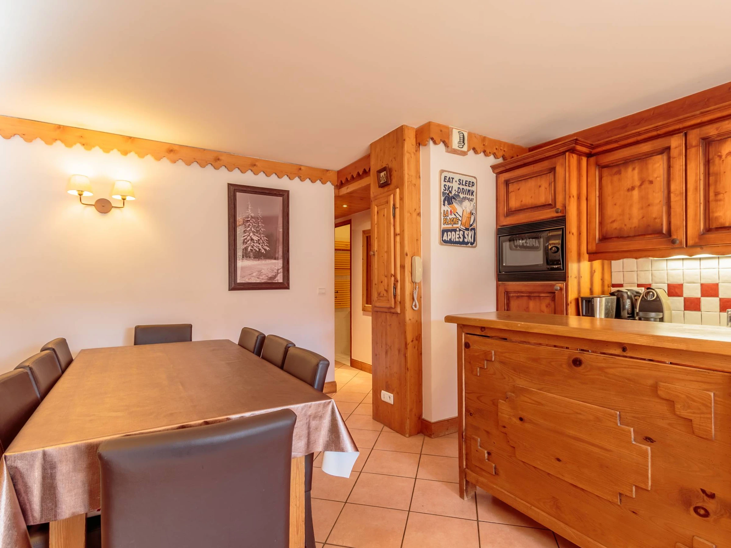 - La cuisine ouverte sur le séjour, est entièrement équipée pour votre confort : plaque vitrocéramique, micro-ondes combiné, réfrigérateur, lave-vaisselle, cafetière Nespresso, bouilloire, grille-pain, appareil à raclette