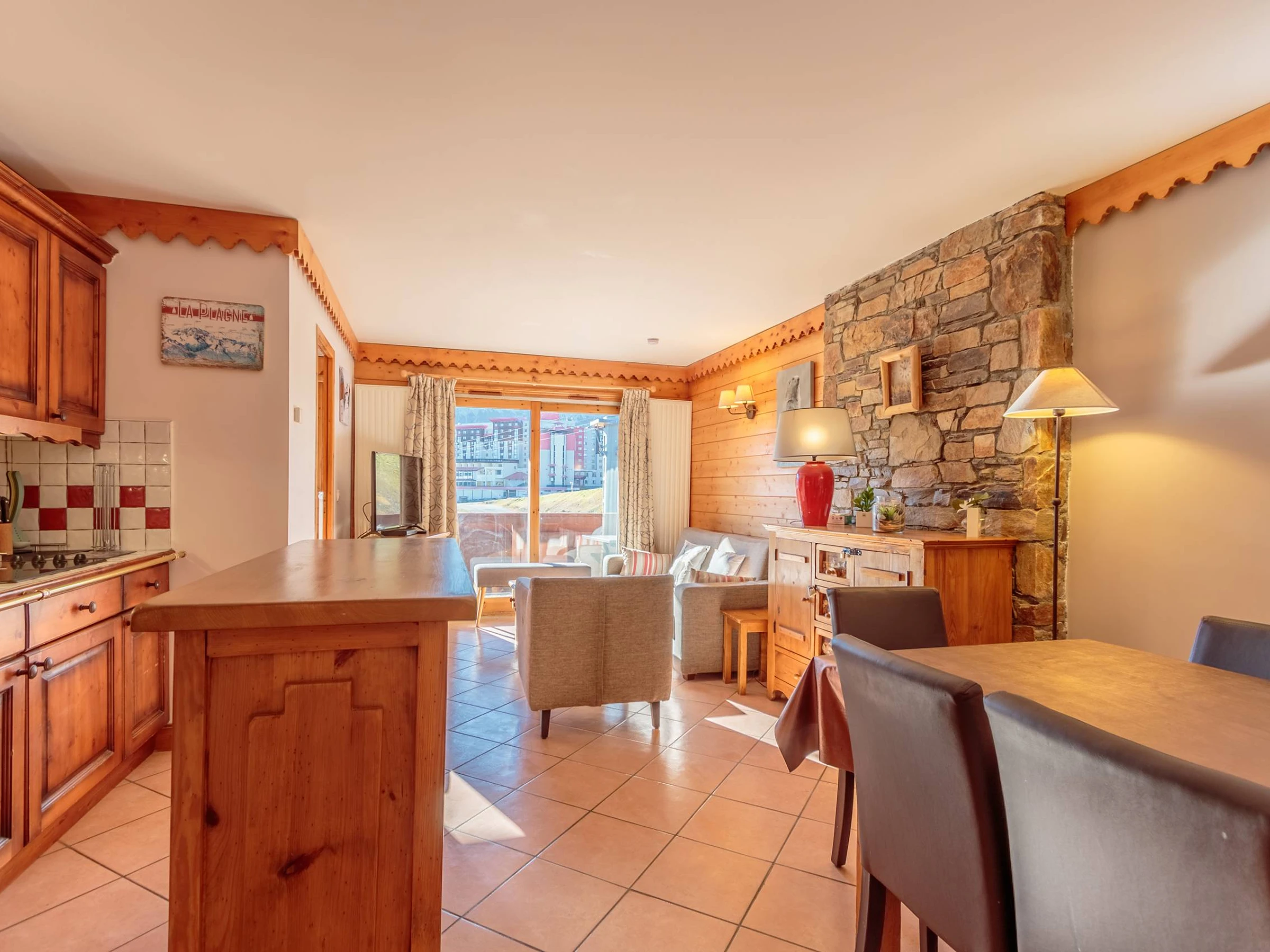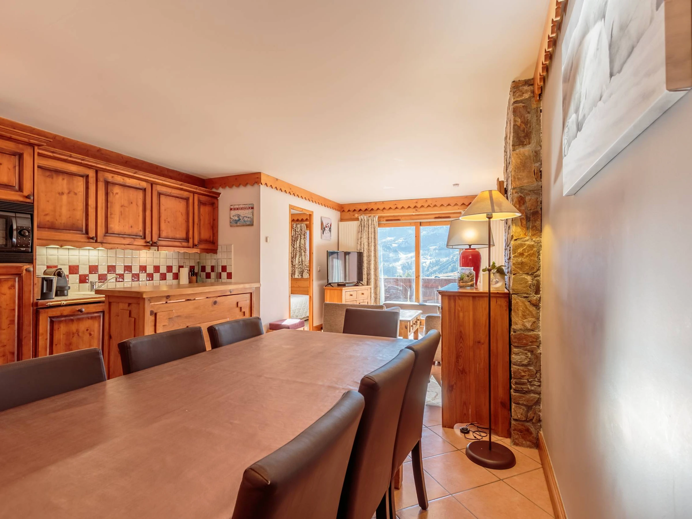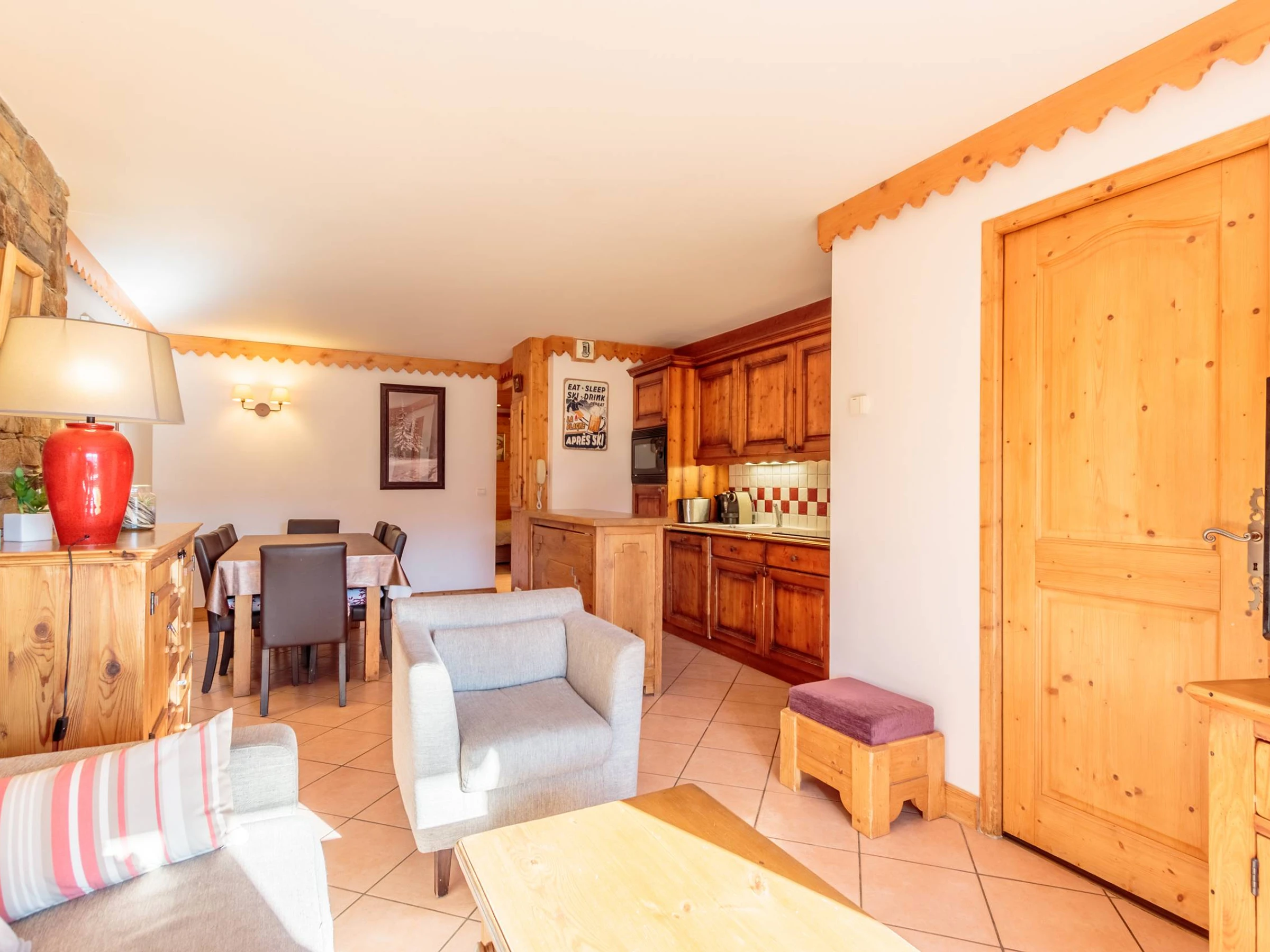 - La cuisine ouverte sur le séjour, est entièrement équipée pour votre confort : plaque vitrocéramique, micro-ondes combiné, réfrigérateur, lave-vaisselle, cafetière Nespresso, bouilloire, grille-pain, appareil à raclette