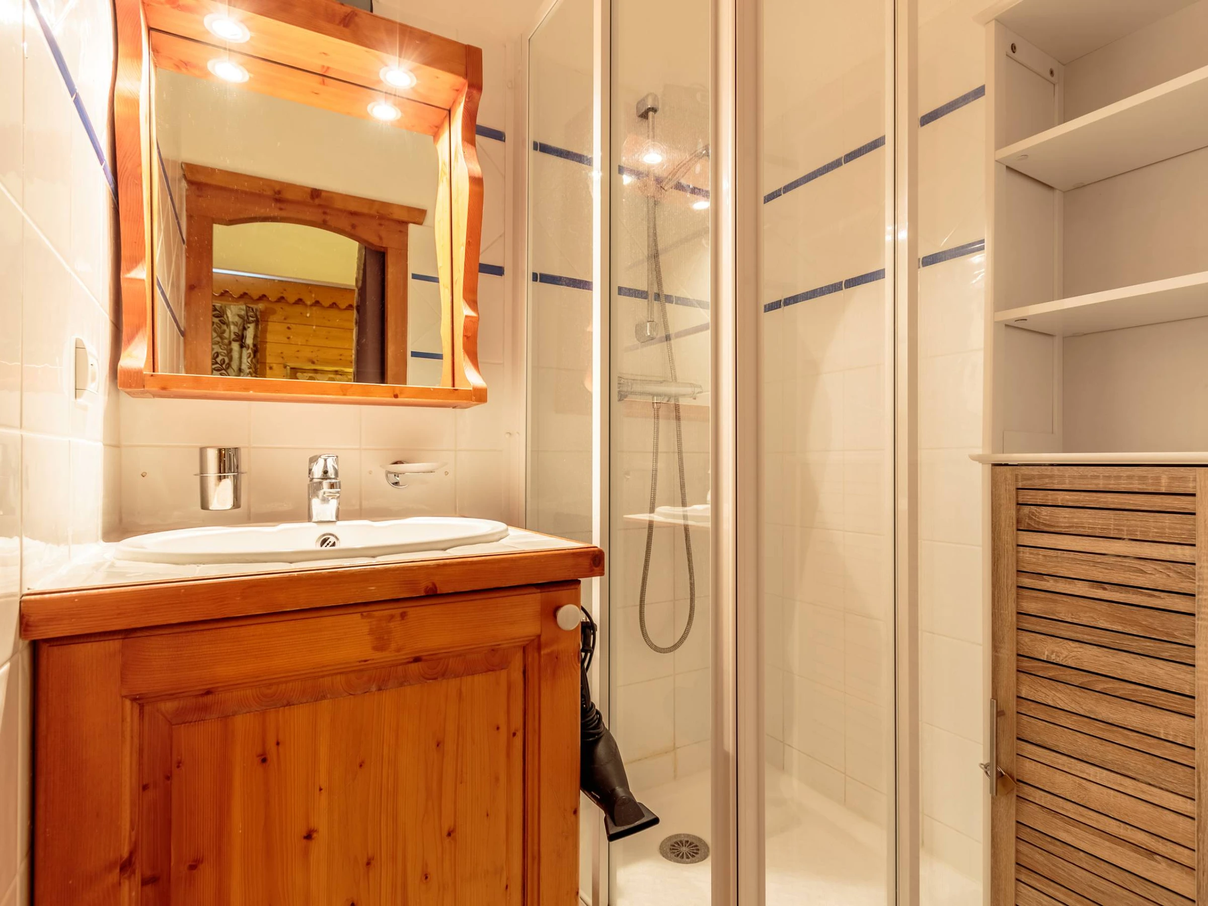 - Une chambre parentale avec lit double 160cm et salle de douche inclus, avec TV.