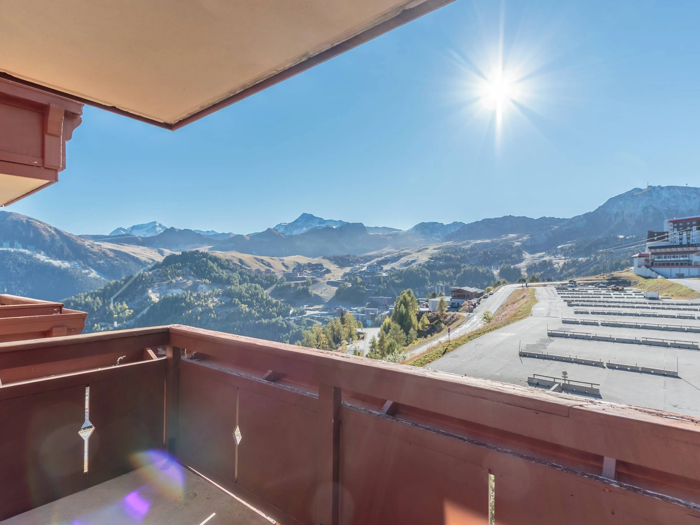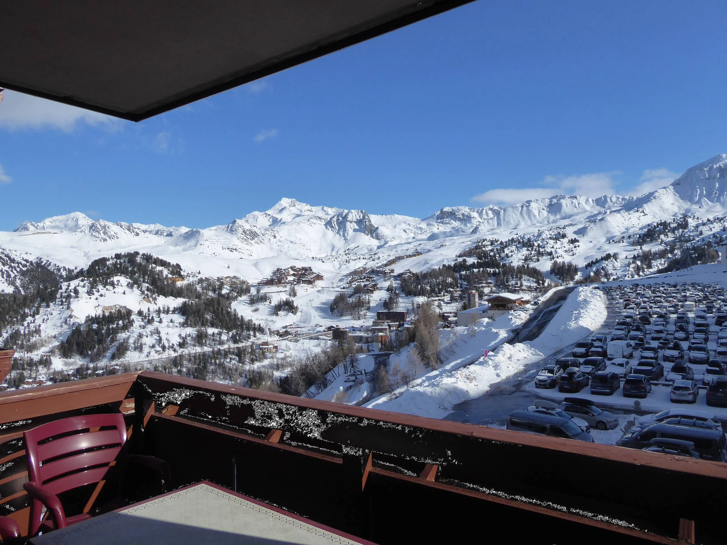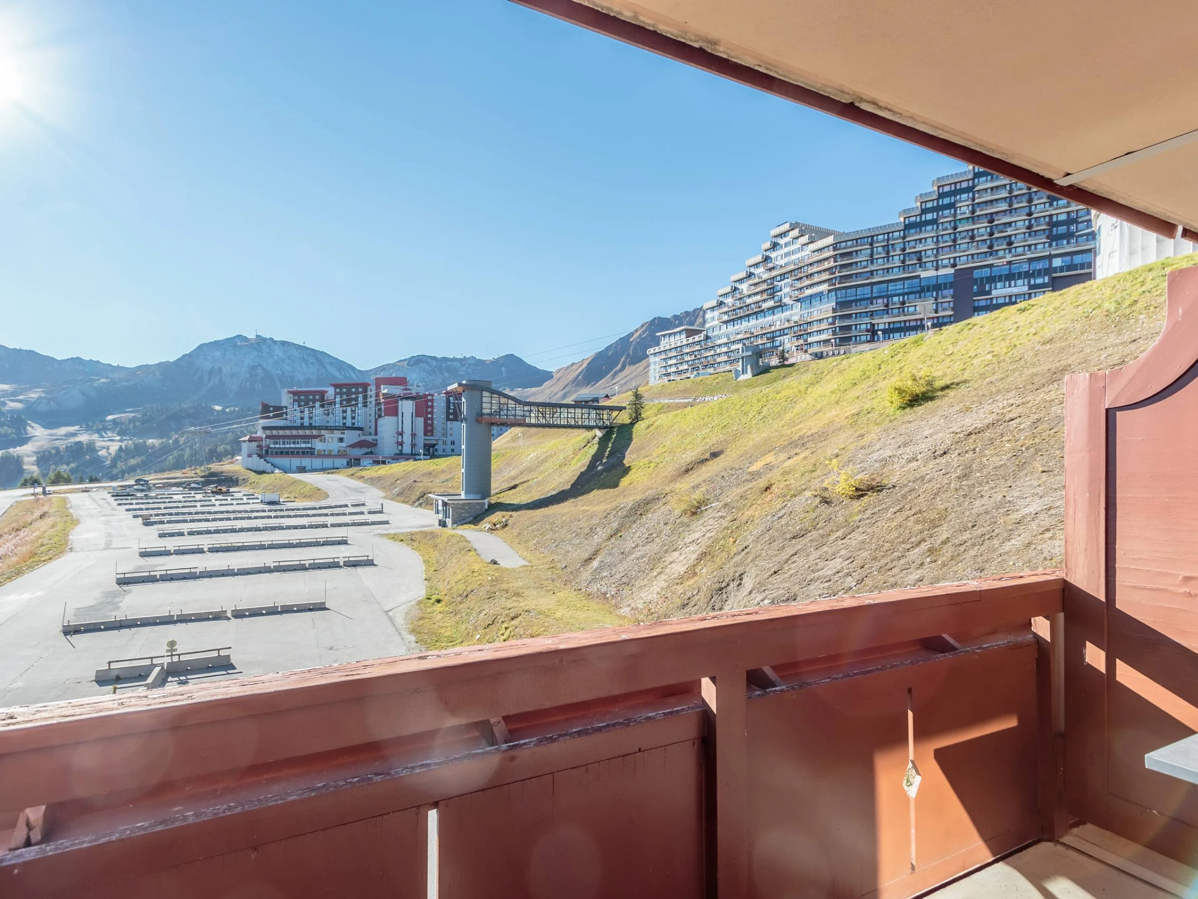 - Casier à skis au niveau de l'accès aux pistes, et place de parking couvert (hauteur 1.70m)