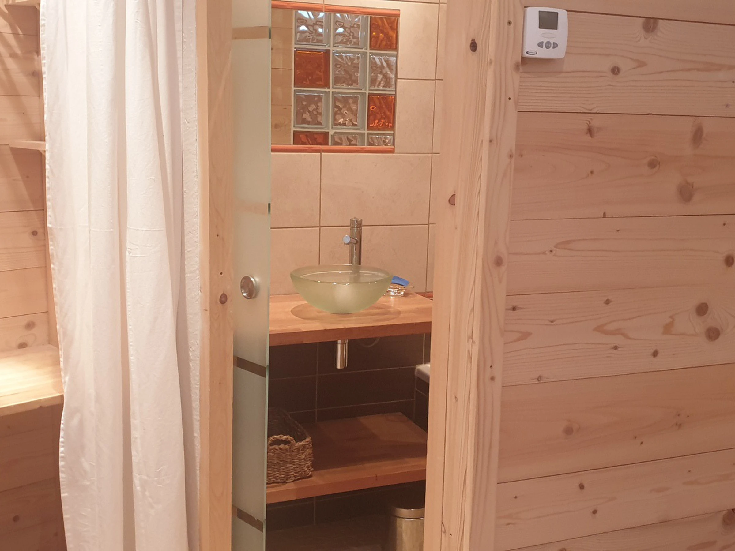 Un WC indépendant est également disponible dans un coin cellier avec lave linge