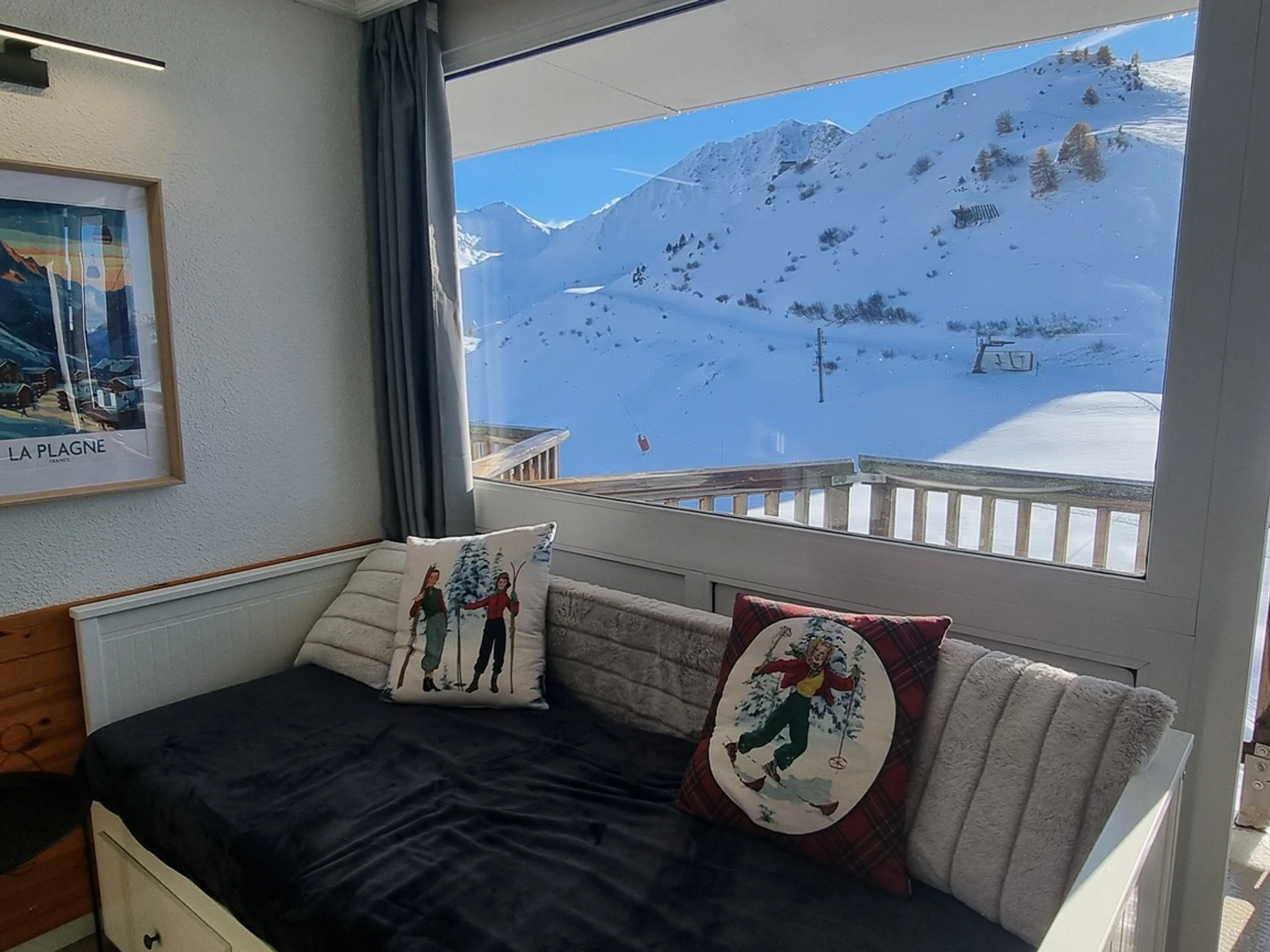 Ce studio se trouve au niveau "M" du Paquebot des Neiges et est accessible par l'ascenseur "Chamois". Il se compose d'une cuisine ouverte sur le séjour, d'une salle de bains et d'un WC indépendant. Son balcon exposé Sud offre une magnifique vue sur les pistes d'Aime 2000.