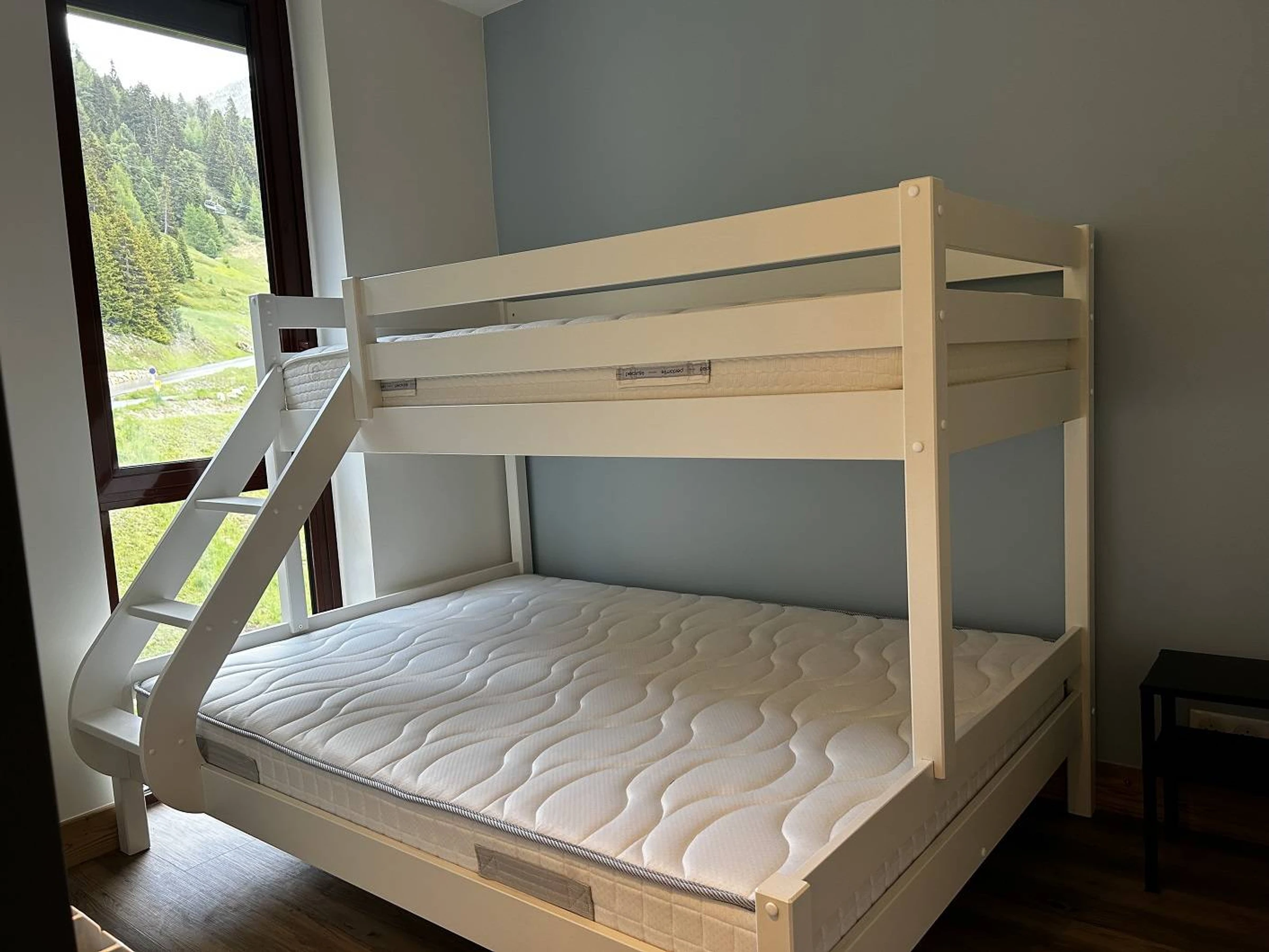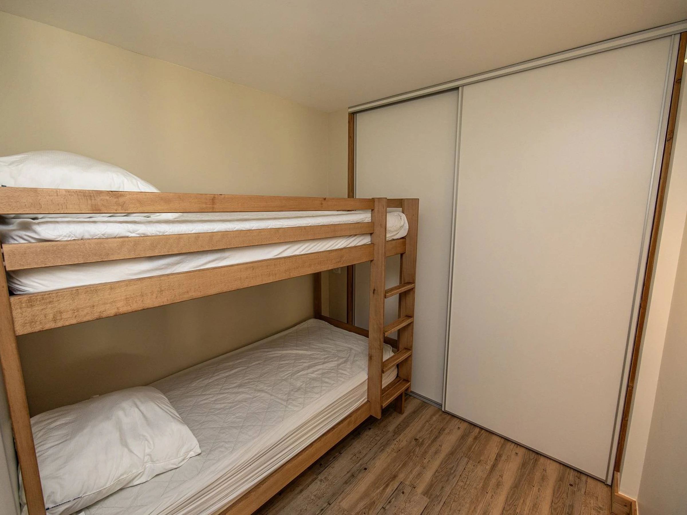 - Une chambre avec lit superposé (lit double en bas et simple en haut)