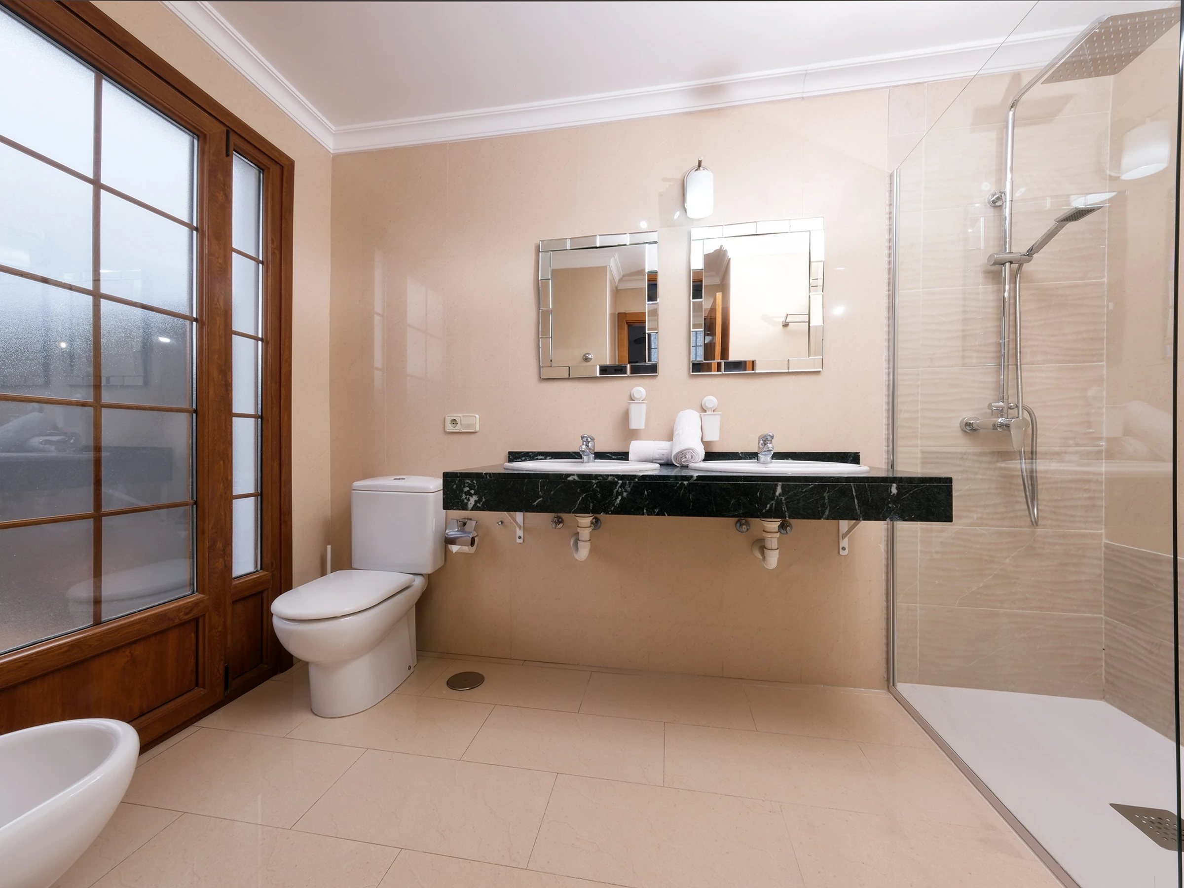 Au premier étage, vous trouverez 2 chambres avec des lits queen-size, des armoires spacieuses et des salles de bains attenantes avec douche, bidet et lavabo, et 1 toilette supplémentaire.