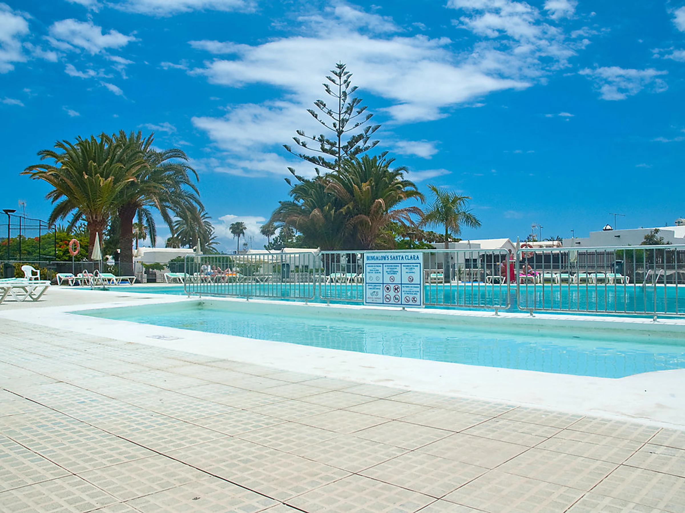 Lotissement de vacances "Bungalow Santa Clara", année de construction 1990. Au centre de Playa del Inglés, situation ensoleillée, à 500 m de la mer. En commun: terrain, jardin avec pelouse, 2 piscines (01.01.-31.12.). Bassin pour les enfants, douche extérieure, jacuzzi, tennis, espace de jeux pour les enfants. A usage privé: terrain (clôturé), jardin. Infrastructures de la Maison: restaurant, bar, accès internet. Place de parking, parking public possible dans la rue. Magasin d'alimentation, supermarché, centre commercial, restaurant 20 m, plage de sable "Playa del Inglés" 500 m. Tennis. Jeux pour enfants 5 m. Veuillez noter: autoroute 500 m de la maison. Route principale 200 m de la maison. Night-club/discothèque 200 m de la maison.
