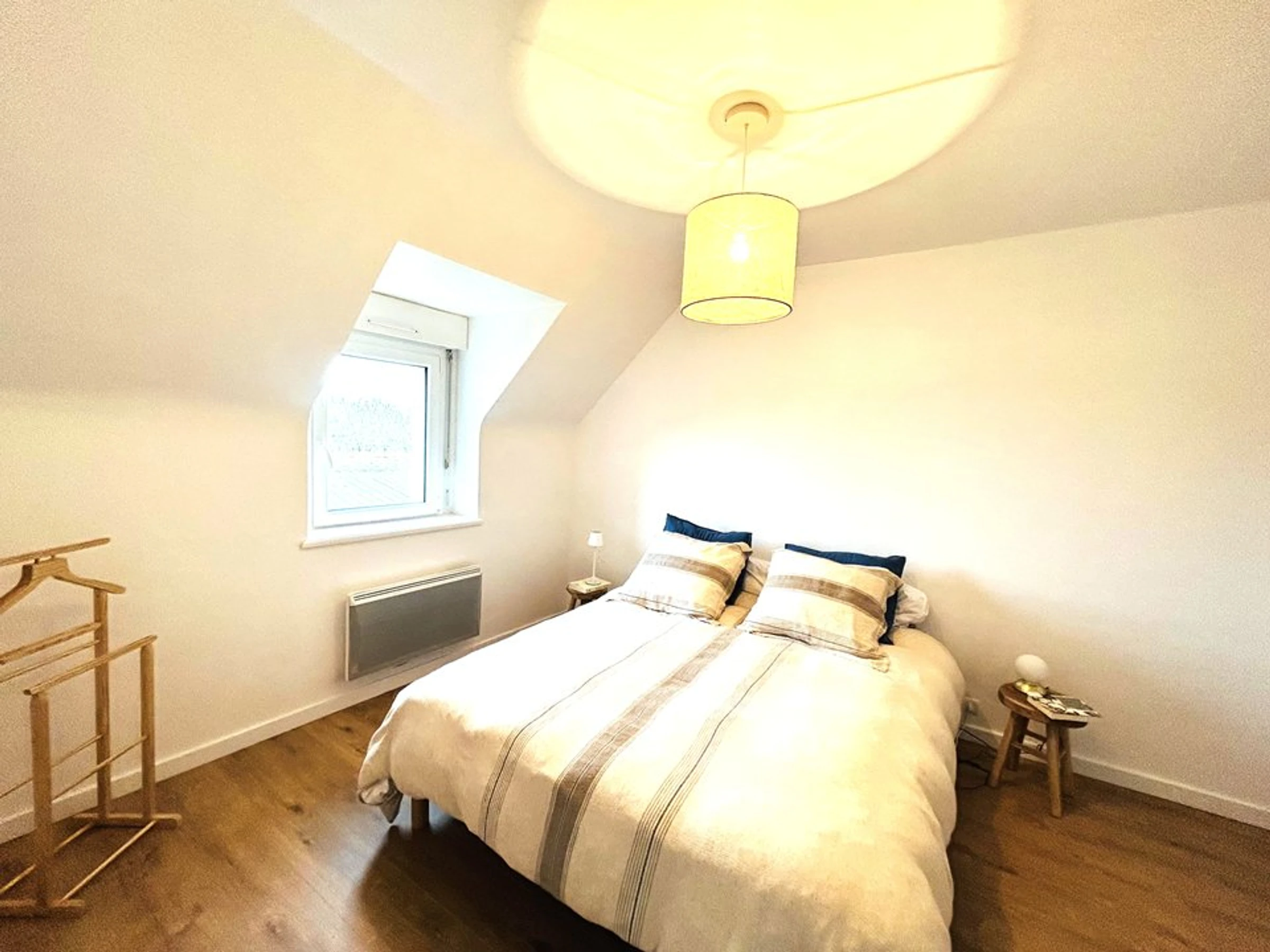 Cette jolie maison fraîchement rénovée de 63 m² située dans un petit hameau typique breton avec sa chapelle et ses corps de ferme, se compose comme suit :