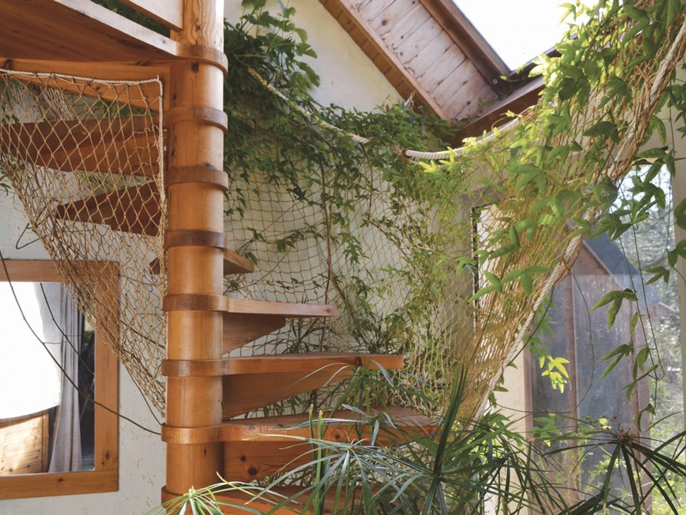 Cette maison de vacances très originale, qui se fond parfaitement dans le paysage, n'en finira pas de vous surprendre. Le chemin qui y mène traverse deux cours à la végétation abondante et fleurie, et du jardin, la vue est à couper le souffle sur le Parc Naturel Régional d'Armorique. Vous pourrez vous reposer dans le salon, grande pièce à vivre lumineuse, calme et reposante, où vous trouverez notamment un piano et des jeux, et un petit jardin intérieur. A proximité, vous pourrez découvrir des paysages variés avec des circuits de randonnés et de VTT. Visitez Huelgoat (18km), ne manquez pas la belle forêt domaniale et ses rochers, et Morlaix (18km), belle ville médiévale avec son marché et ses maisons à colombages. A 30km, la superbe baie de Morlaix vous attend avec ses iles et ses plages de sable blanc. Un escalier en colimaçon conduit au premier étage où se trouvent trois chambres à coucher, dont une avec un lit de 160cm, et les 2 autres avec plusieurs lits, vous accordant ainsi un confort supplémentaire. Cette belle location de vacances vous laissera des souvenirs mémorables et vous n'aurez qu'une envie : y revenir! Cette maison originale n'en finira pas de vous surprendre. Le sentier qui y mène traverse deux cours à la végétation abondante et fleurie, et du jardin, la vue est à couper le souffle sur le Parc Naturel Régional d'Armorique. Vous pourrez vous reposer dans le salon, où vous trouverez notamment un piano, des fléchettes électroniques et des jeux, ou près du petit jardin intérieur. A proximité, vous pourrez découvrir des paysages sauvages et des cascades. A Huelgoat, ne manquez pas la belle forêt domaniale et la Roche Tremblante, et à 30km, la superbe Baie de Morlaix. Un escalier en colimaçon conduit aux 3 chambres du 1er étage. Disponible sur le site avec supplément: Draps et serviettes - 0.0 EUR par personne; Nettoyage(sur place) - 50.0 EUR par séjour;